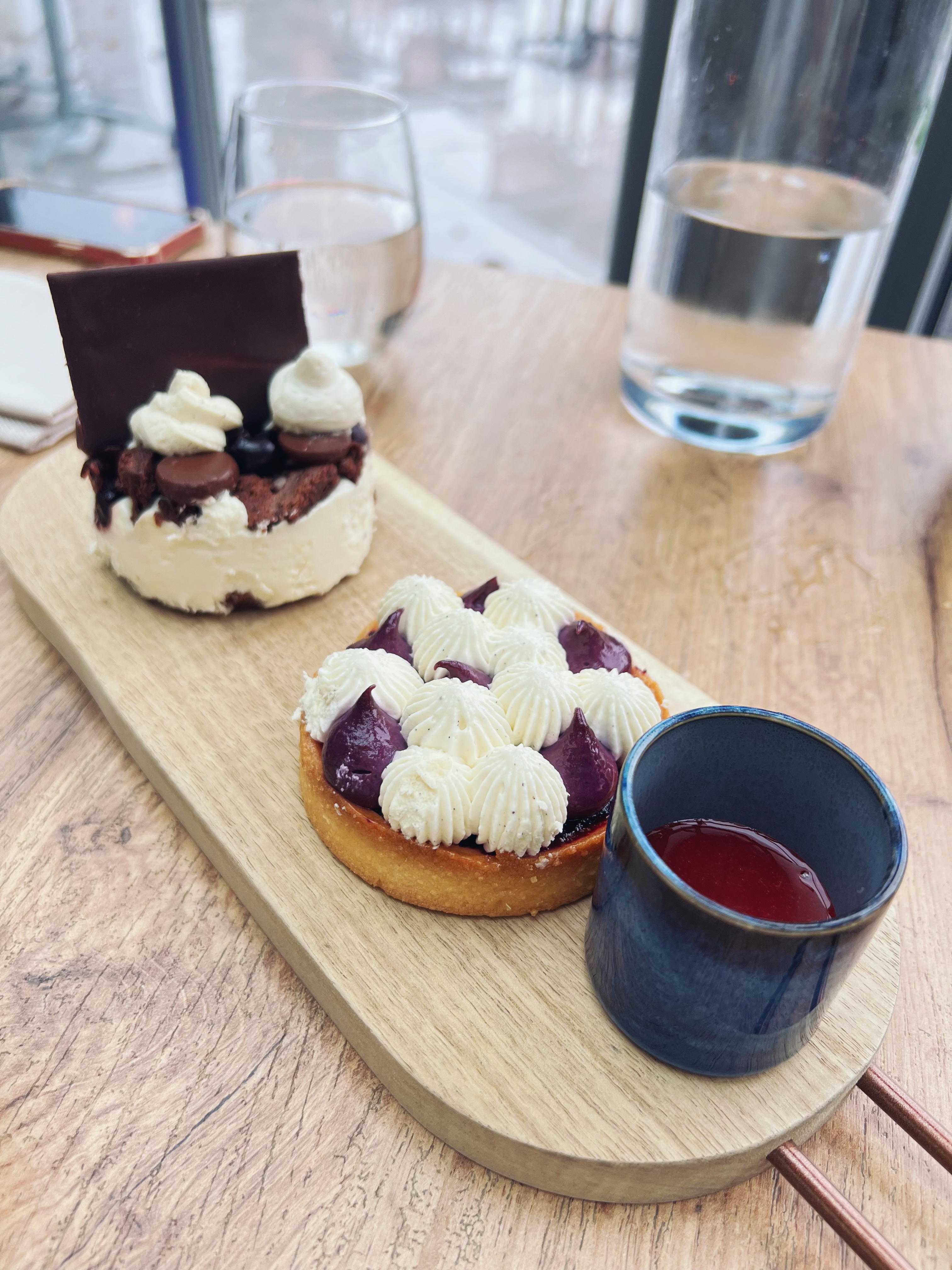Un ensemble général positif le personnel est très attentif mené par un responsable qui dirige bien son équipe, les plats ( salade et poké pour nous et planche de desserts a partager, très bonne idée!!) excellents. Terrasse agréable malgré le bruit de la rue parfois gênant Petit bémol pour les vins trop chers pour moi.