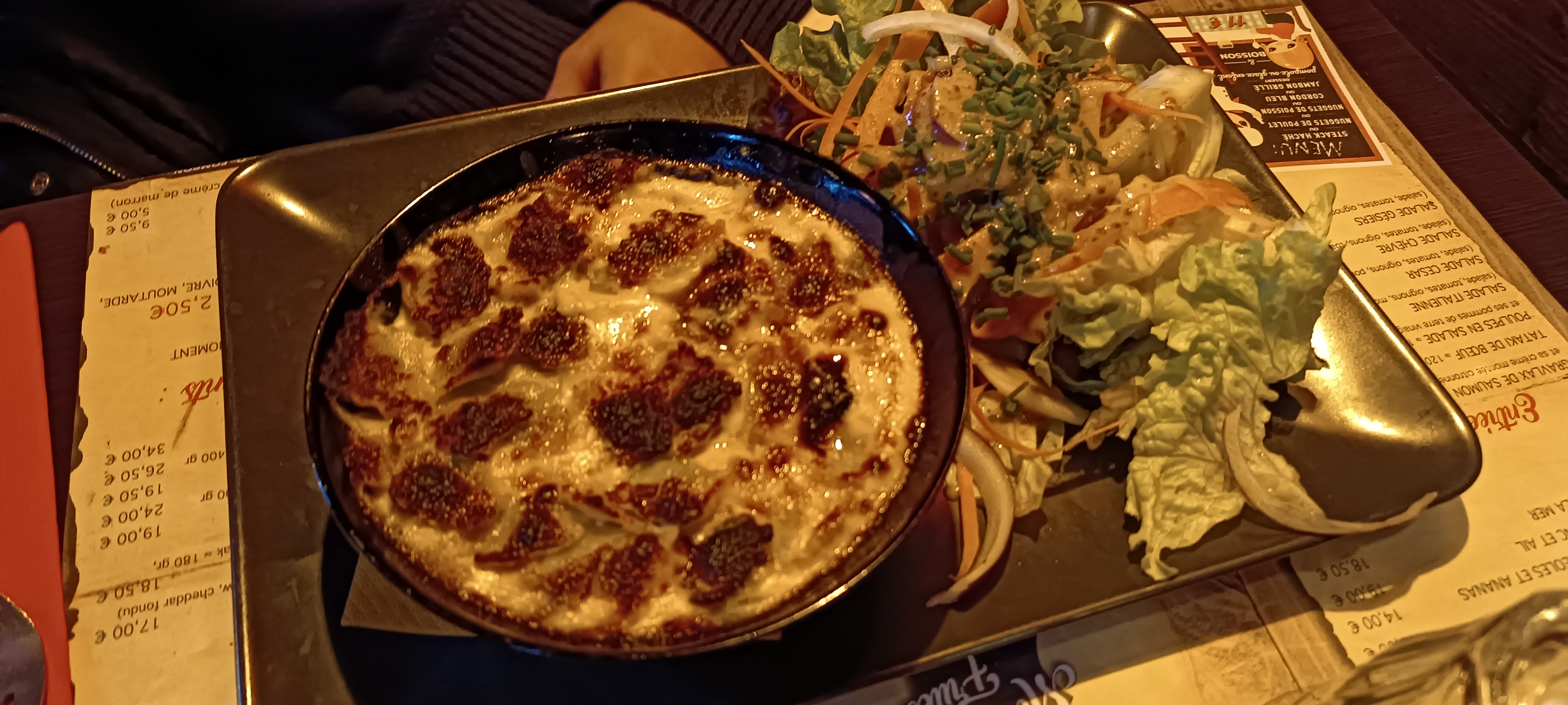 Côtés agneau limite en fraîcheur et odeur du grill trop prononcé et j'ai retrouvé une frites de ma salade verte . Ça présence peu supposé que la salade est recyclée ♻