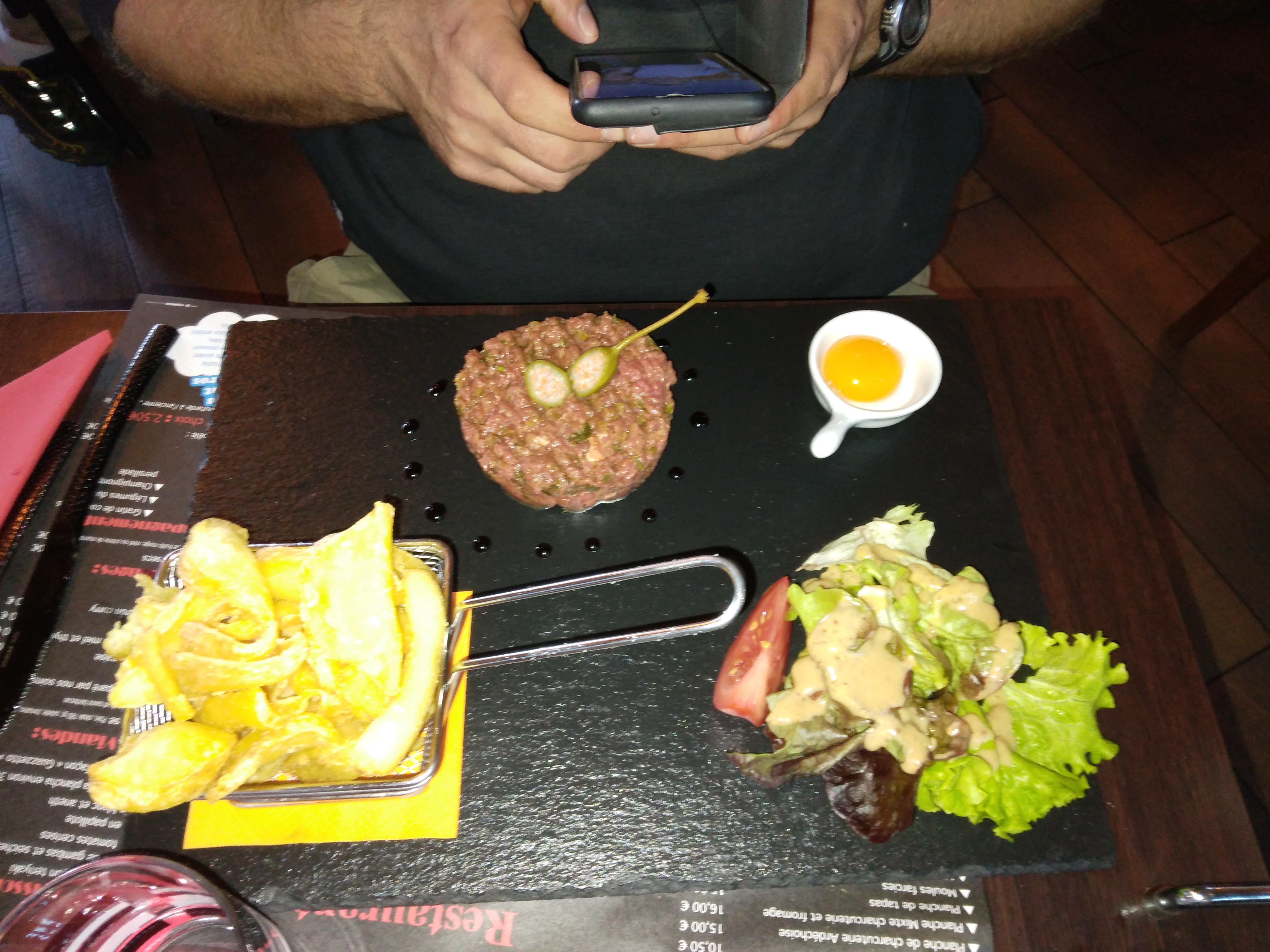 Bon service serveuse agréable. Mais au niveau de la nourriture , j'ai pris un steak tartare aucune saveur et pleins de flotte ( viande congelé ) au niveau de l accompagnement dans l assiette il ne fallait pas avoir trop faim un portion pour un enfant de 1 an sans exagérer...à éviter....