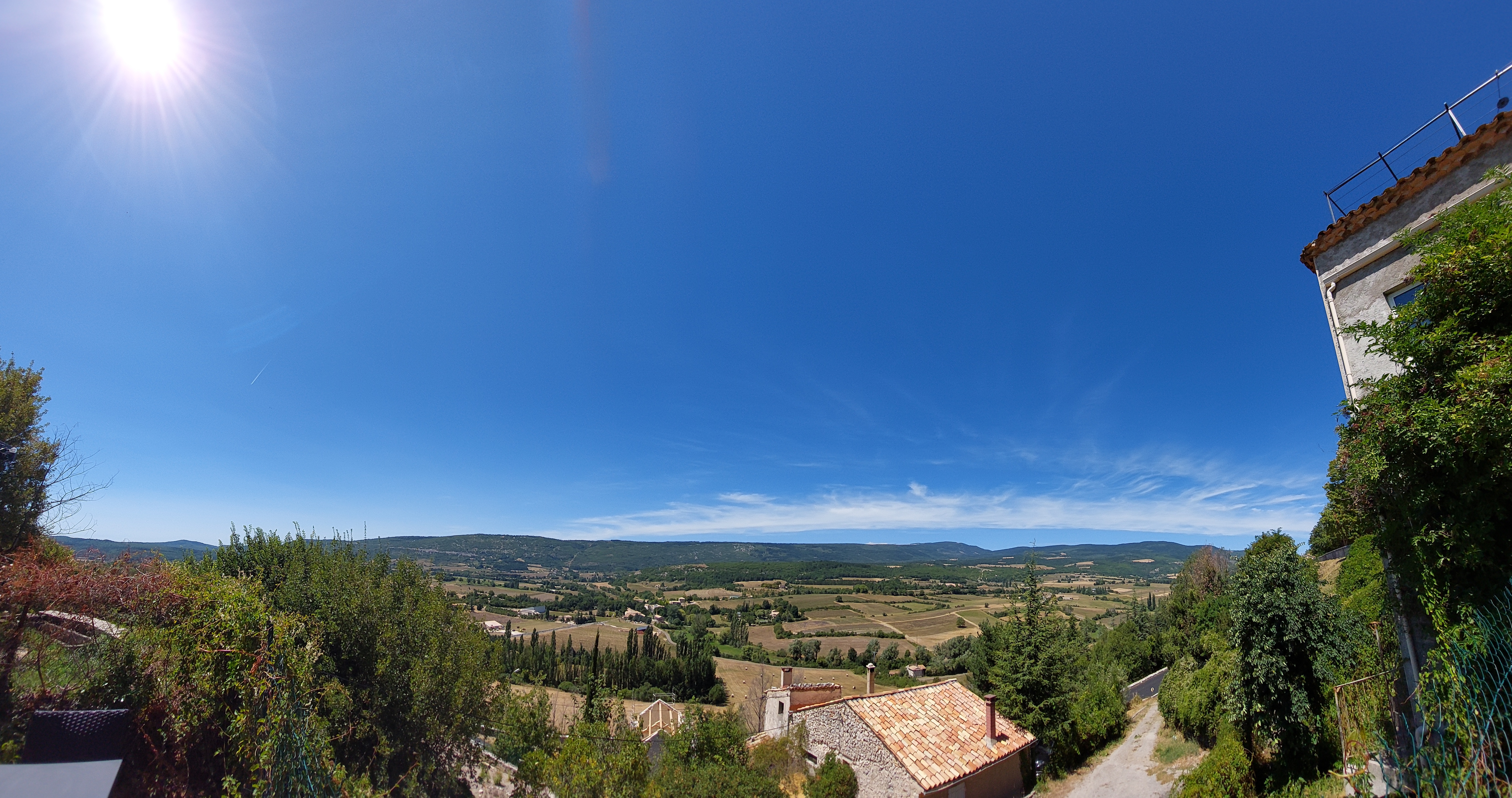 Accueil correct, cadre sympathique avec terrasse sous les arbres. Terrasse avec vue sur le Ventoux prise d'assaut et réservée pour la restauration.