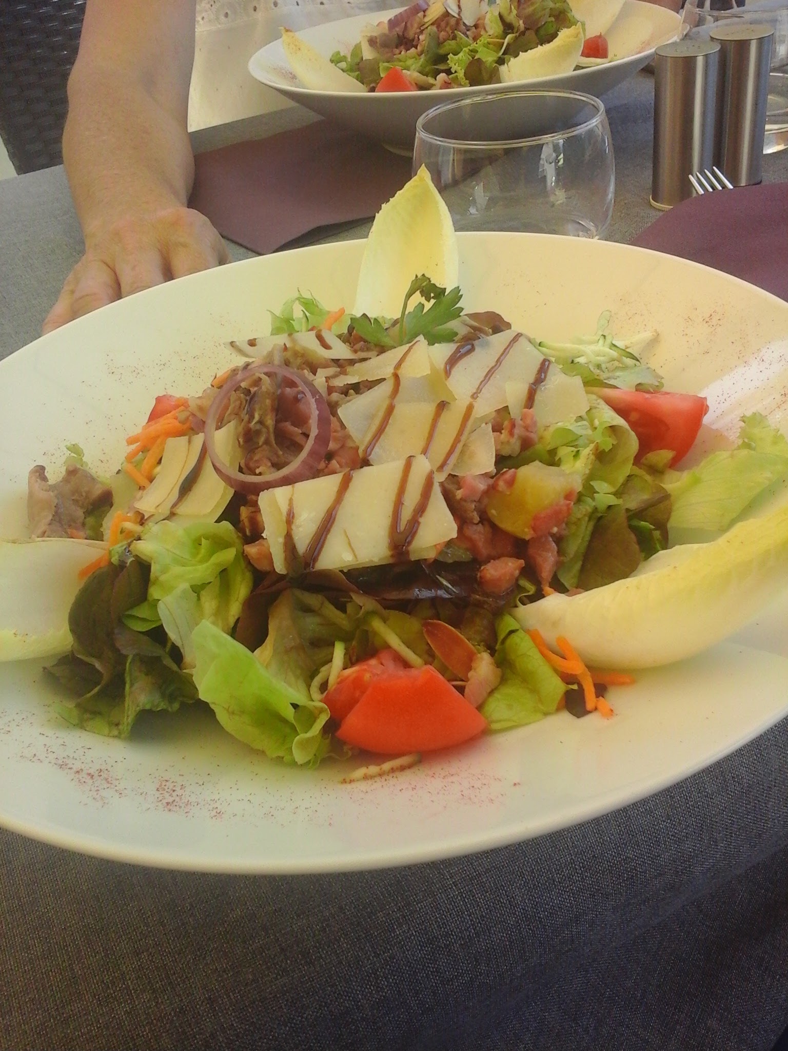 Salades immangeables noyées ds la vinaigrette du supermarché et salade verte pas super fraîche ! L' étoile est uniquement la vue ! Vous pouvez profiter de la vue à partir de la place à côté.