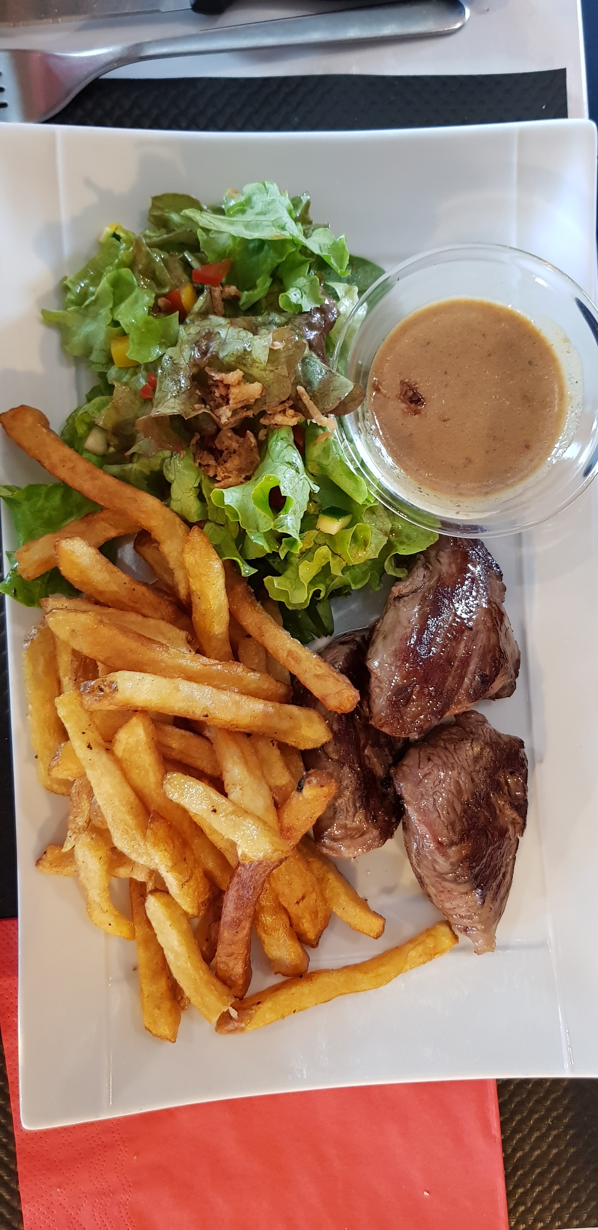 Très bien. Il y a du choix, le service est rapide et situé à côté de l'activ park . Facile pour se garer. Accueil chaleureux et cuisine délicieuse. La grande planche de tapas est très sympa. Concerts régulièrement qui ajoutent une touche animée à l'ambiance. Menu enfant pour les plus jeunes. Vraiment très bien.