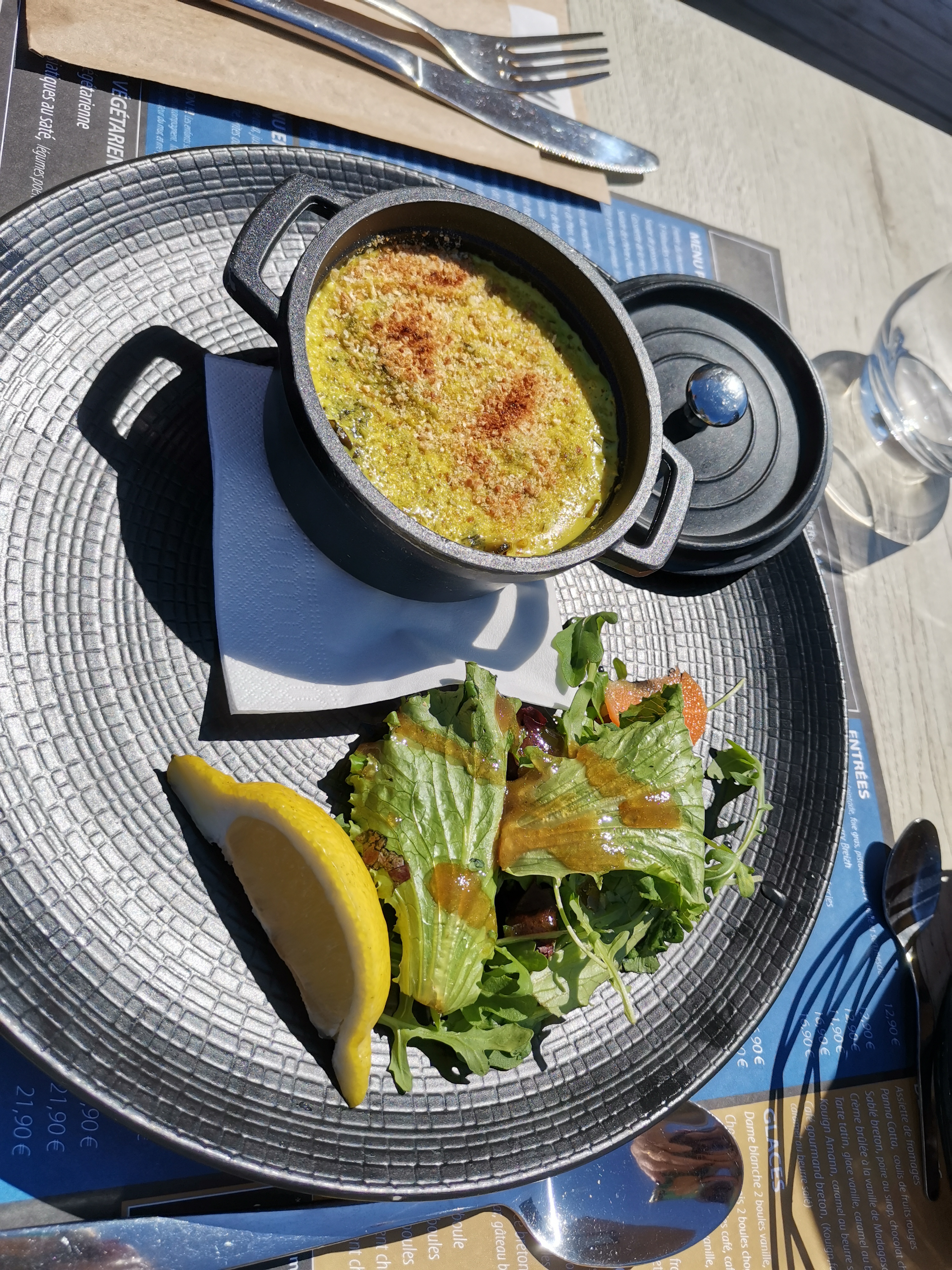 Déjeuner sur la terrasse très ensoleillée, personnel accueillant, au menu du déjeuner : palourdes farcies, assiette de fruits de mer, cassolette de la mer au curry, tartare bœuf et tartare thon. On s'est régalé !