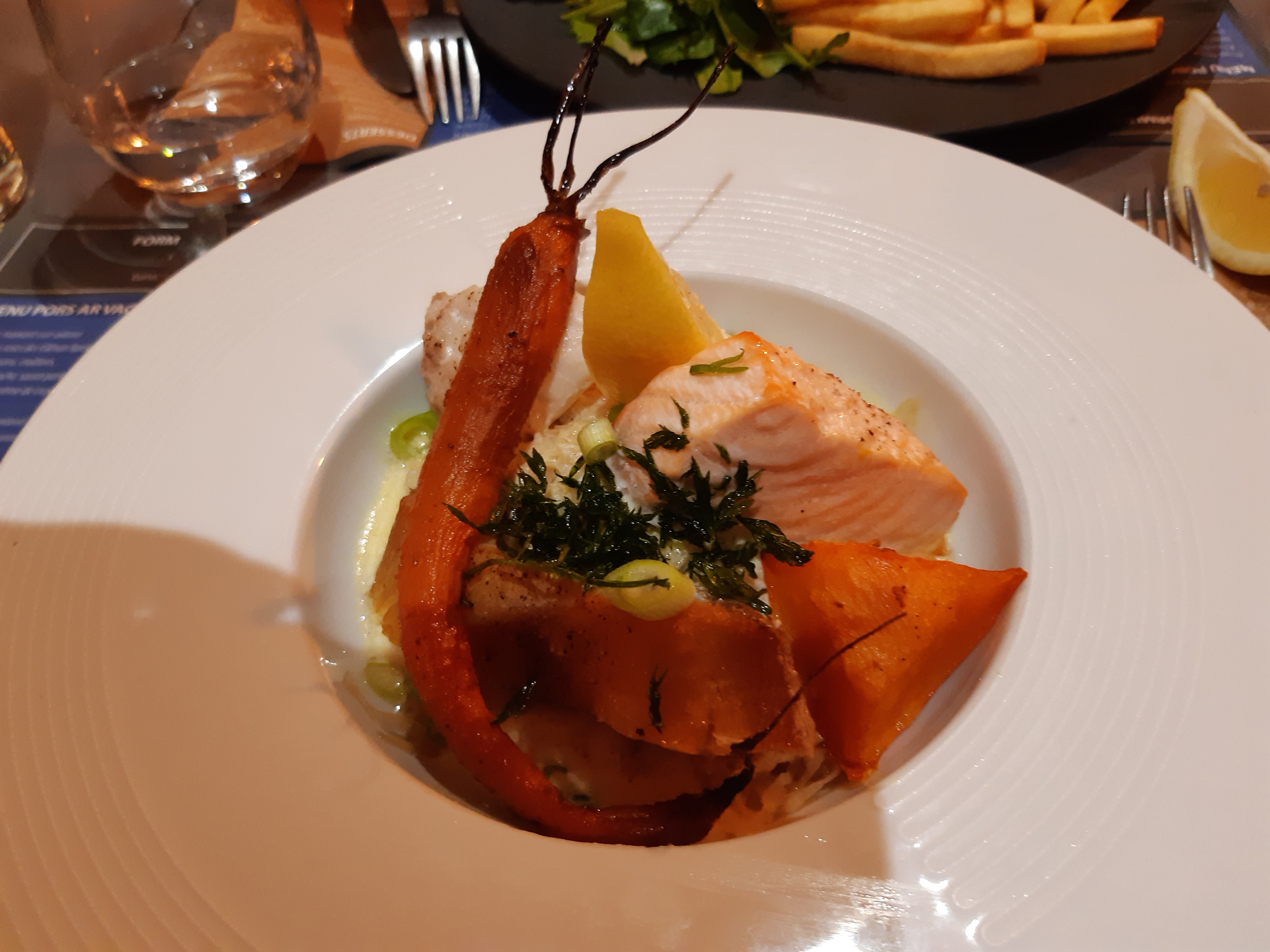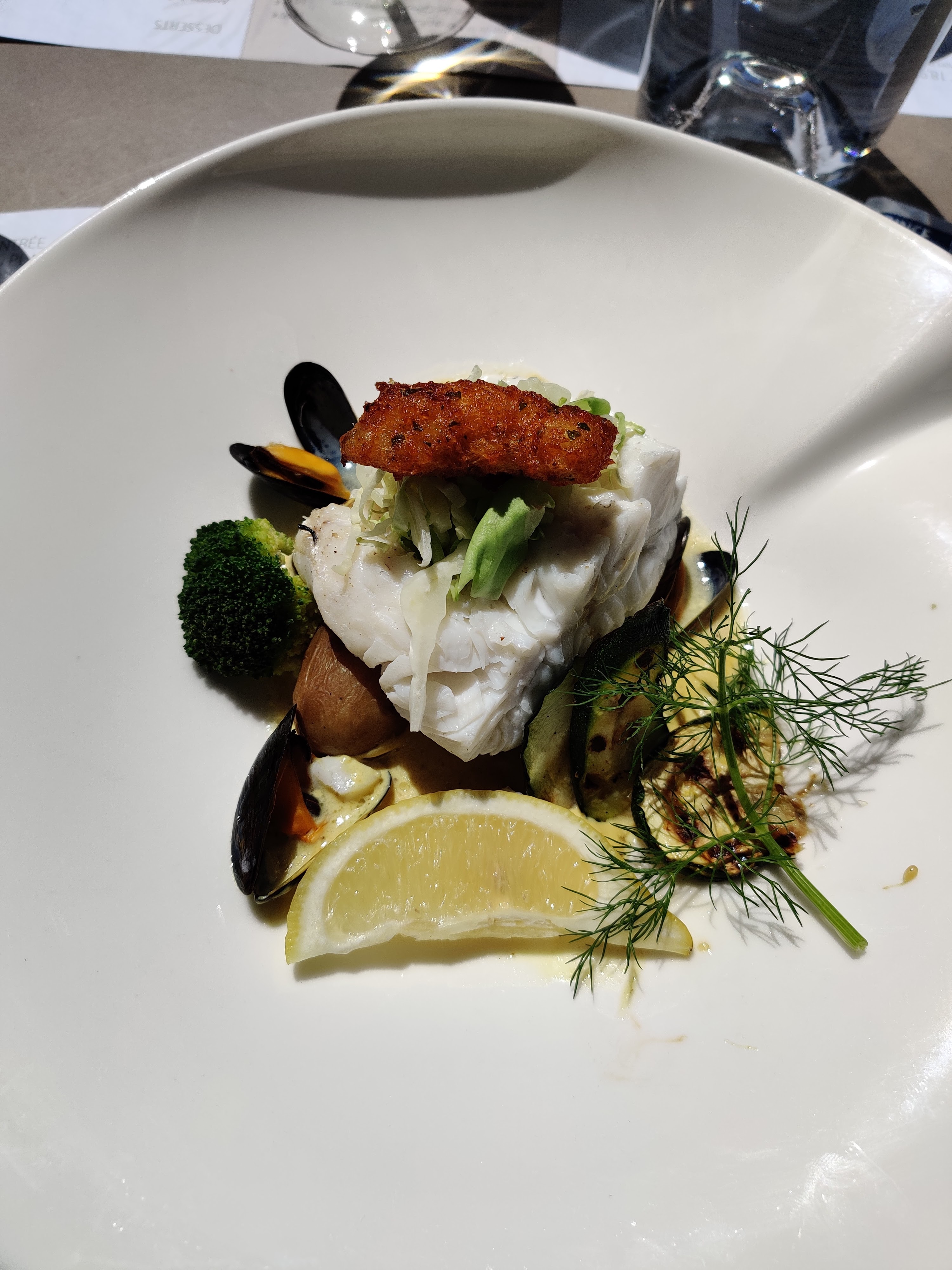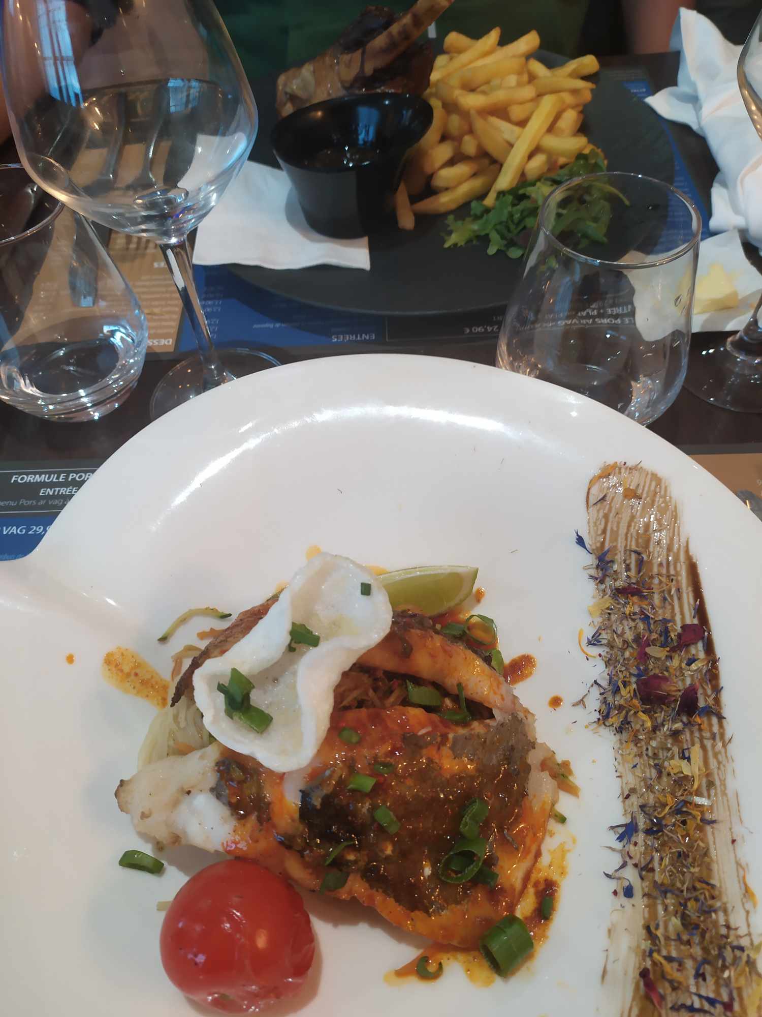 Cuisine soignée, bonne cuisson des poissons, langoustines un peu de surcuisson, je mets 4 étoiles car l'arrière salle est trop bruyante pour pouvoir parler, dommage la vue est géniale. Nota : si vous présentez des allergies ou intolérances alimentaires avertissez lors de la réservation pour avoir des plats adaptés.