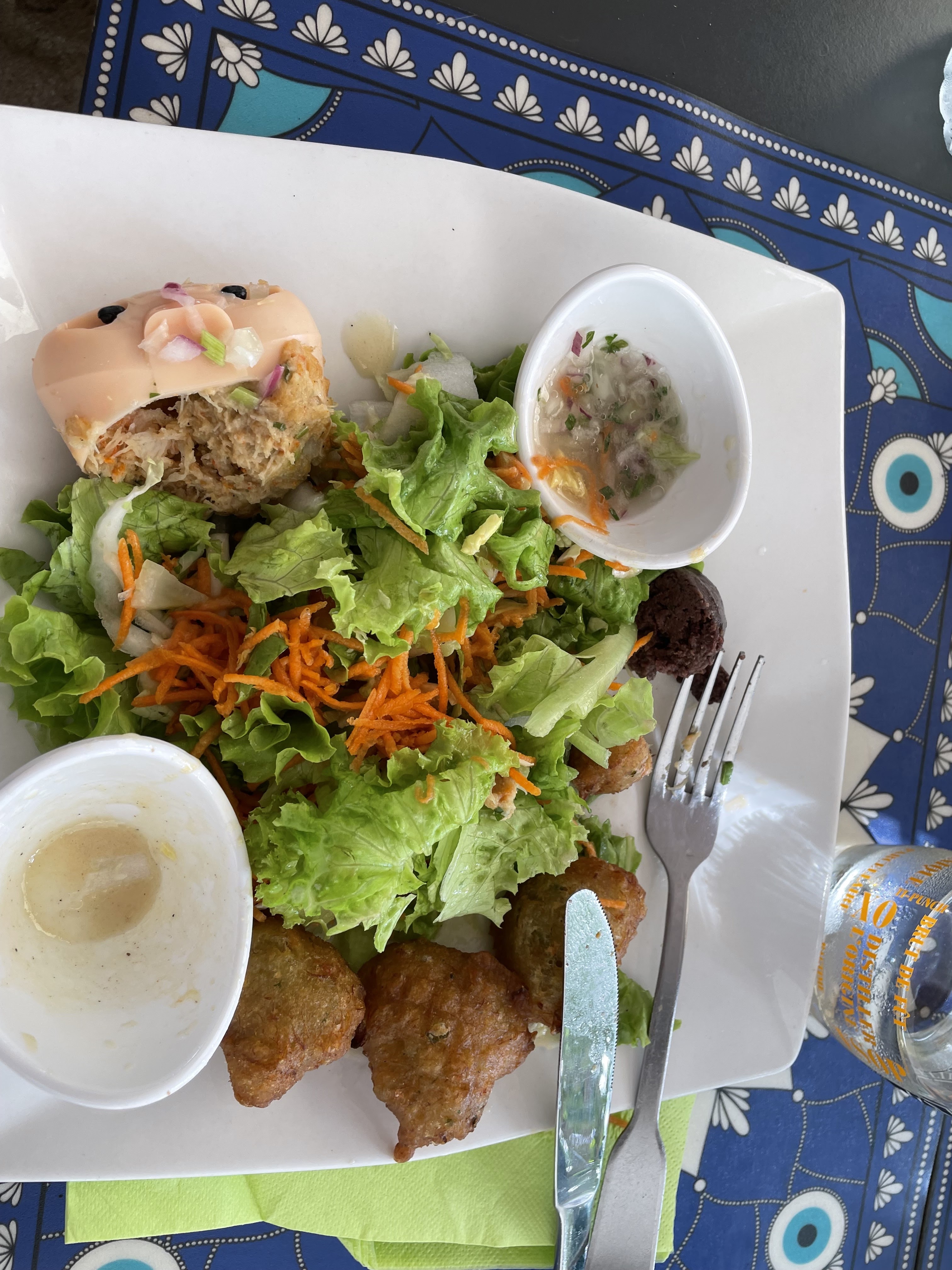 Le cadre est plus que sympa, mais ne donne pas le sourire et encore moins le sens de l'humour au personnel ... Nous avons passé deux heures et demi pour avoir bu deux mojitos et un plat chacun. Manque d'organisation, tout le monde est un peu partout mais pas très efficace.. Trois fois demandé notre cocktail, autant de fois les accras pour accompagner notre apéritif. Fini nos verres quand les accras sont arrivés donc on commande un deuxième verre pour accompagner les accras ! 😁 Deuxième verre ... évidemment arrivé après être servi du plat ! Bon pas très grave, on reste cool, la nourriture était assez correct mais le mixed grill très décevant pour le prixdde 22 € : Trois petites merdes dans l'assiette ... Quand on a essayé d'expliquer à la cuisinière (patronne ?) que nous avons pas les mêmes notions d'un plat d'un assortiment de viande grillée, on se fait allumer par celle ci. 😱 Elle dit qu'elle met ce qu'elle veut dans l'assiette et en plus que le contenu du plat est précisé sur la carte. C'est faux ! Ensuite on peut aller se faire voir selon madame.. C'est vrai que s'en aller et de ne plus y mettre les pieds... C'est une très bonne option !