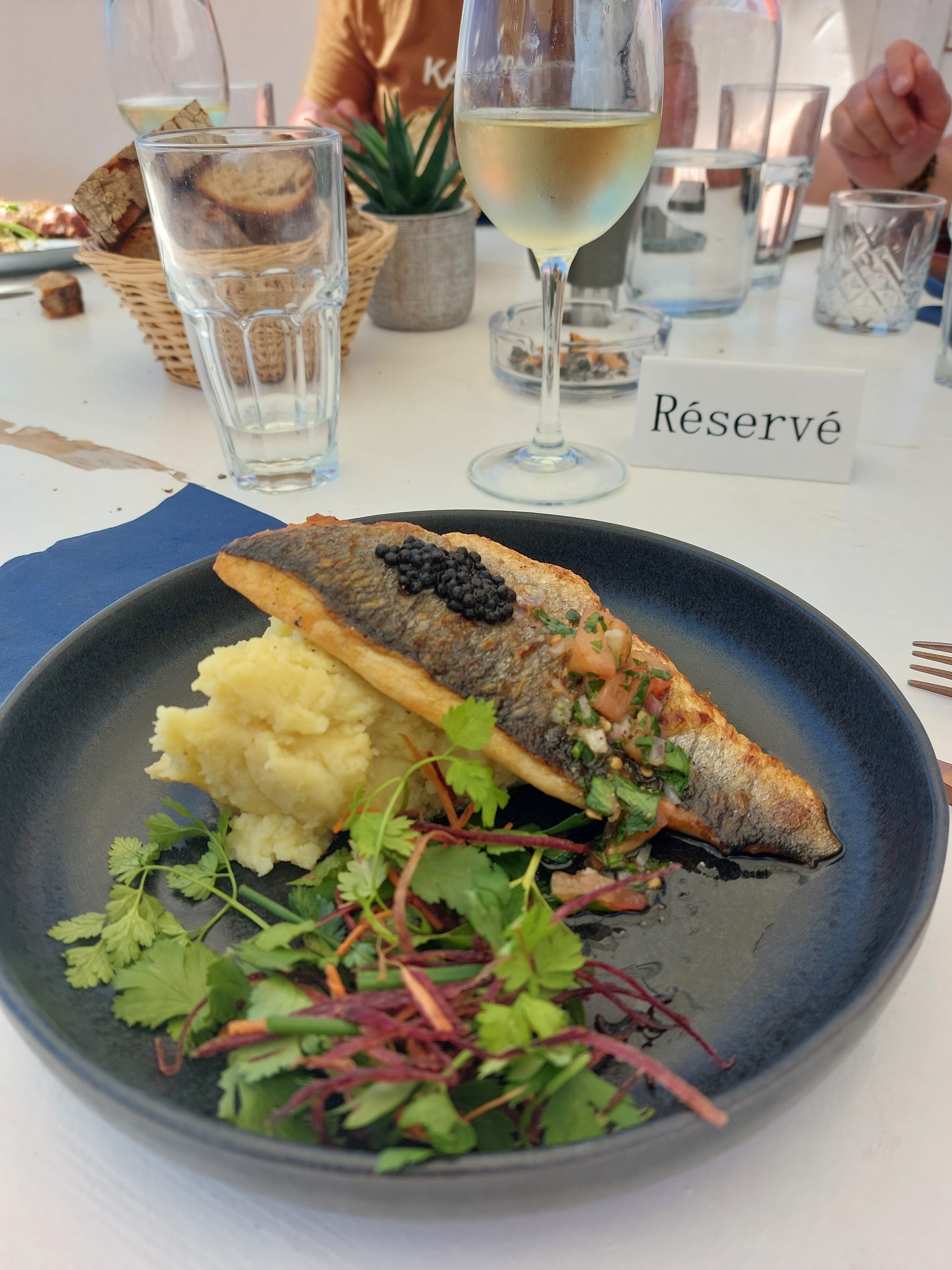 Le restaurant est charmant, la vue imprenable, et la cuisine délicieuse! Nous avons pu prendre l’apéro et dîner tranquillement alors que les enfants jouaient dans le sable: le pied! Oui, ils étaient complets, c’était un peu long, mais ça valait le coup, on a pris le temps, on a profité et on s’est régalé. Les prix m’ont semblé corrects compte tenu du travail et de la qualité. Perso, je préfère choisir les accompagnements à part, ça évite de quémander des changements…