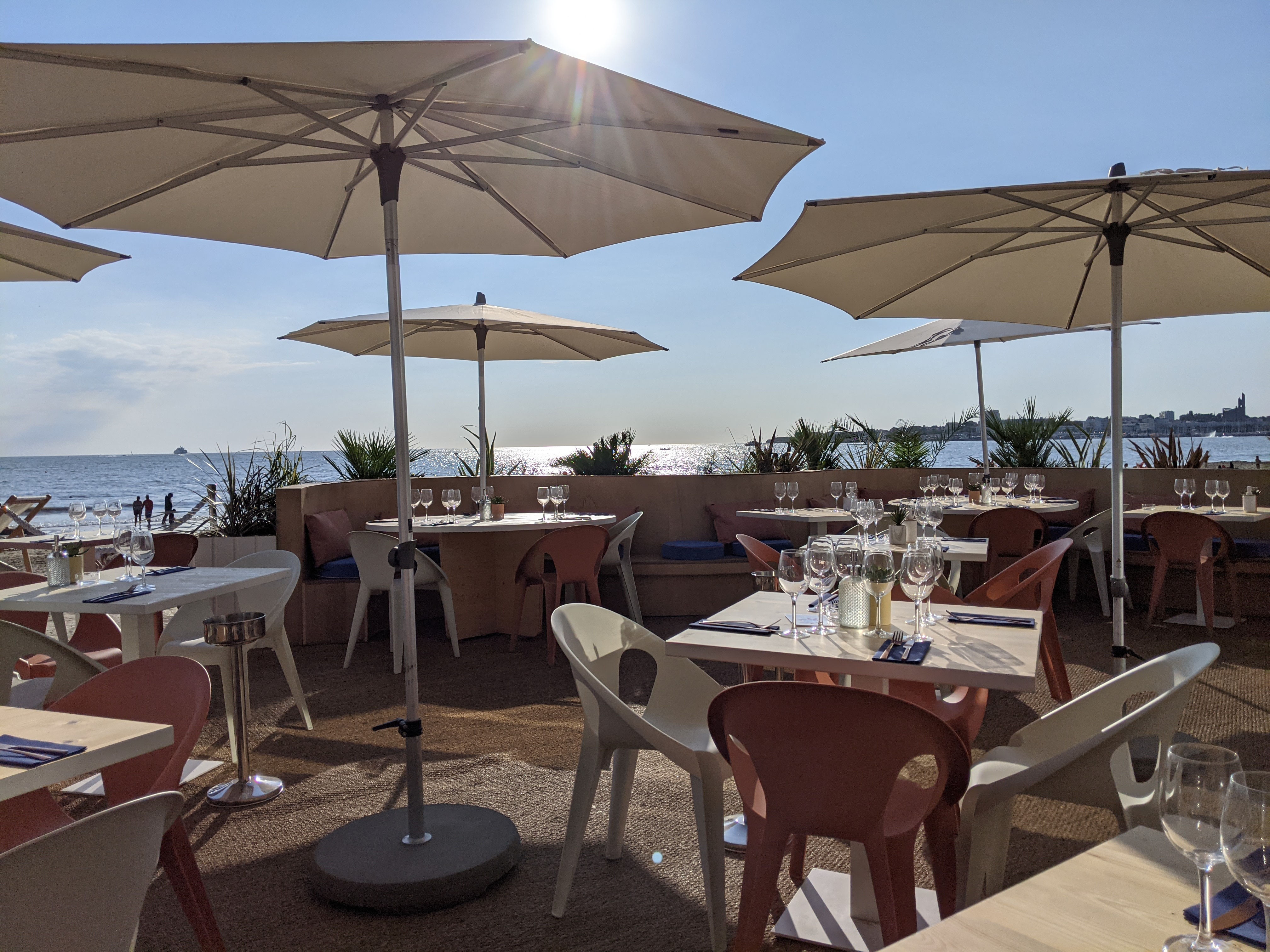 C est un restaurant qui a été ouvert cette année le lieux est face à la mer. Nous avons pris un aperitif j ai demandé des cacahuètes ou pistaches un petit accompagnement ce qui se pratique dans d autres établissements et bien non ils ne font pas il fallait que je prenne une entrée plat que j ai partagé plus 12 euros!! Je vous invite à prévoir pour fidéliser les clients. Nous avons adoré le soleil de 13h un peu chaud voir très chaud il faudrait plus de parasols. J espère que ces petites suggestions seront pris en compte pour améliorer le service, mais vous venez d ouvrir j ai tenu à VOUS en faire part. Cordialement