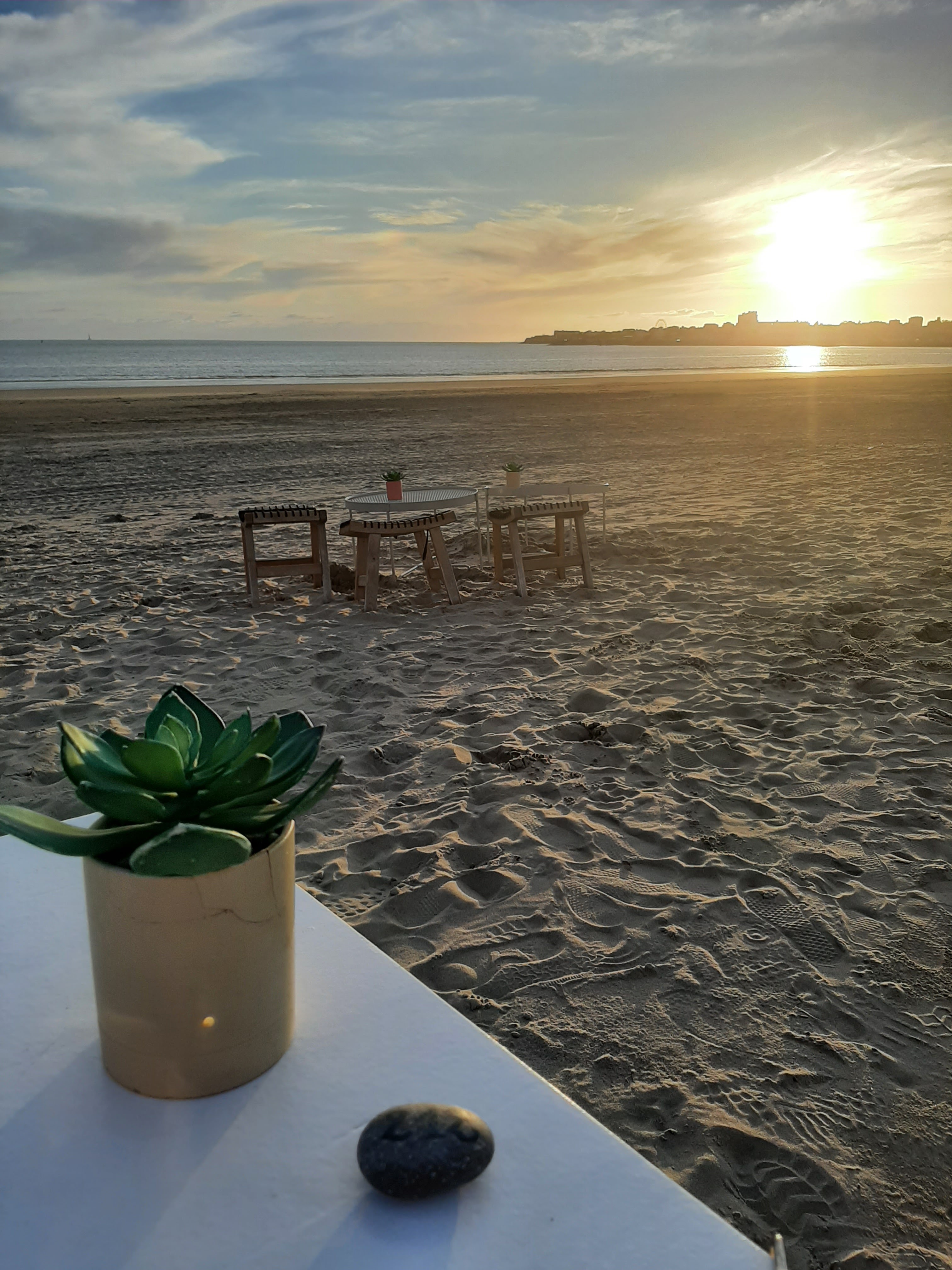 Très bon moment. nous avons bu un verre et pris nos entrées les pieds dans le sable, au couché du soleil, face à la mer. Puis nous avons terminé notre repas à l'intérieur. Nous nous sommes régalés.