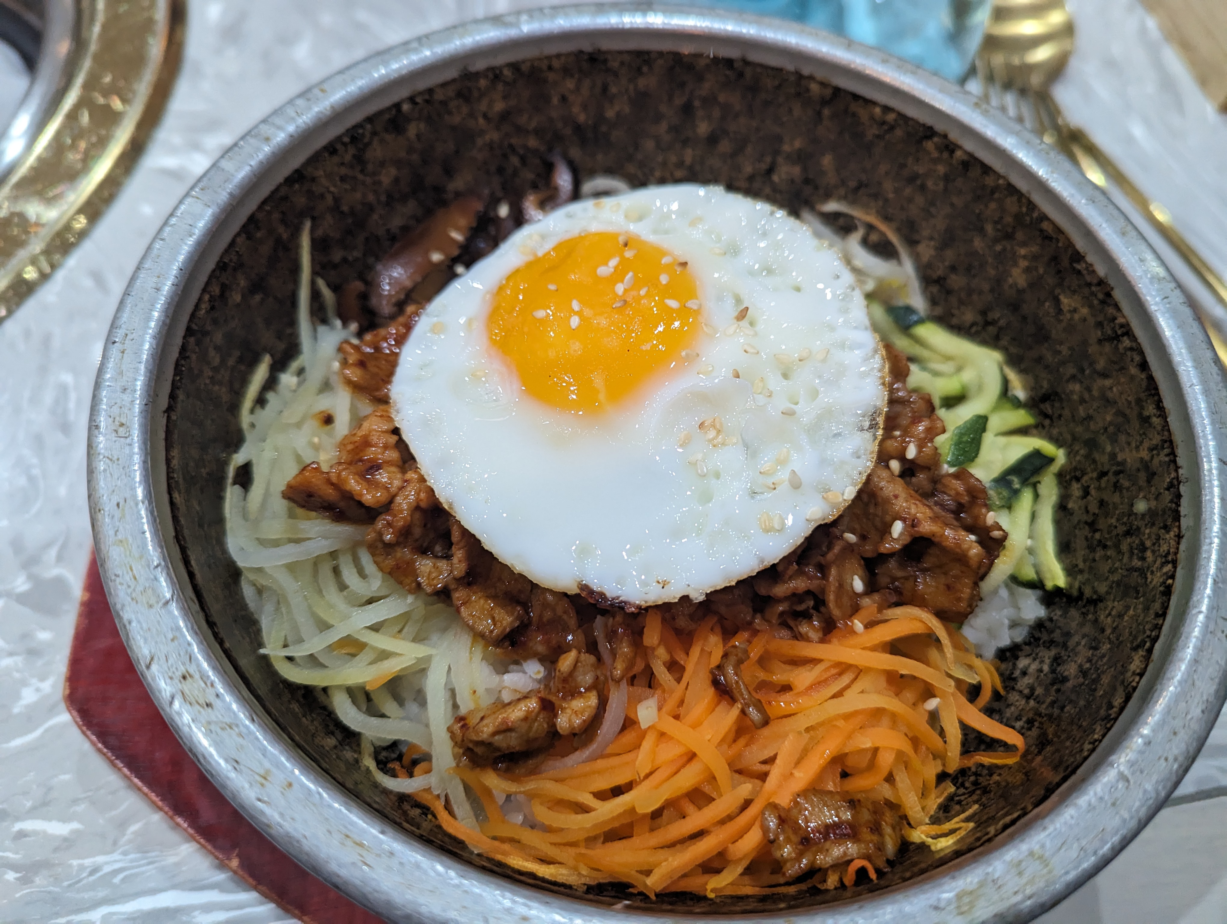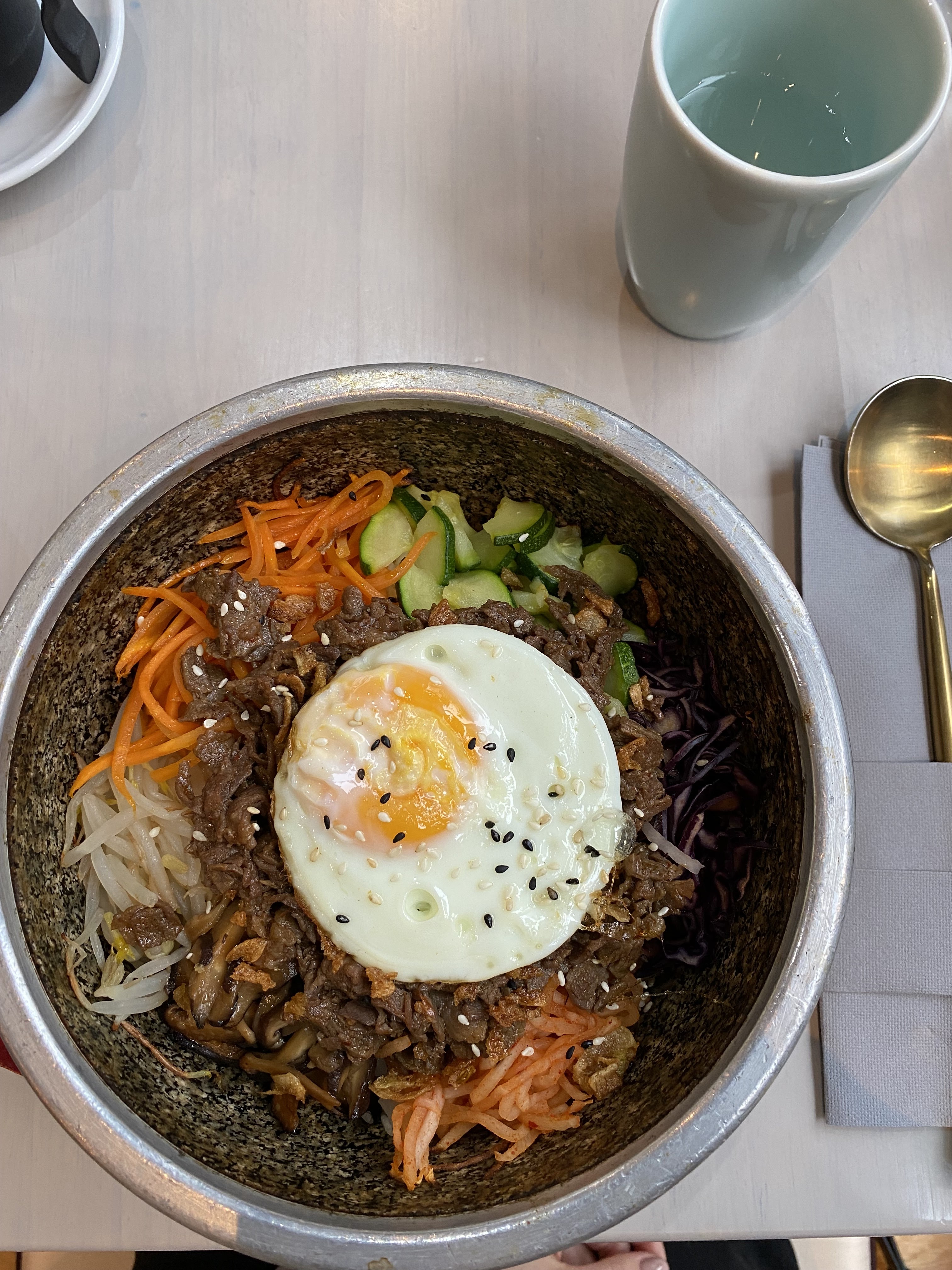Première fois dans un restaurant coréen, et c'est une expérience que je renouvellerai. Les Bibimbaps, une tuerie!