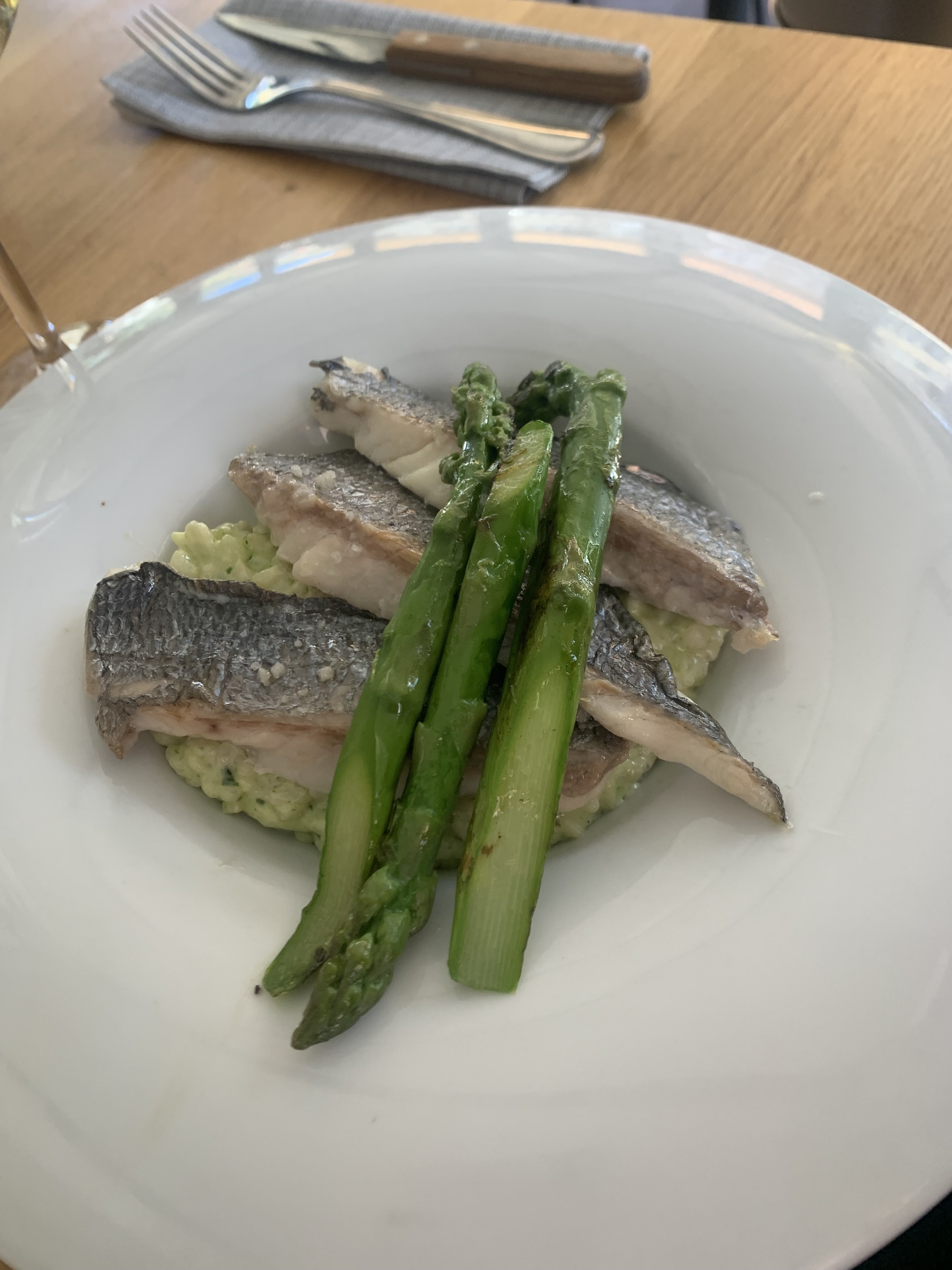 Nous nous sommes régalés. Cuisine fine , accueil agréable. Velouté d'asperges délicieux et ravioles au loup originales et succulentes. Une excellente soirée !