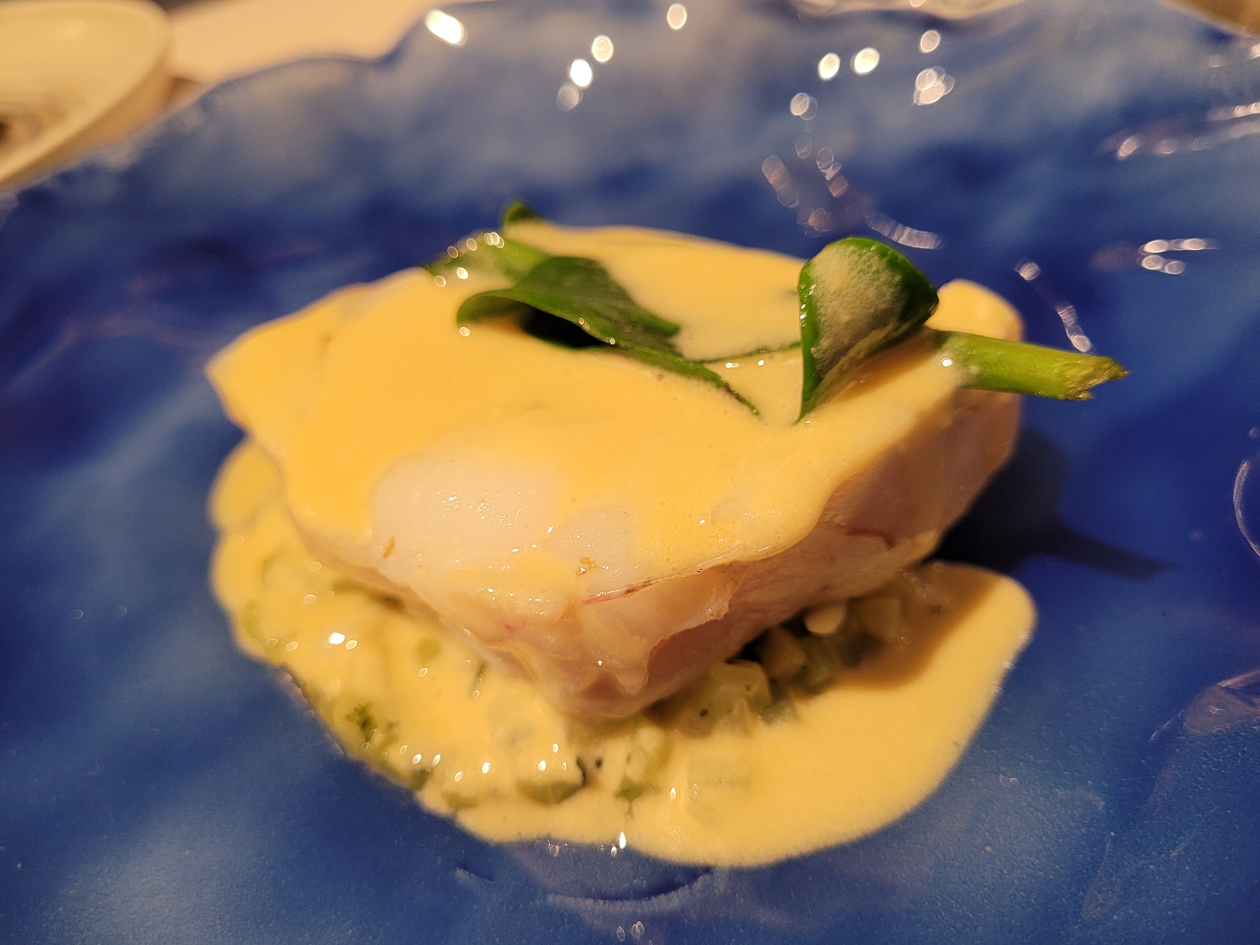 C'était tout simplement excellent! Nous avions pris le menu dégustation 9 services avec les vins. Tous les plats de poissons, fruits de mer, le foie gras étaient exceptionnellement savoureux et audacieux dans les associations de saveurs. L'accord des vins était impeccable, audacieux également. Les desserts parfaits également. Quel plaisir!