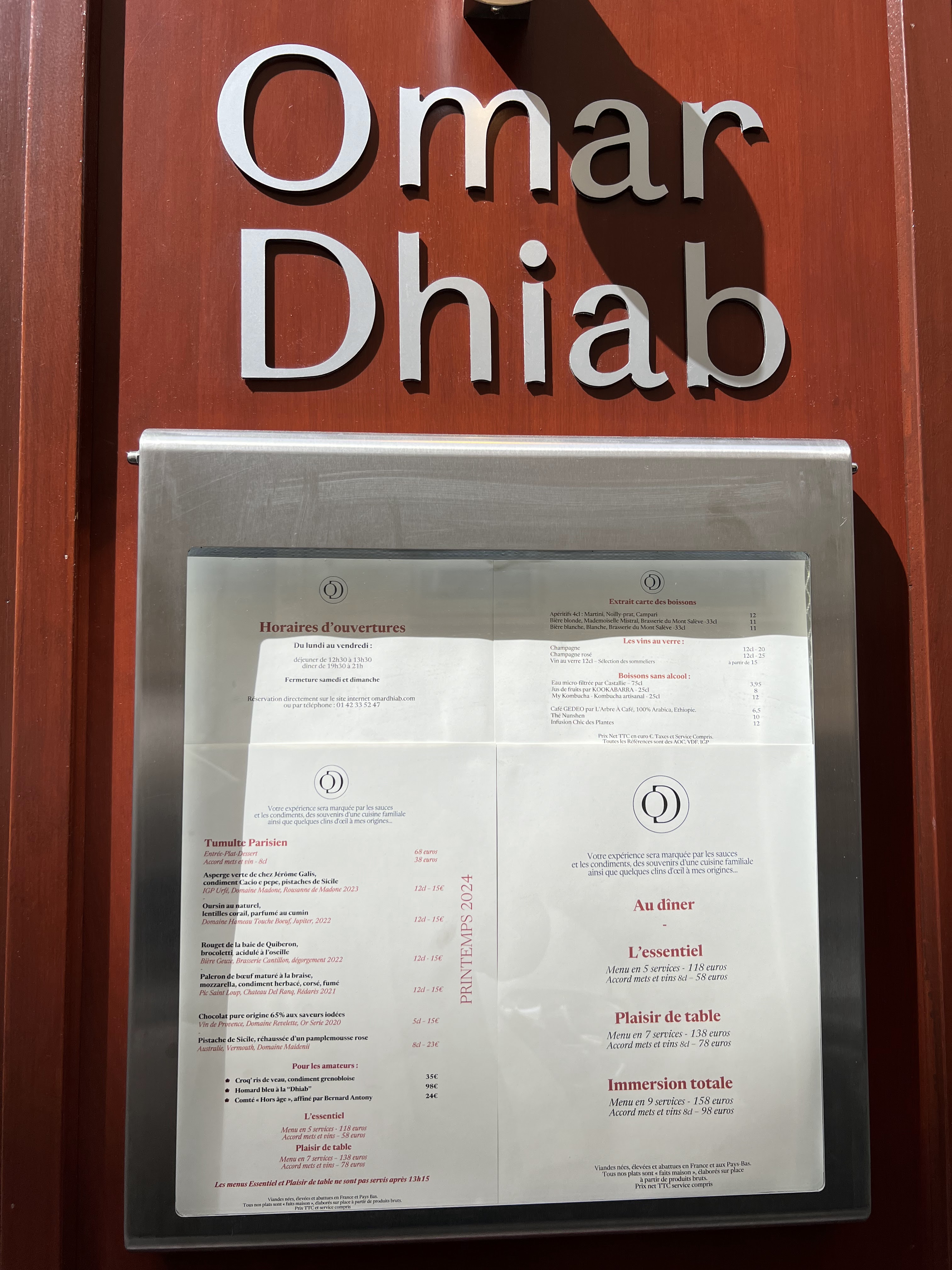 Expérience exceptionnelle chez Omar Dhiab ! Le service est impeccable. La cuisine est incroyable, originale avec quelques touches de classicisme ! L’accord mets vins fait la différence. Je recommande 1000 fois.