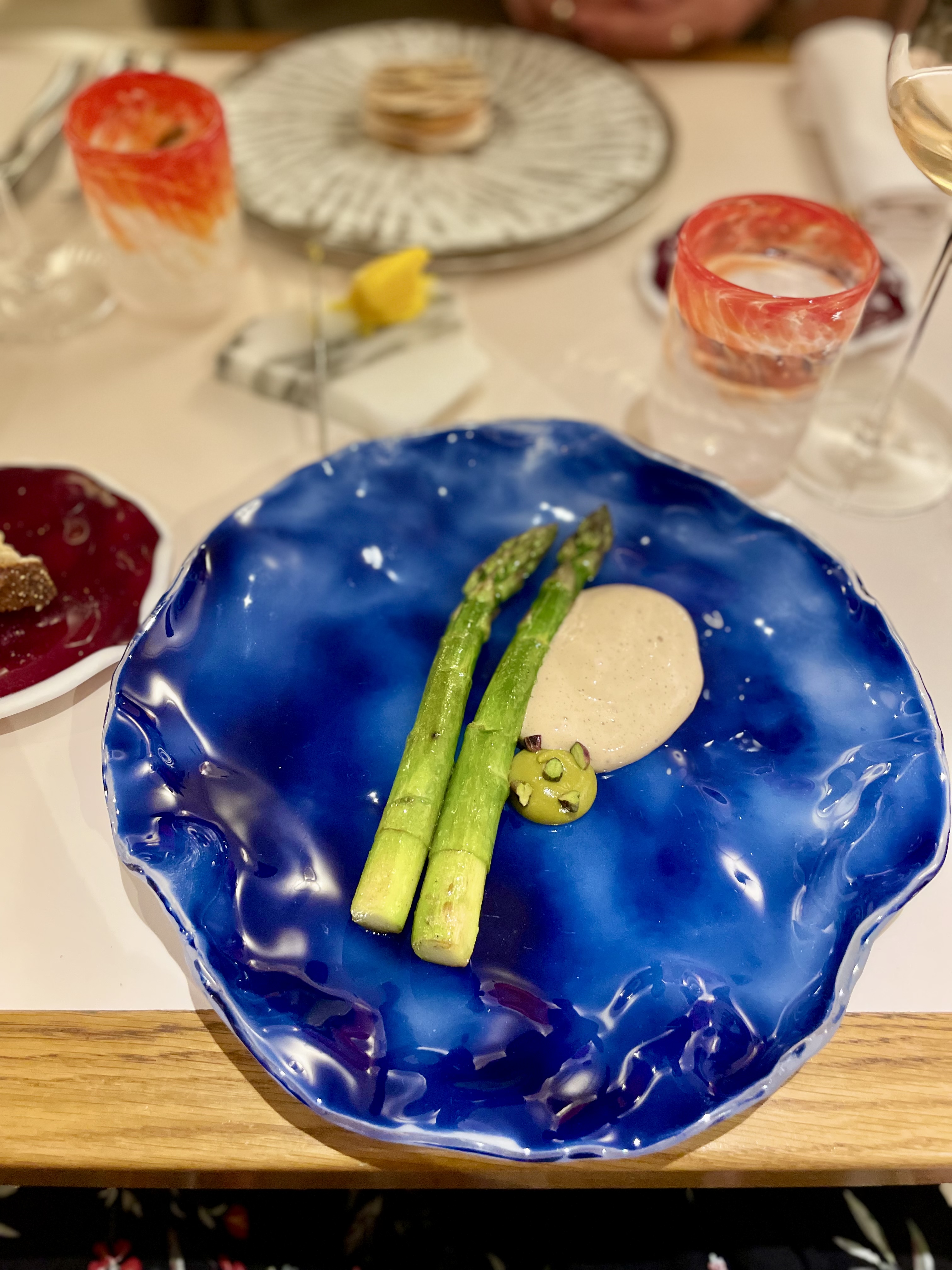 Nous y étions pour déjeuner pendant la journée. Dans l’ensemble, c’est une expérience intéressante, mais je n’y retournerais pas une deuxième fois. La nourriture est délicieuse, la présentation est intéressante, le service est impeccable. Il y a cependant quelques points. Il était difficile de mâcher la viande. C'était rare - peut-être que la recette ne prévoit pas un rôti différent, mais je voudrais ne pas mâcher 70 grammes de viande pendant quinze minutes. Le deuxième moment fut complètement surprenant. Saleté sur le tapis. Saleté. Des morceaux et des taches. Eh bien, ce n'est pas drôle, honnêtement. Cela dépend de chacun, mais cela me saute aux yeux. Surtout si vous payez près de deux cents euros pour un déjeuner à deux. À propos du bien. Les serveurs font un excellent travail, parlent de l’origine de chaque ingrédient et sourient (ce qui n’arrive pas toujours). Les desserts sont super intéressants en goût et en apparence. Le hit du menu du déjeuner, ce sont les asperges. Mesdames, regardez la photo et décidez si vous l'aimez :) Mais le goût des asperges est tout simplement parfait. Le tartare est également bon.