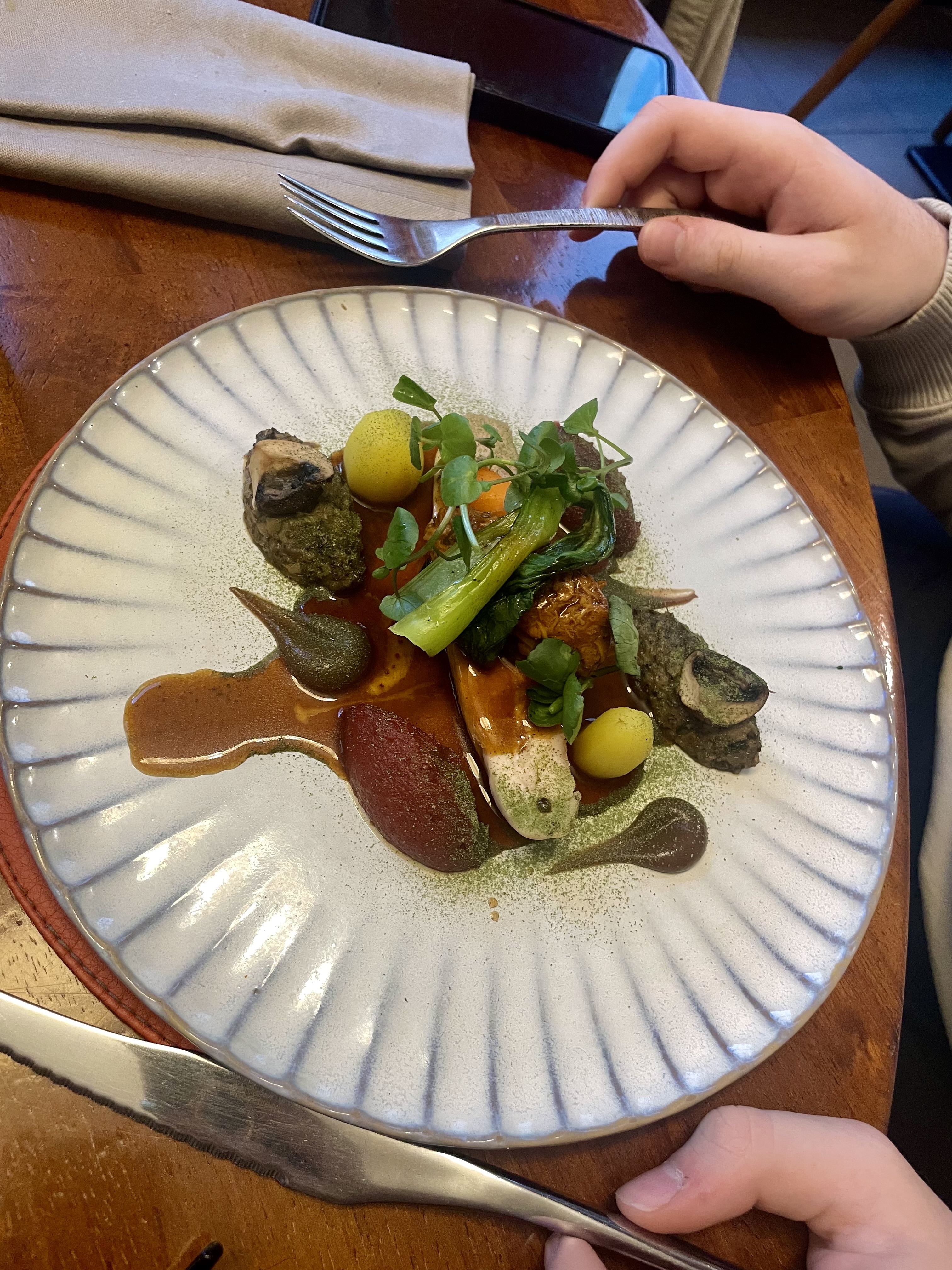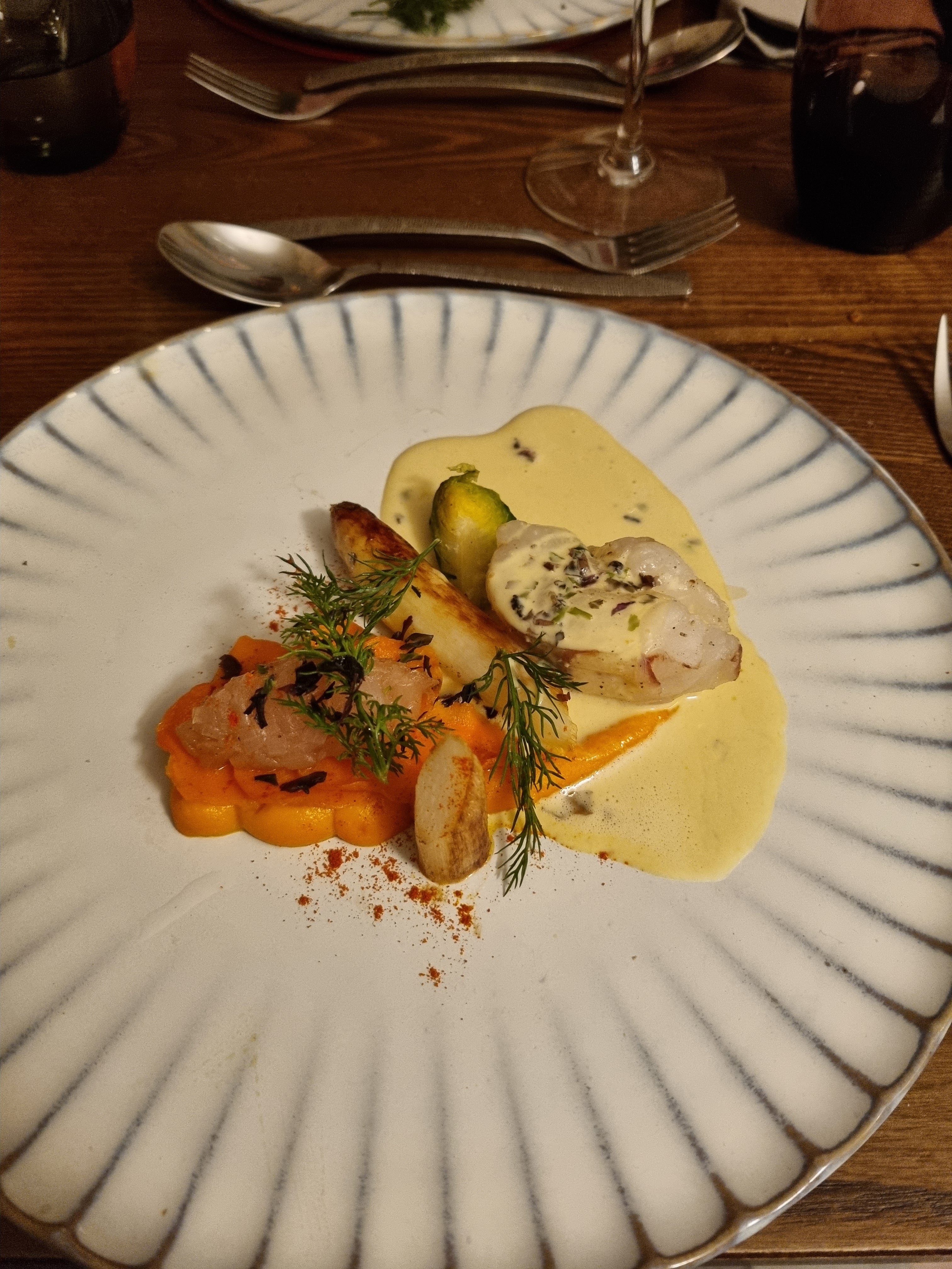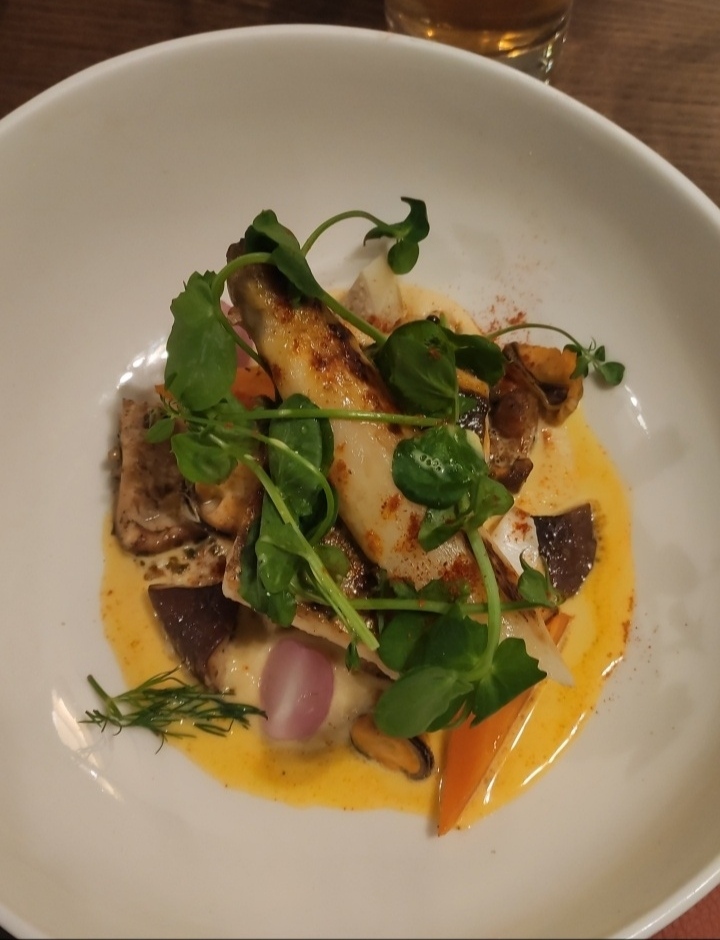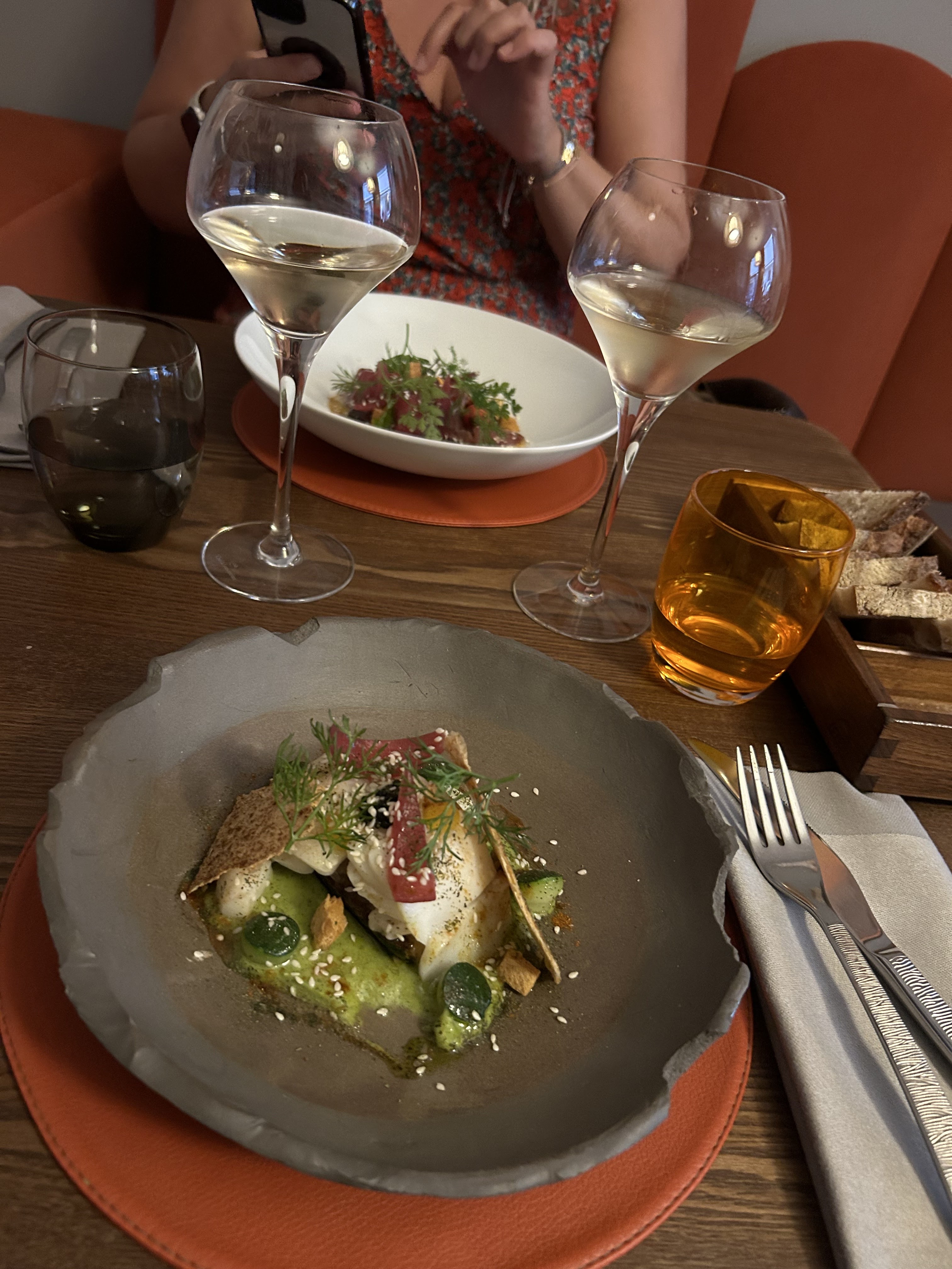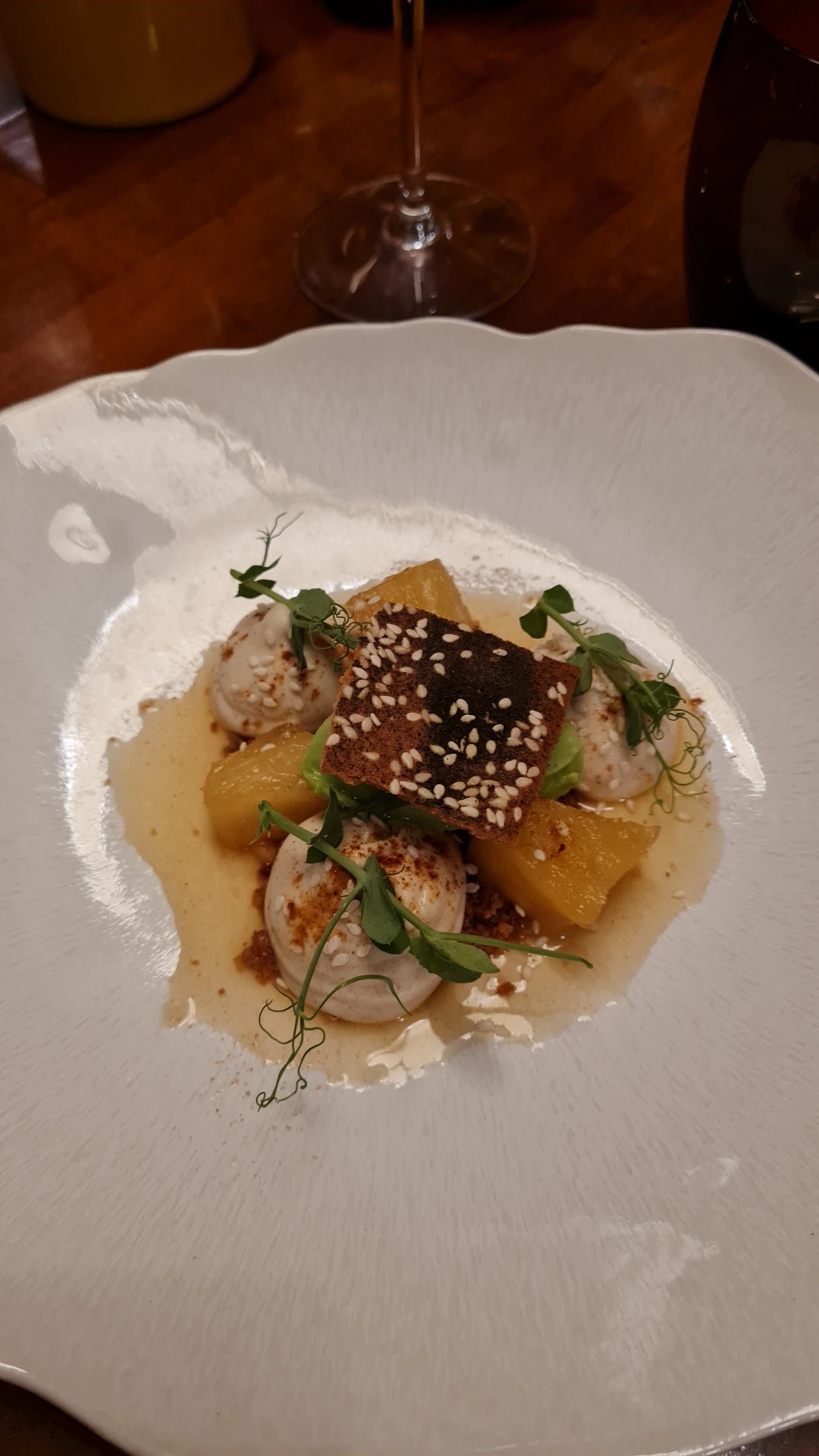 J'ai eu un excellent dîner - j'ai choisi le menu du chef. La nourriture était bien préparée et il y avait des saveurs et des combinaisons intéressantes ! Le service était un peu lent (durée totale ~ 2,5 heures) mais pour une petite place, il faut s'y attendre. J'ai beaucoup aimé le plat de poisson et le dessert.