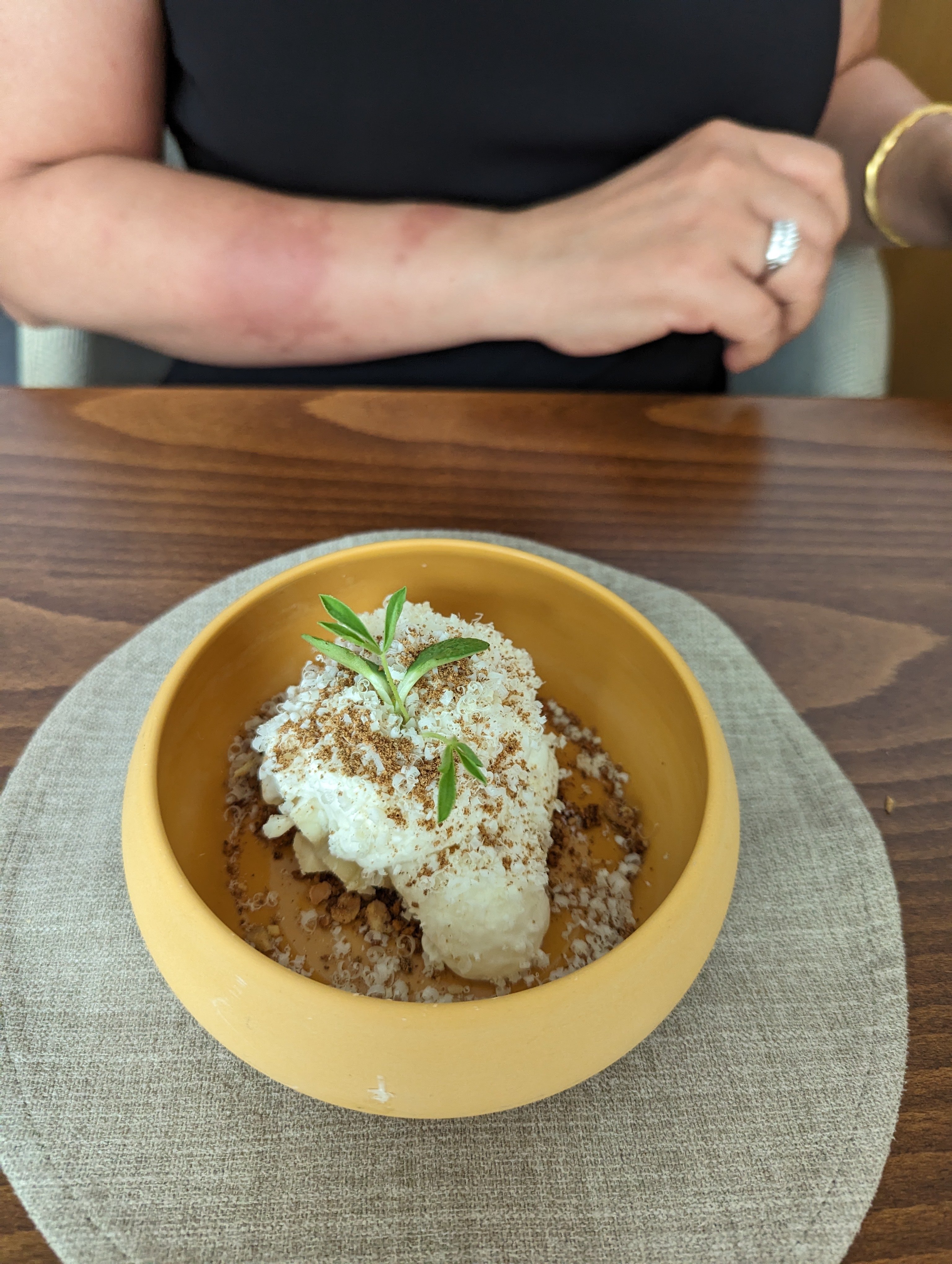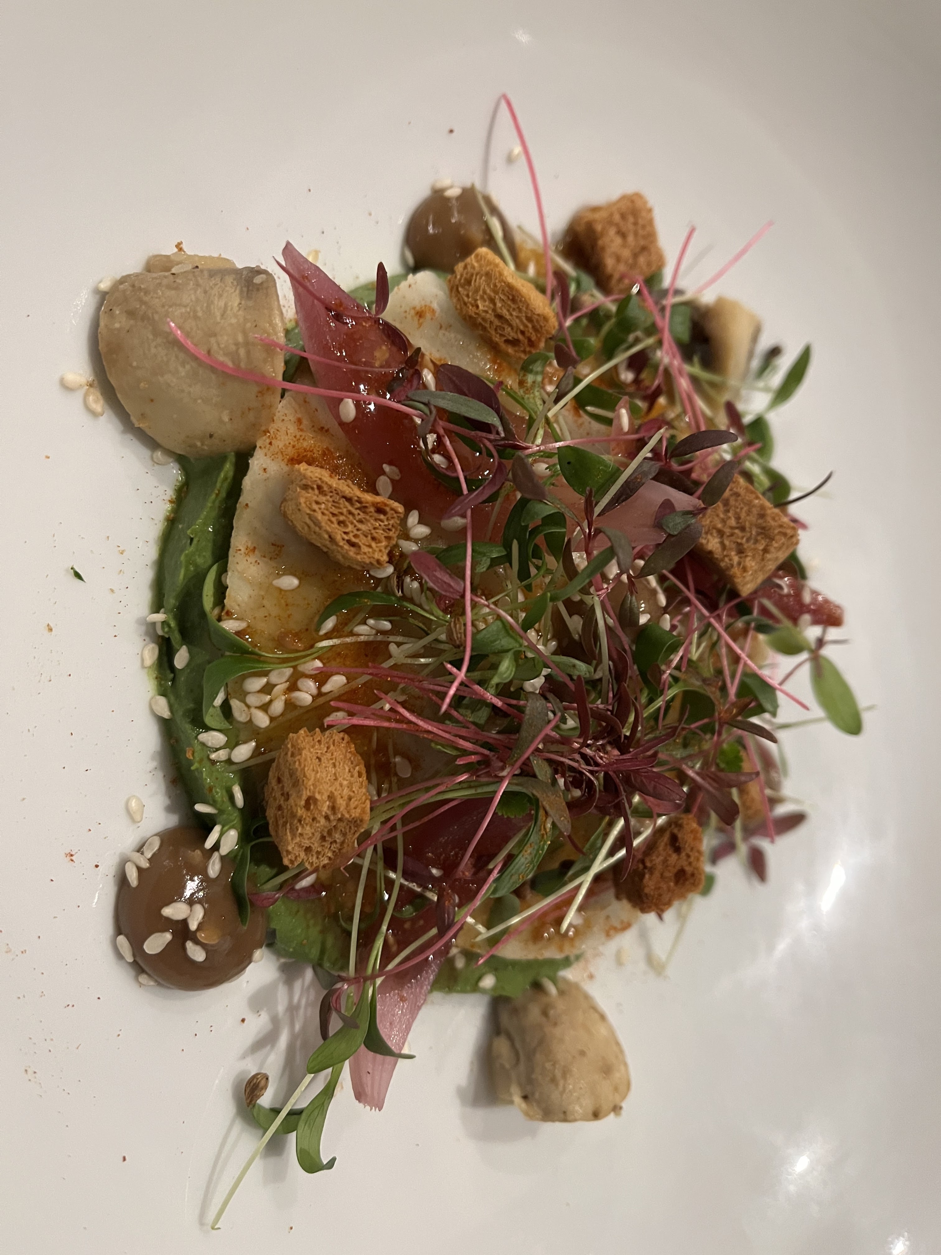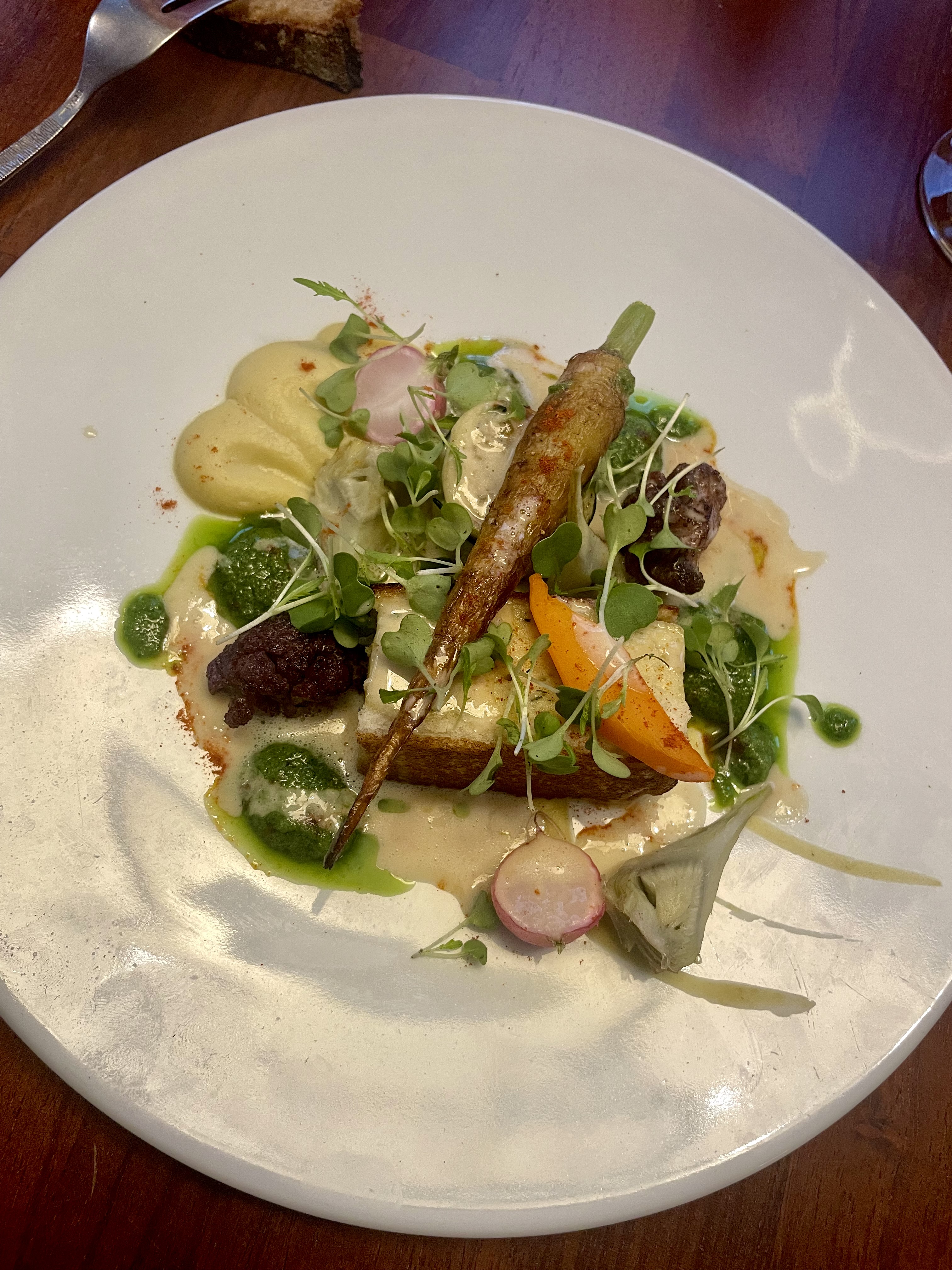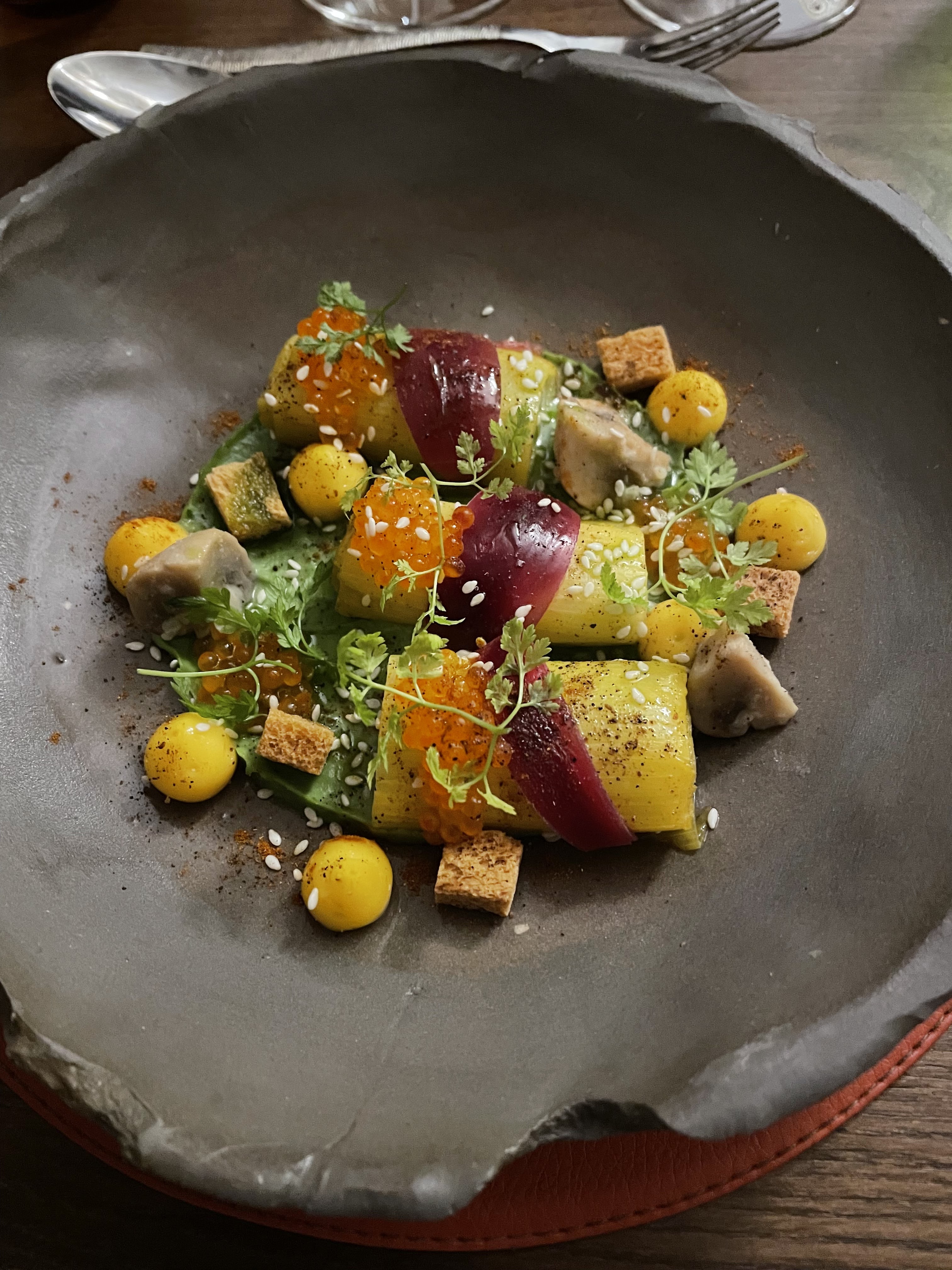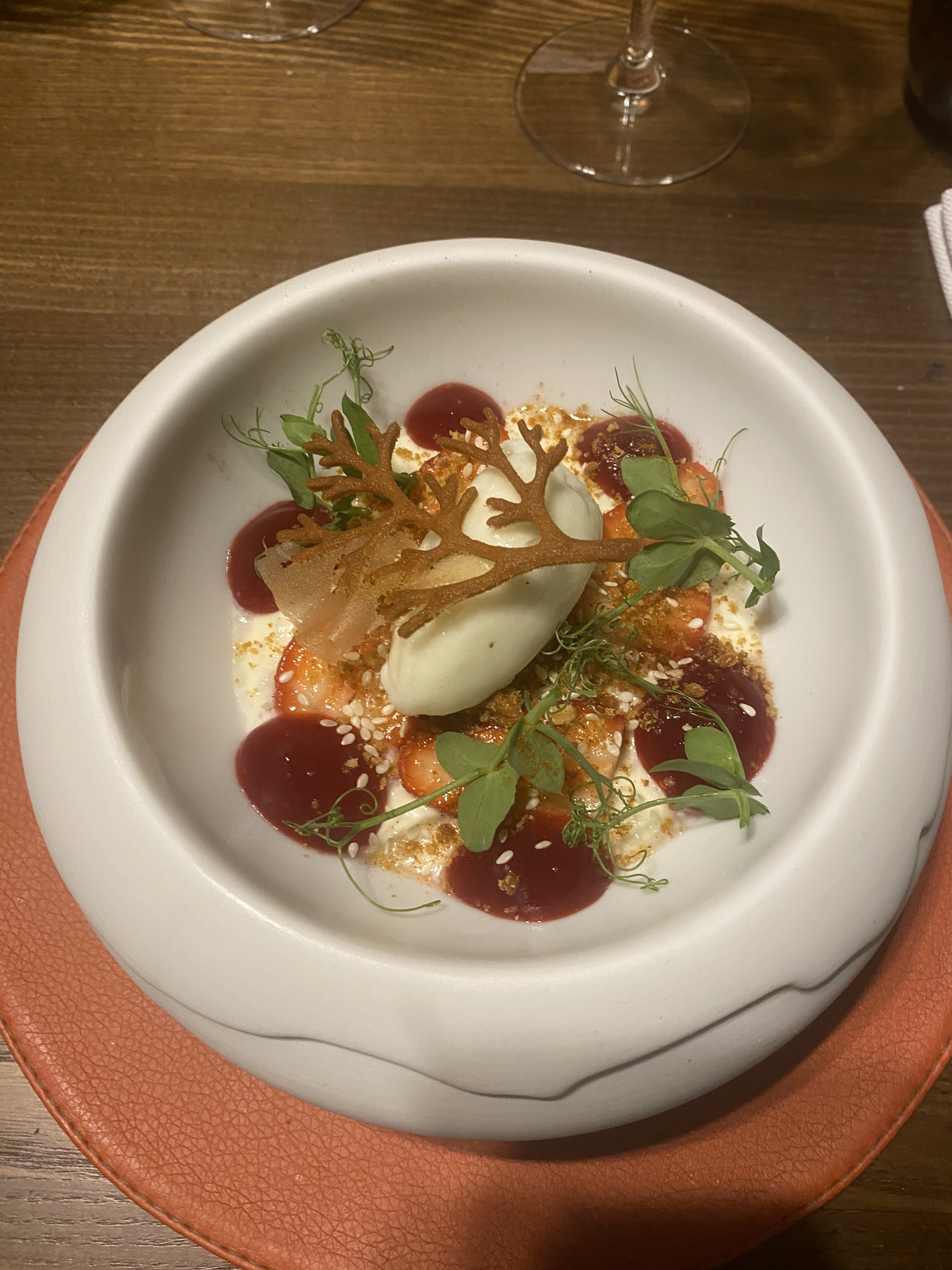 J'ai eu un excellent dîner - j'ai choisi le menu du chef. La nourriture était bien préparée et il y avait des saveurs et des combinaisons intéressantes ! Le service était un peu lent (durée totale ~ 2,5 heures) mais pour une petite place, il faut s'y attendre. J'ai beaucoup aimé le plat de poisson et le dessert.