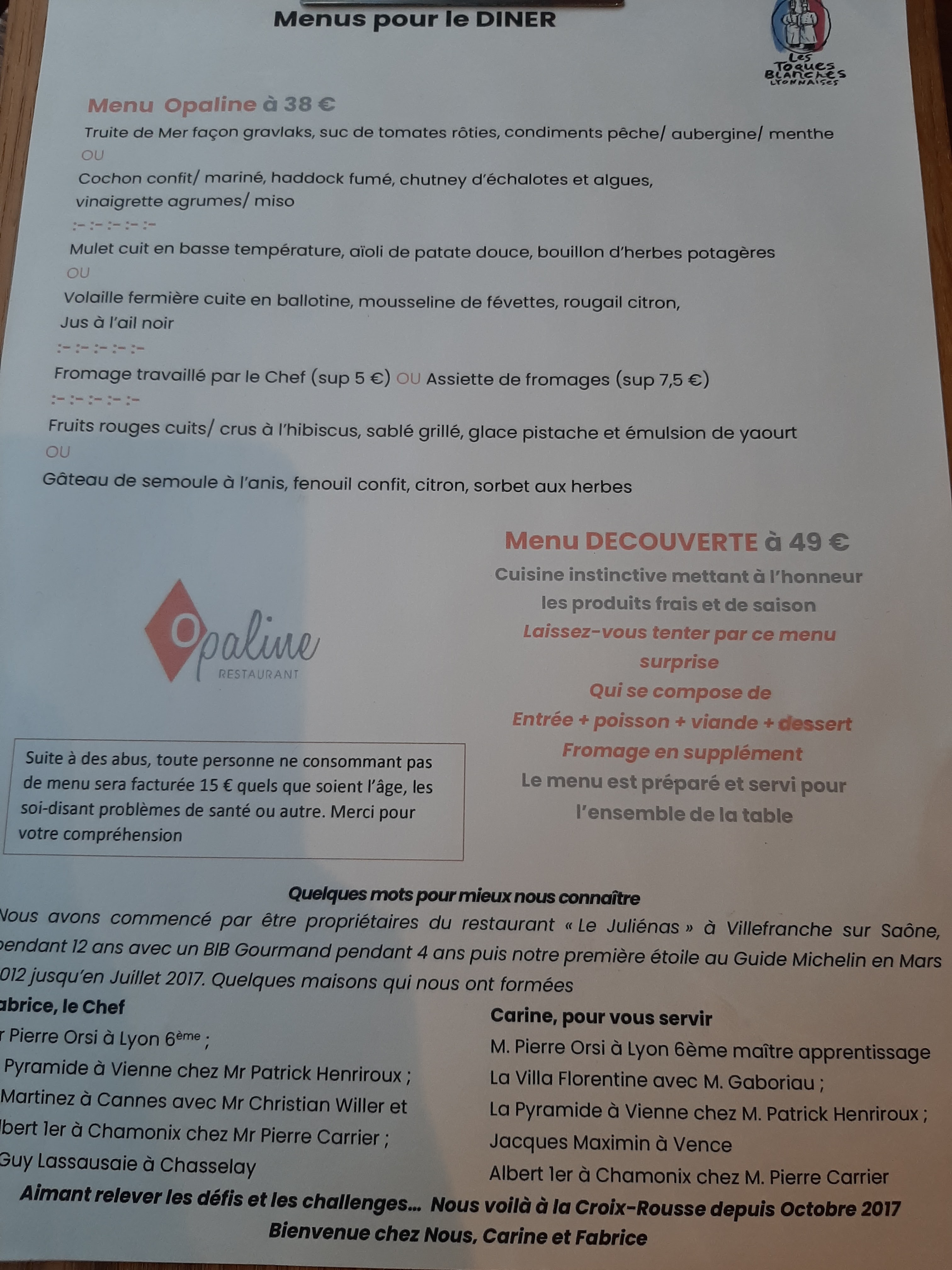 Très bonne soirée au restaurant Opaline. Nous avons pris un menu surprise et nos papilles avons été agréablement bousculées ! Le service est très sympathique et le cadre charmant. Je recommande cet établissement pour un repas sans faute notes :)