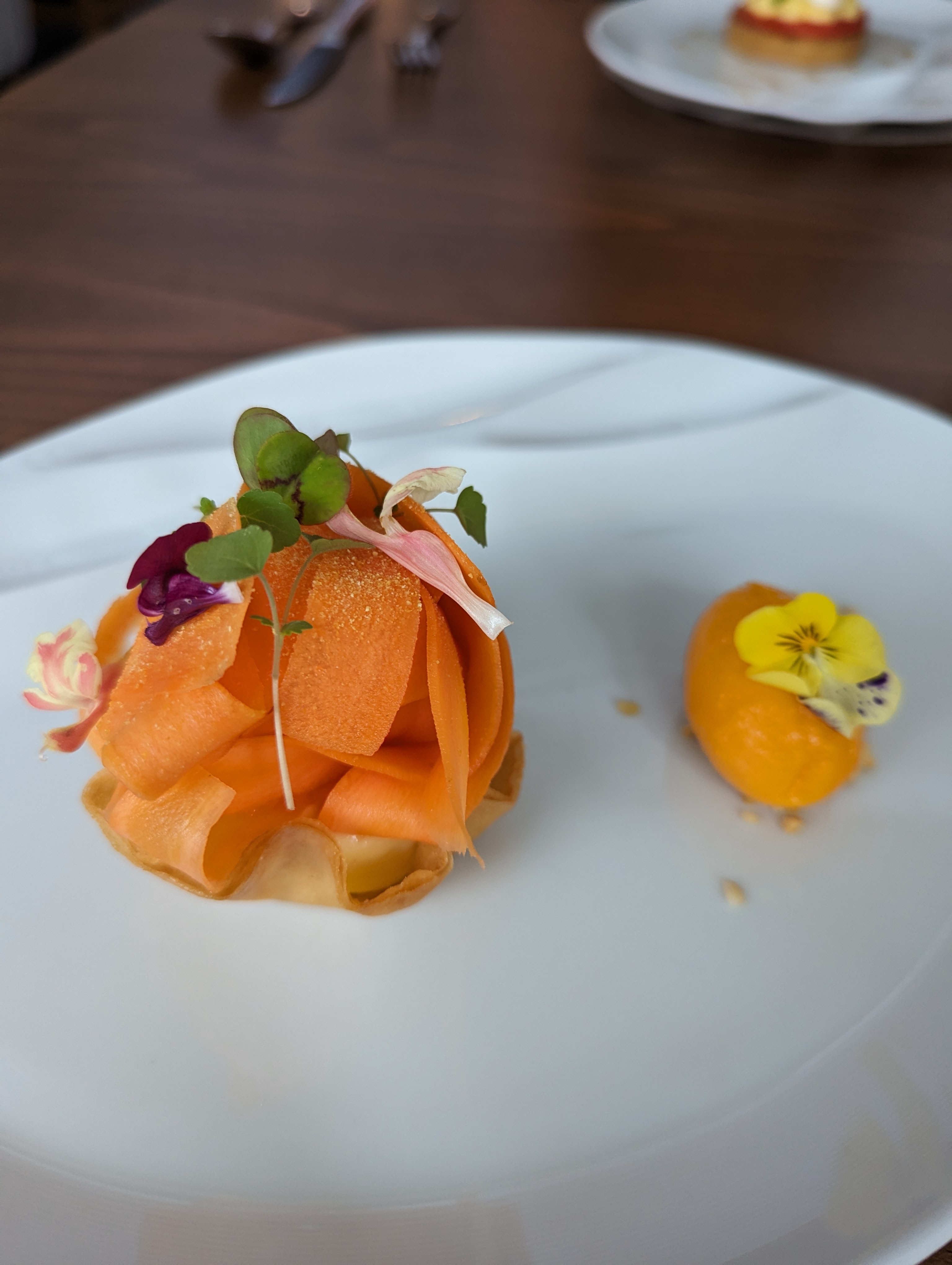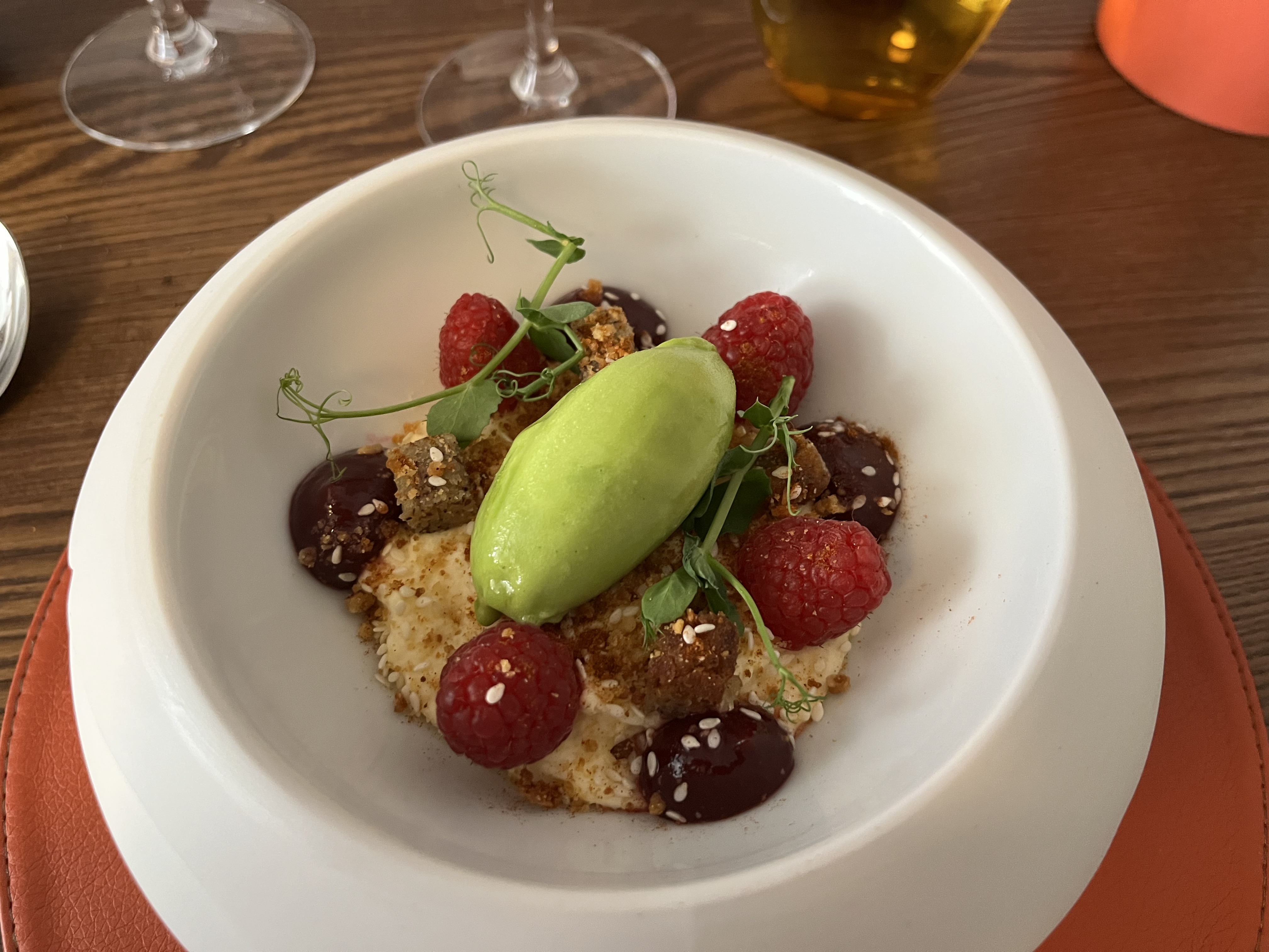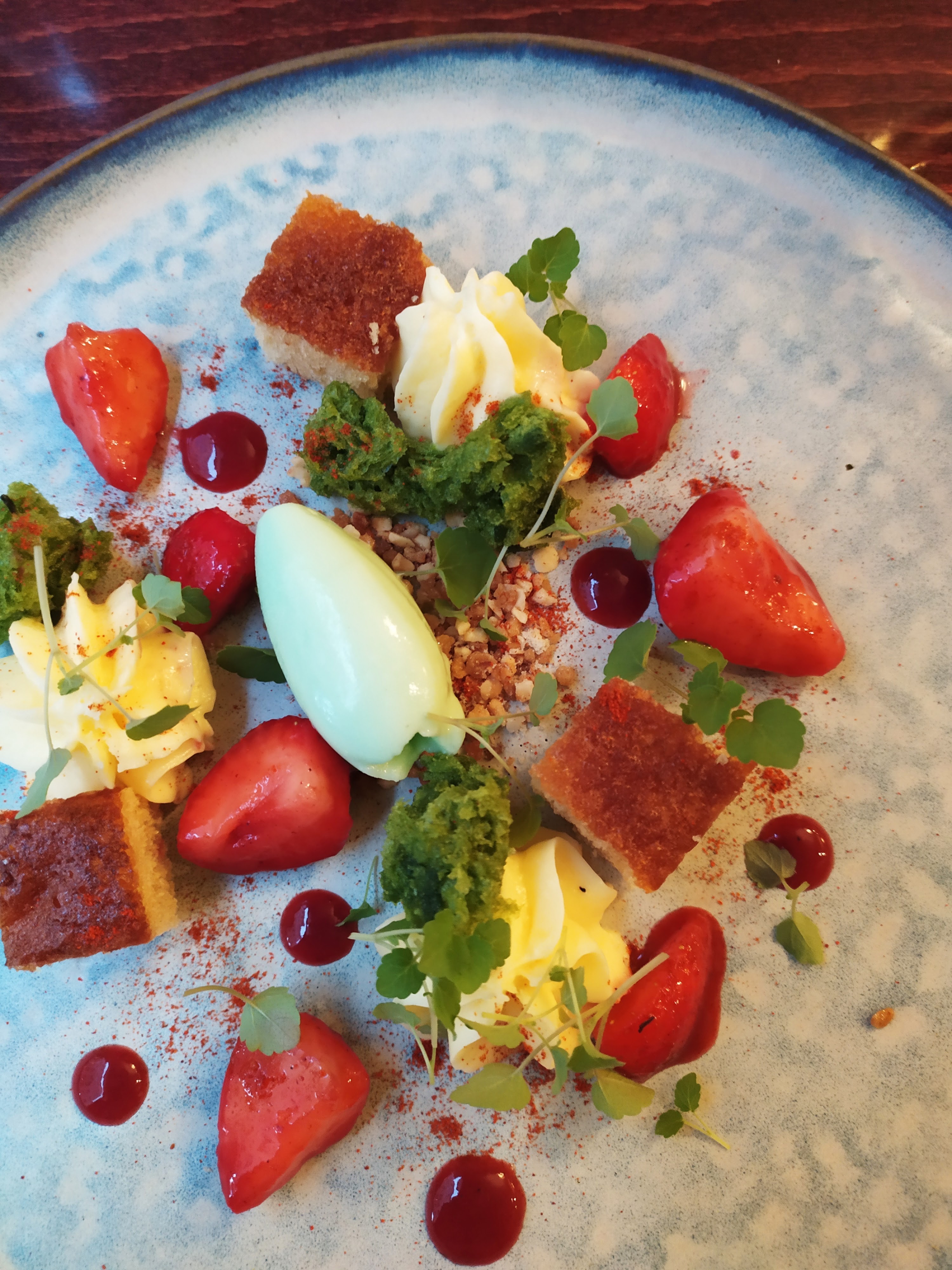 un déjeuner parfait avec le menu surprise de l entrée au dessert des alliances de goût et de textures tout à fait rafraîchissantes et innovantes avec une mention particulière pour le sorbet aux herbes