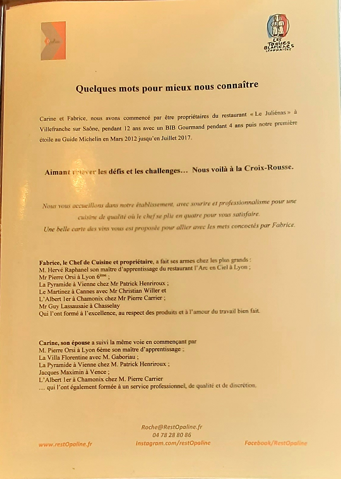 De passage à Lyon nous avons dîné dans ce restaurant , belle découverte gastronomique à l’opaline service et cuisine au top !! Nous reviendrons avec grand plaisir.