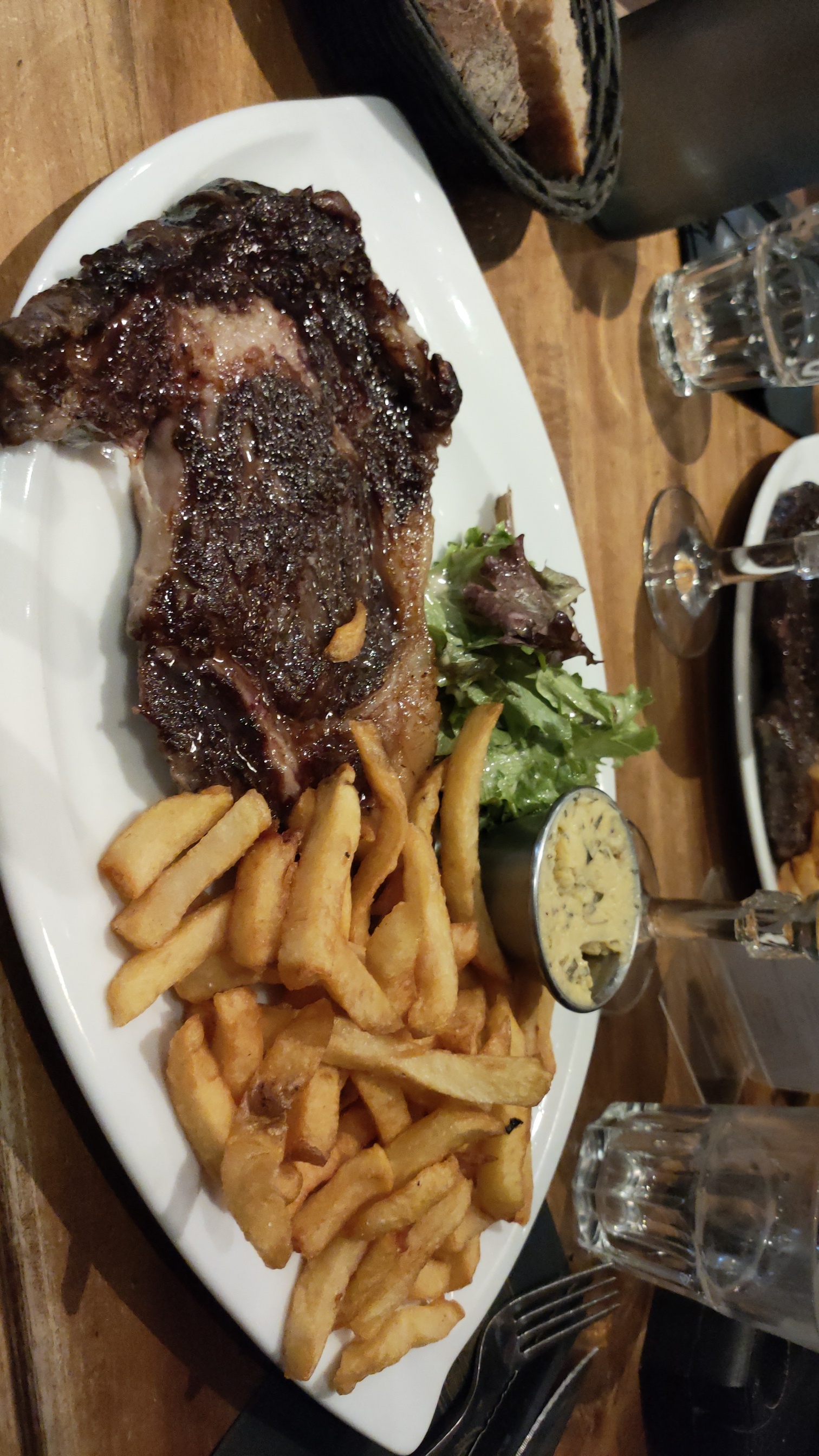 Super restaurant la côte de bœuf excellente et la cuisson parfaite, les sauces sont vraiment bonne et maison tout comme la chantilly pour le dessert. Le serveur (Killian il me semble nous avons demandé son prénom au moment de payer) était super souriant et très pro merci à lui. Je recommande ce restaurant, nous reviendrons avec plaisir