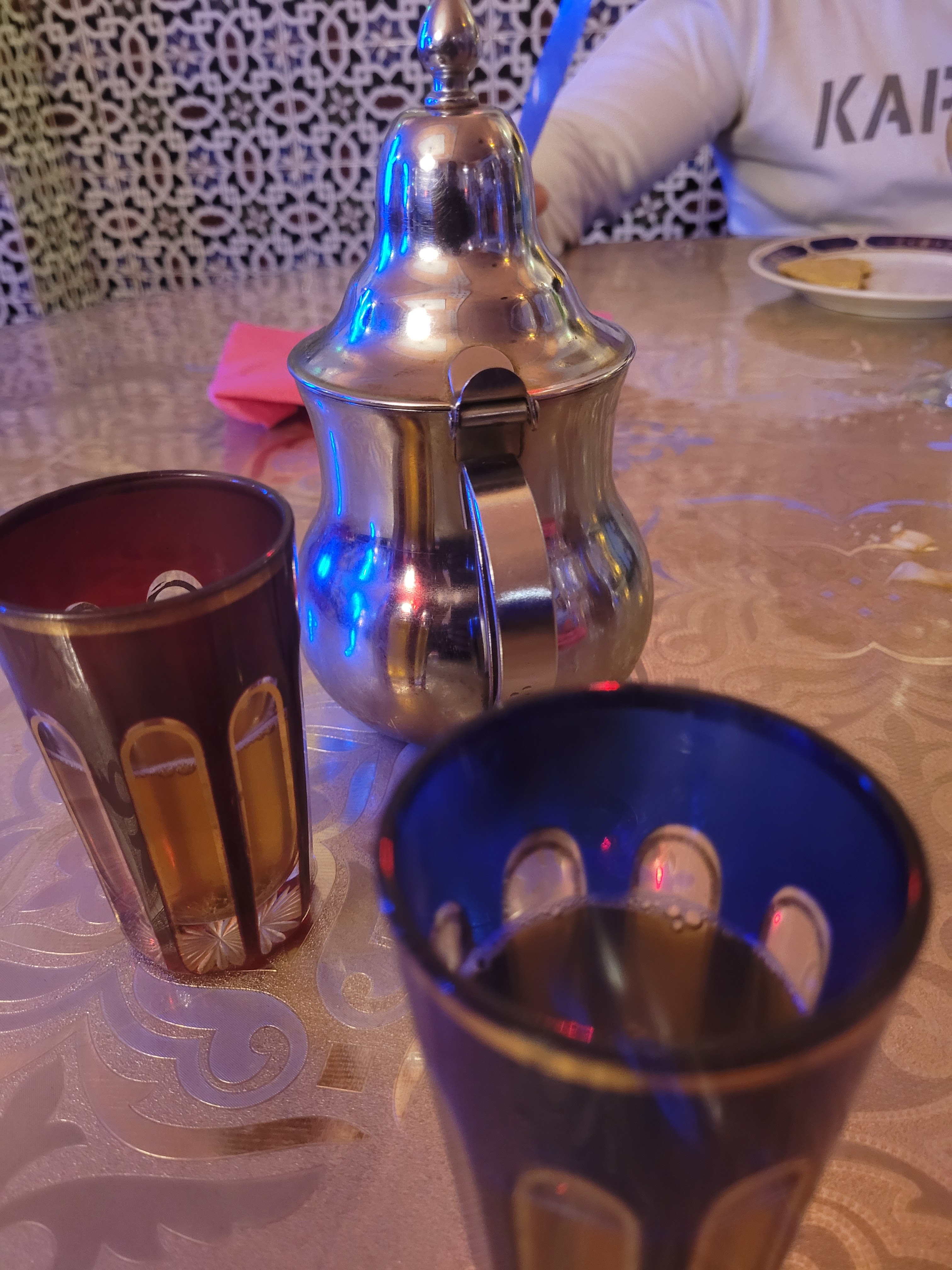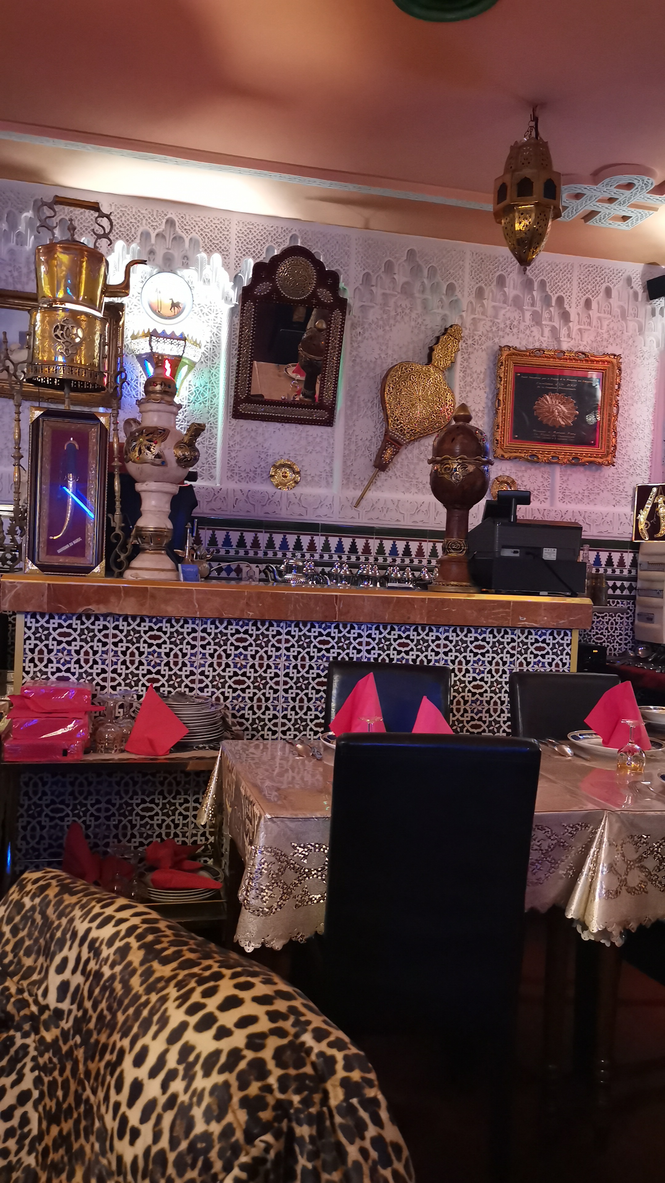 Très grosse surprise au moment de l'addition. 45€ pour 13 petites consommations (verres) de thé à la menthe !! C'EST UN LUXE DE CONSOMMMER LEUR THE! L'alcool n'est pas autorisé donc il se rattrape grassement sur leur thé. Soyez très vigilant.