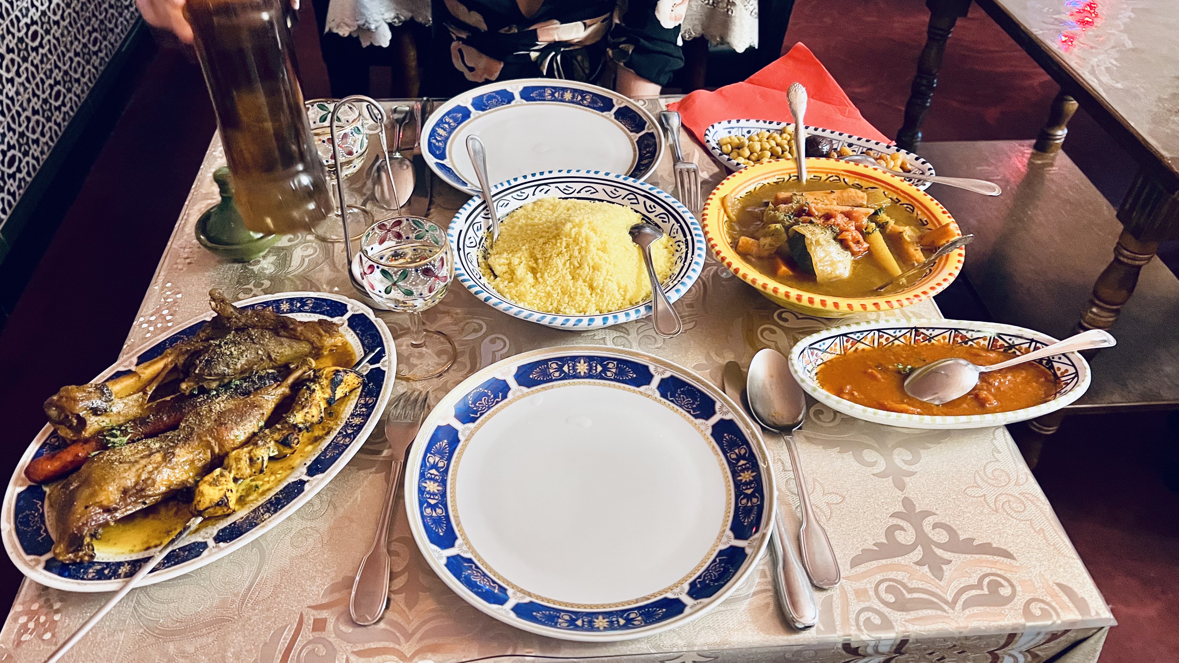 Ce restaurant mérite son titre de gastronomie marocaine ! Une semoule extra fine un agneau extra tendre des légumes extra goûteux et une serveuse extra sympa. Que demander de plus ? Pain maison et thé à la menthe excellent ;)