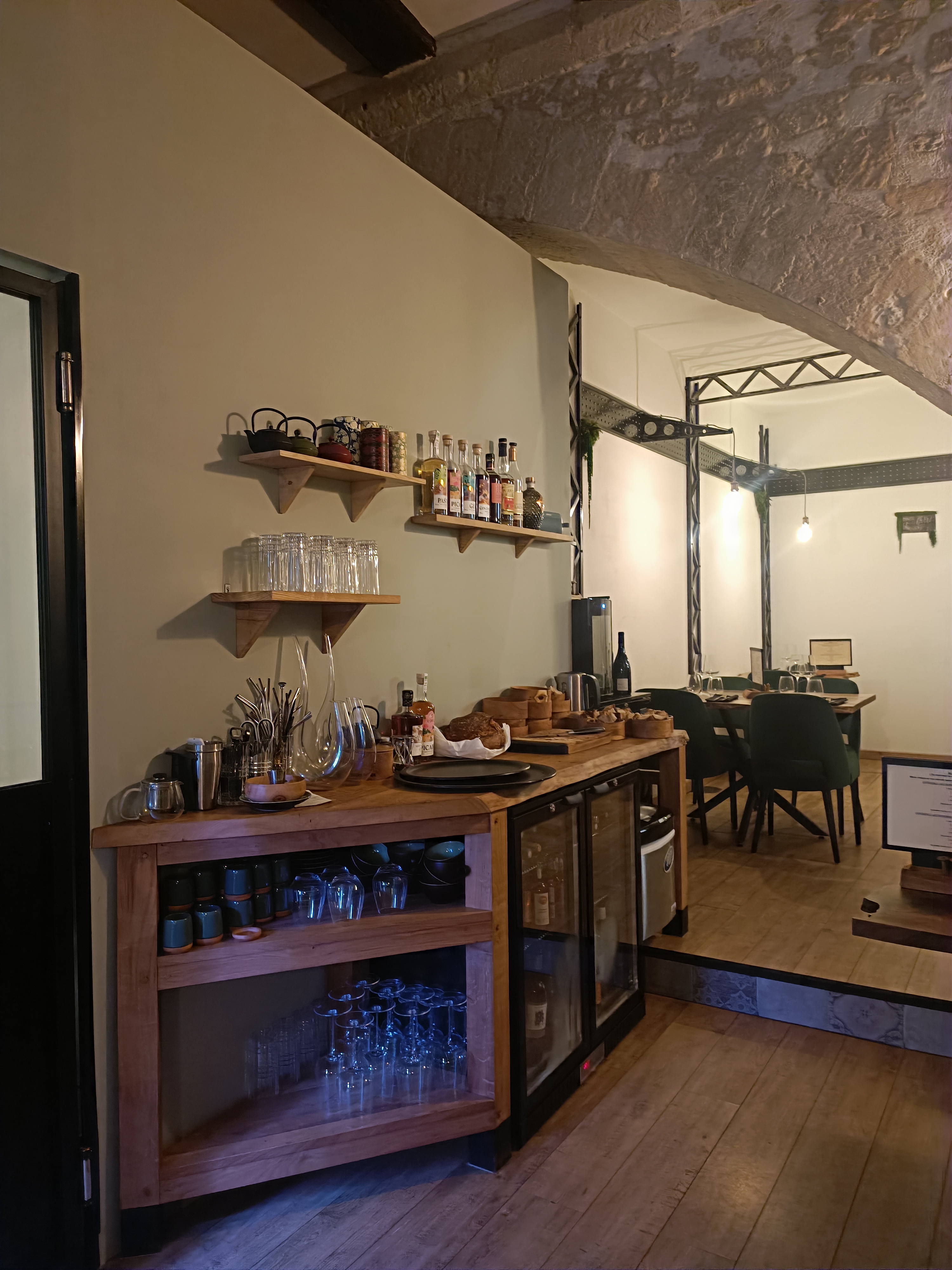 Le cadre est très agréable. Les murs en pierres une verrière permettant de voir le chef à l’œuvre la table en noyer et la serveuse adorable tout concourt à passer un bon moment. Le menu semble original et quand les plats arrivent on est aux anges. Nous avons mangé dans des restaurants gastronomiques moins bons pour beaucoup plus cher. Une adresse qui mérite le détour.