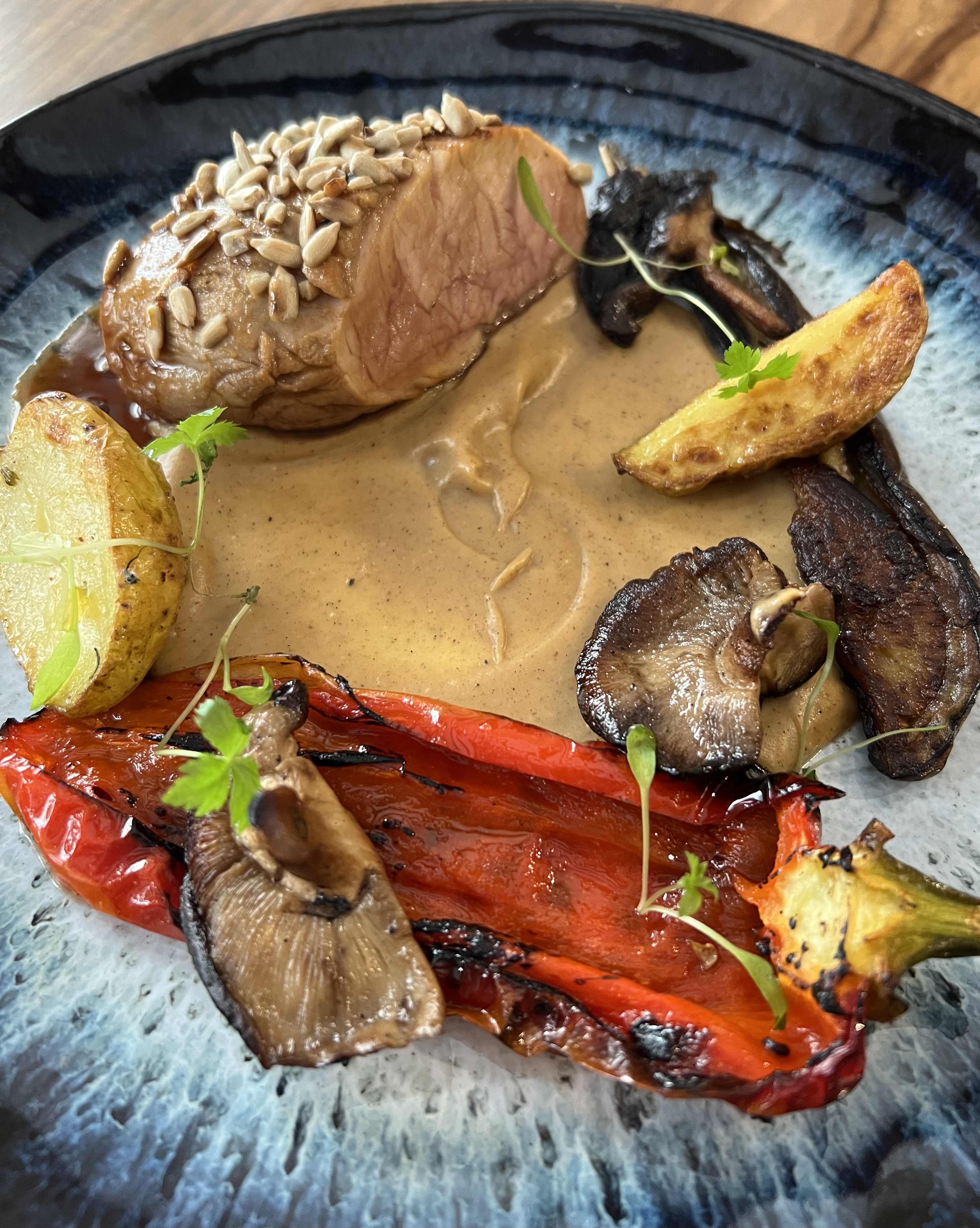 Très bon resto. Malheureusement, il n'y a pas de sièges à l'extérieur, mais à l'intérieur, vous pouvez vous asseoir avec style dans la voûte en pierre et rester suffisamment au frais. J'ai trouvé que la nourriture était très bonne car on pouvait dire que le chef a ses propres idées et planifie vraiment les plats puis les prépare de manière artisanale, j'appelle toujours cela de la nourriture planifiée et cuisinée. Contrairement aux plats préparés rapidement sans trop de préparation.