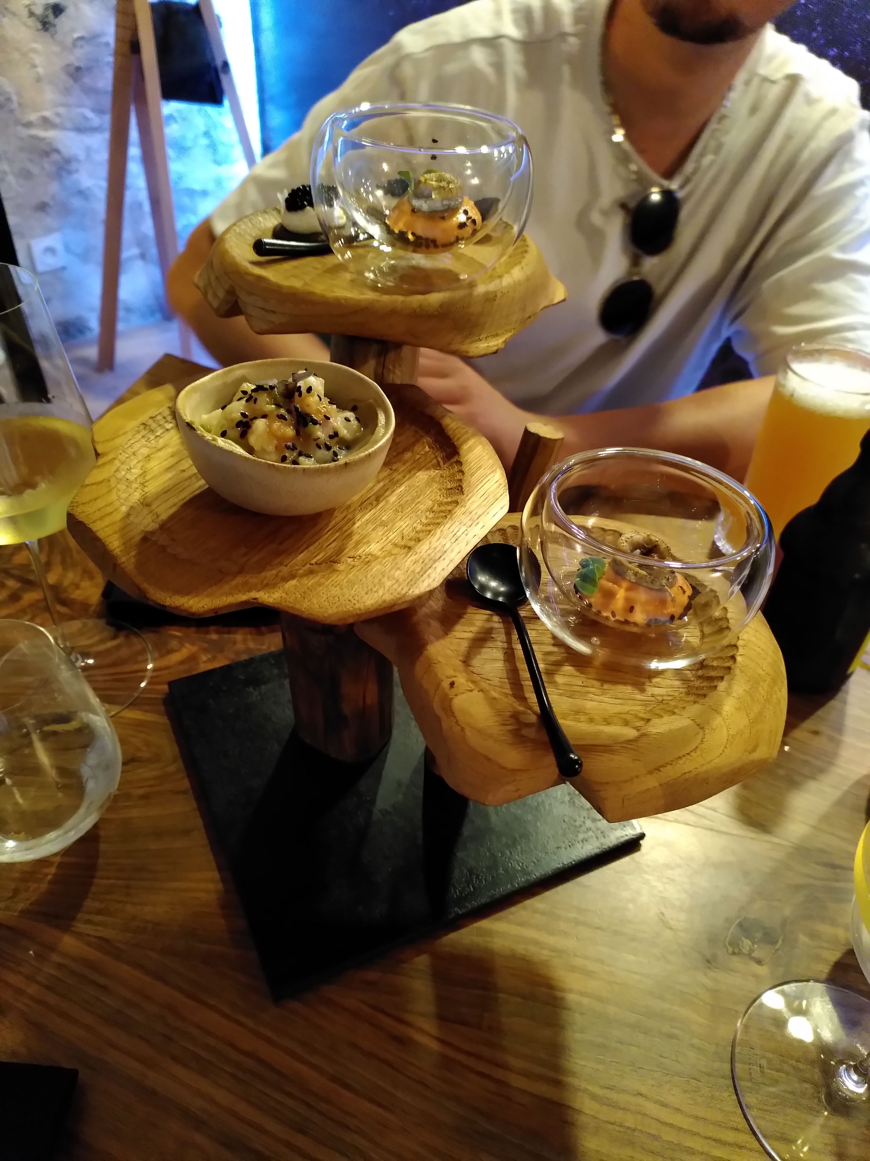 Nous avons pris le menu gastronomique donc sans savoir ce que nous allions manger et honnêtement ce fut un régal Beaucoup d’associations osées qui au final vont très bien entre elles