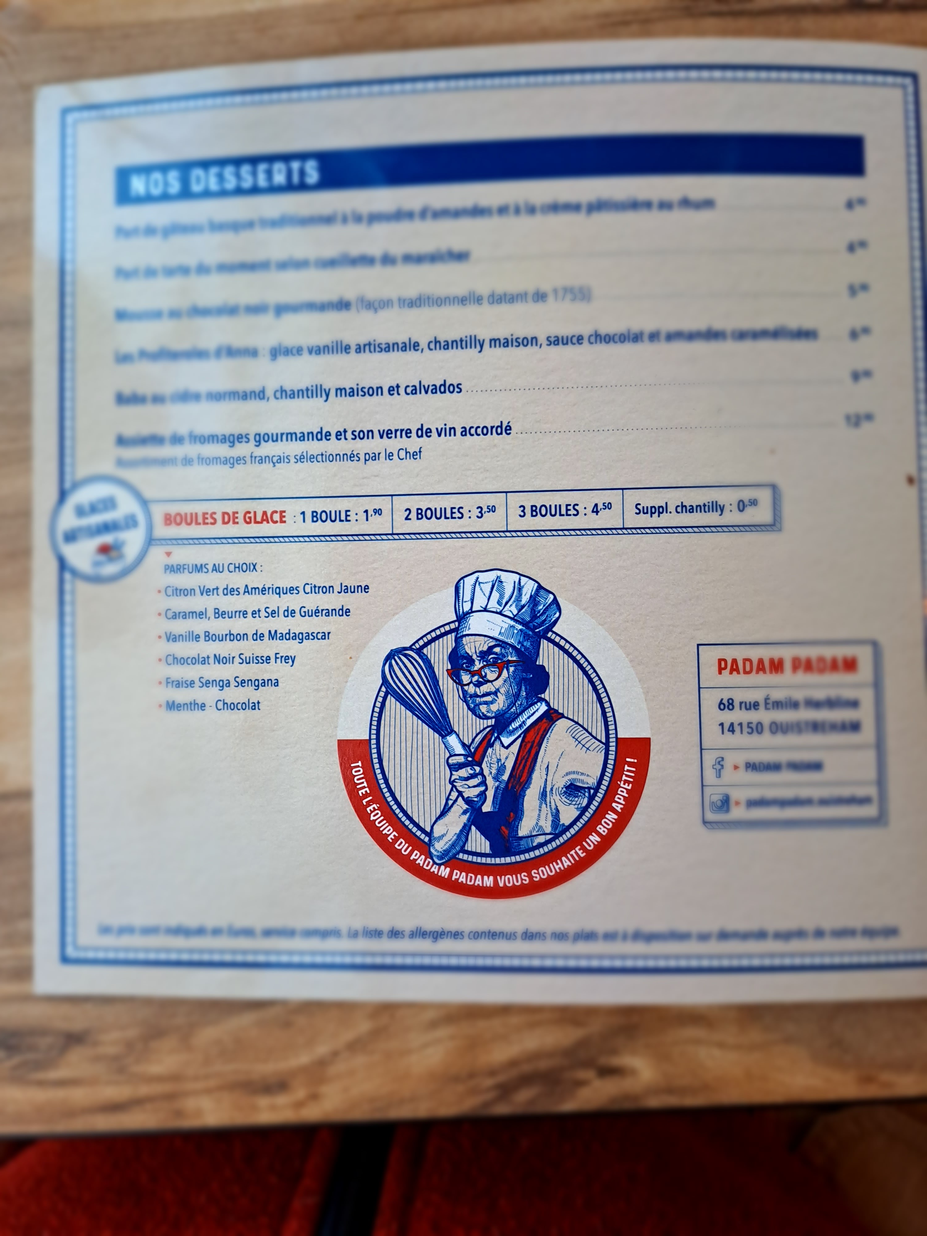 Je viens de passer un délicieux moment pour la Fête des Mères, on se restaurant, j’ai mangé une cuisine du terroir de mon enfance. C’était très bon très fin et joliment présenté.. la déco est raffinée est très originale. L’équipe du service a beaucoup d’humour, de gentillesse et pourtant il y avait beaucoup de monde aujourd’hui. Les prix sont plus que correct ont un mot, tout était très bien. J’y reviendrai très vite. J’ai passé un délicieux moment. Merci à mes compagnons de table et merci à toute l’équipe du Padam Padam