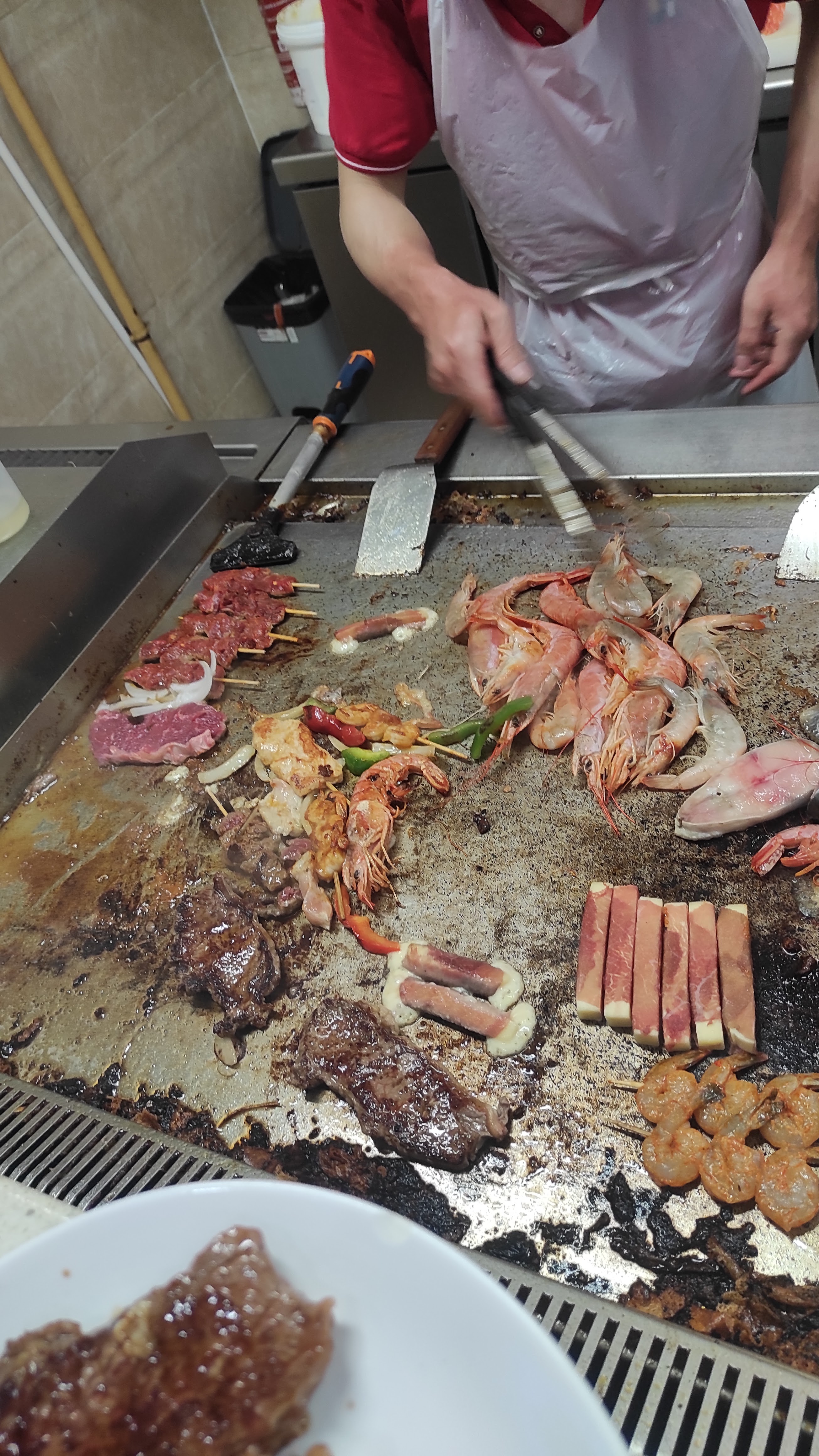 Plusieurs choix de nourritures, avec une qualité comme dans les buffets à volonté (souvent surgelés), de plus beaucoup de bruits dans la salle, MAIS SURTOUT des serveurs qui ne se préoccupent pas de vous , vous etes juste de l’argent ... j’ai été 2 fois et la 3e fois a été celle de trop où la serveuse nous a mal parlé juste parce qu’on lui a demandé si c’etait possible d’utilisé une table avec le grill. Donc on est reparti directement.
