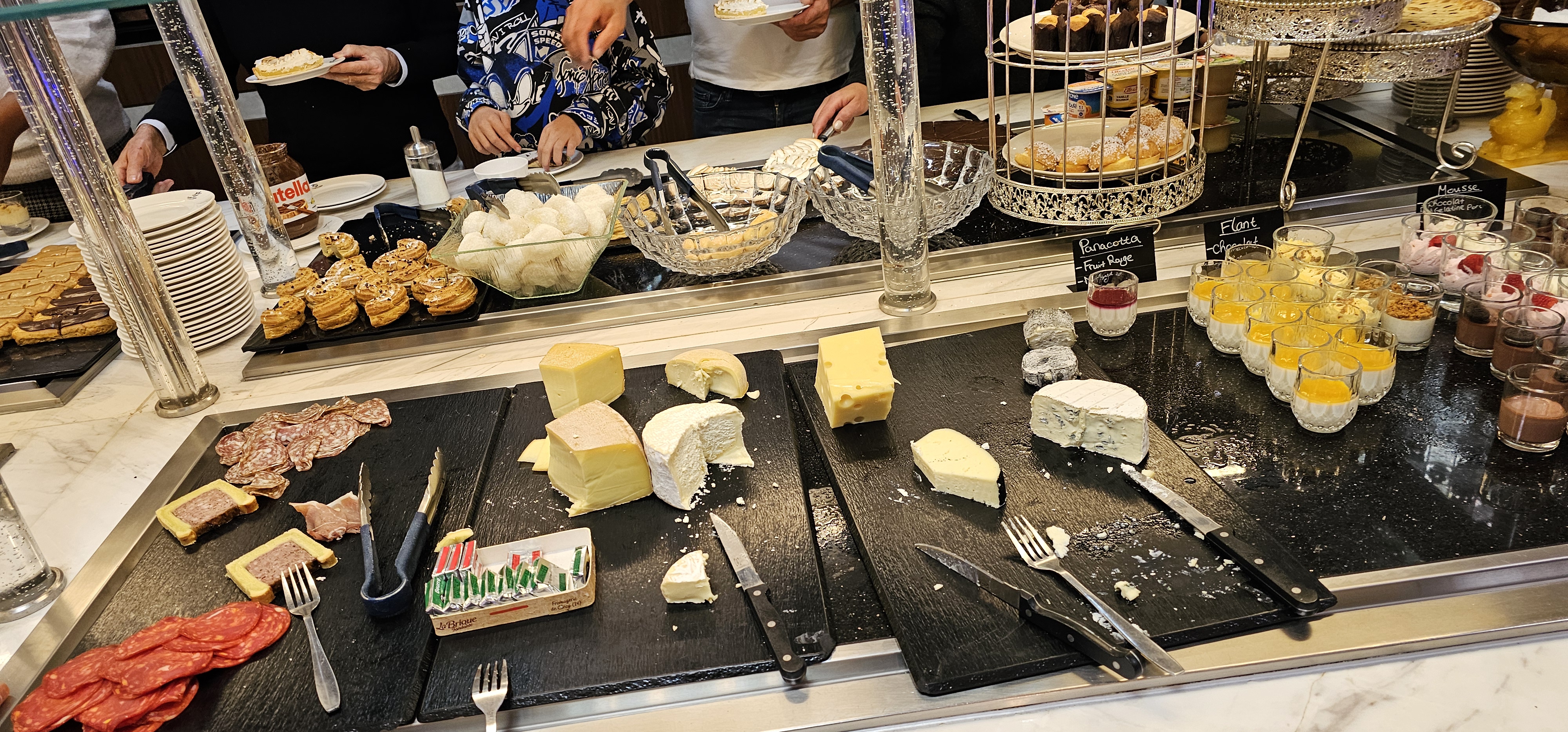 Beaucoup de choix, bien organisé, c'est la première fois que je vois qu'il y a des choix pour le bon fromage !! Le pain est de bon qualité, Très bien pensé pour éviter le gaspillage, éclair, 3 parfums, St Honoré... coupé en deux, même il y a des différents sortes de bonbons pour récompense si les enfants ont bien mangé 😁😁 Je vous conseille de faire un tour si vous cherchez un buffet à volonté, prix très intéressant, attention tarifs différents le soir