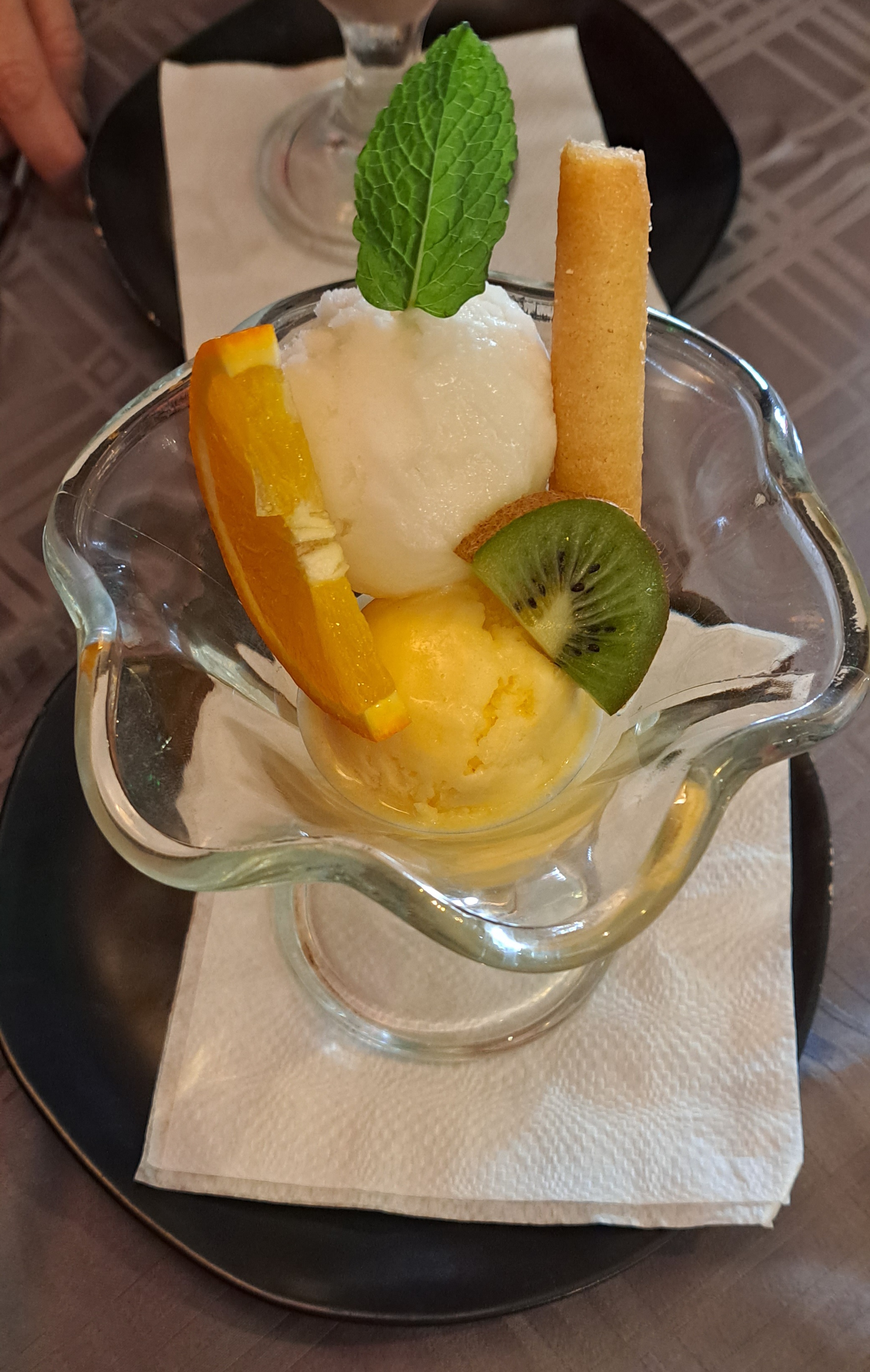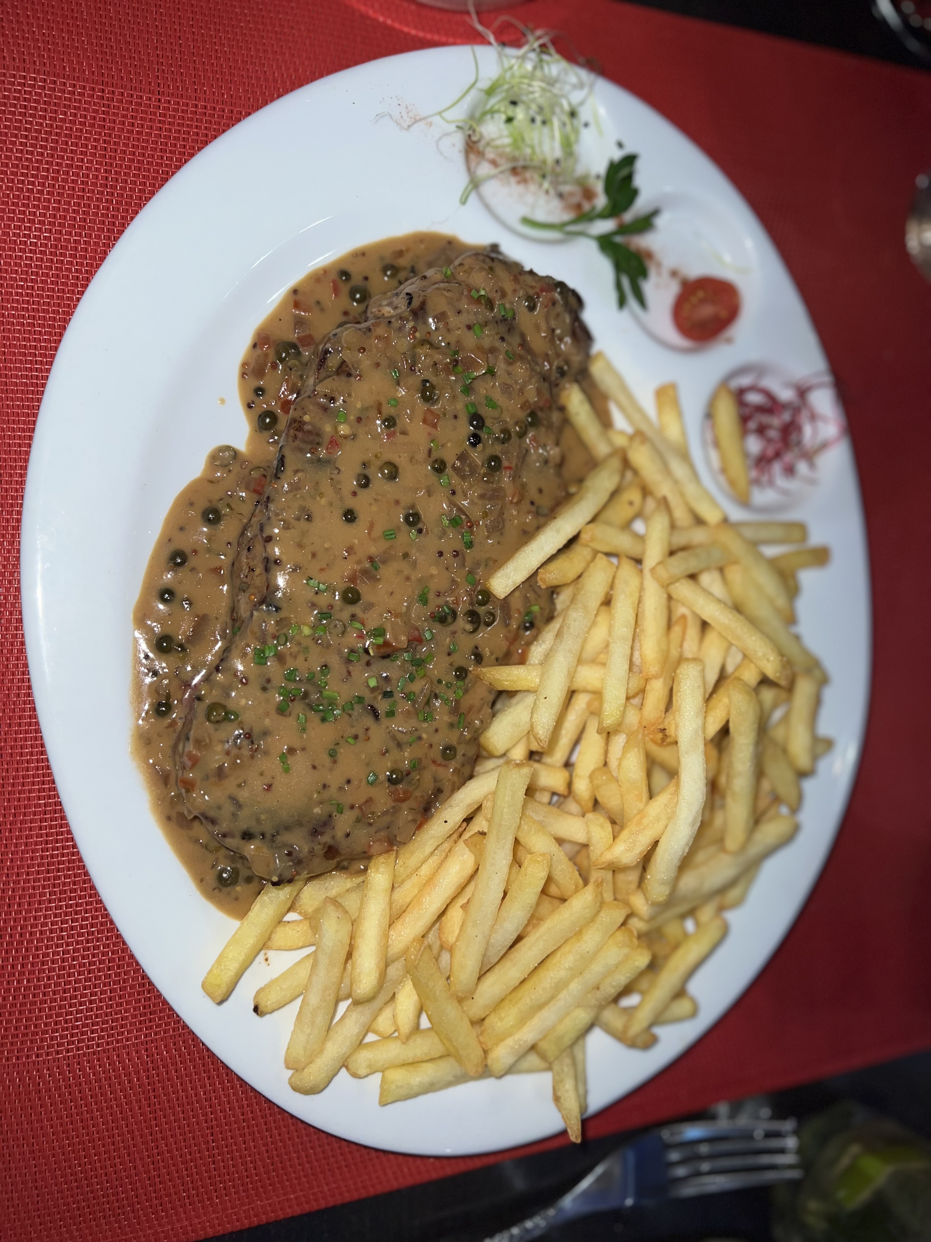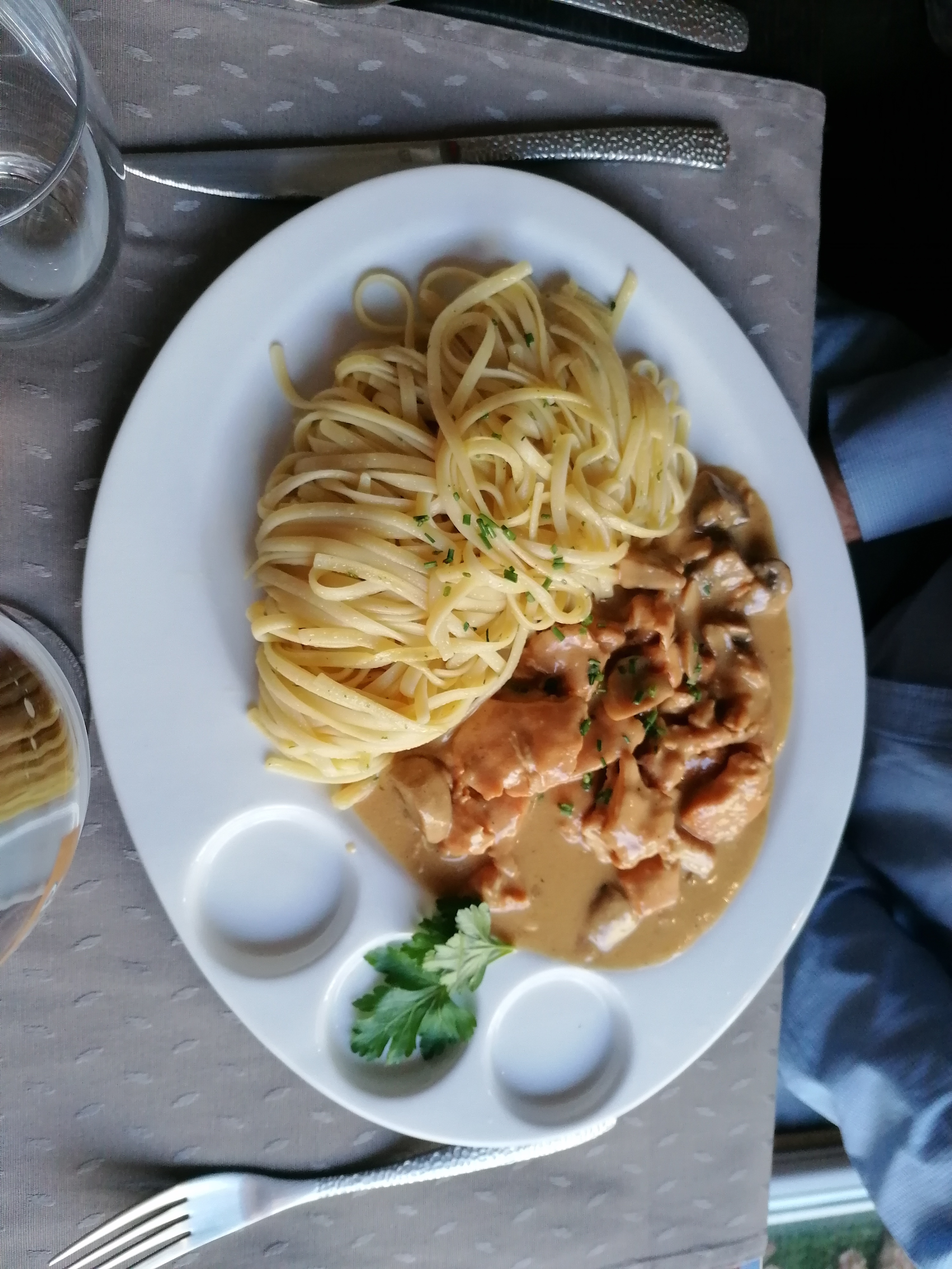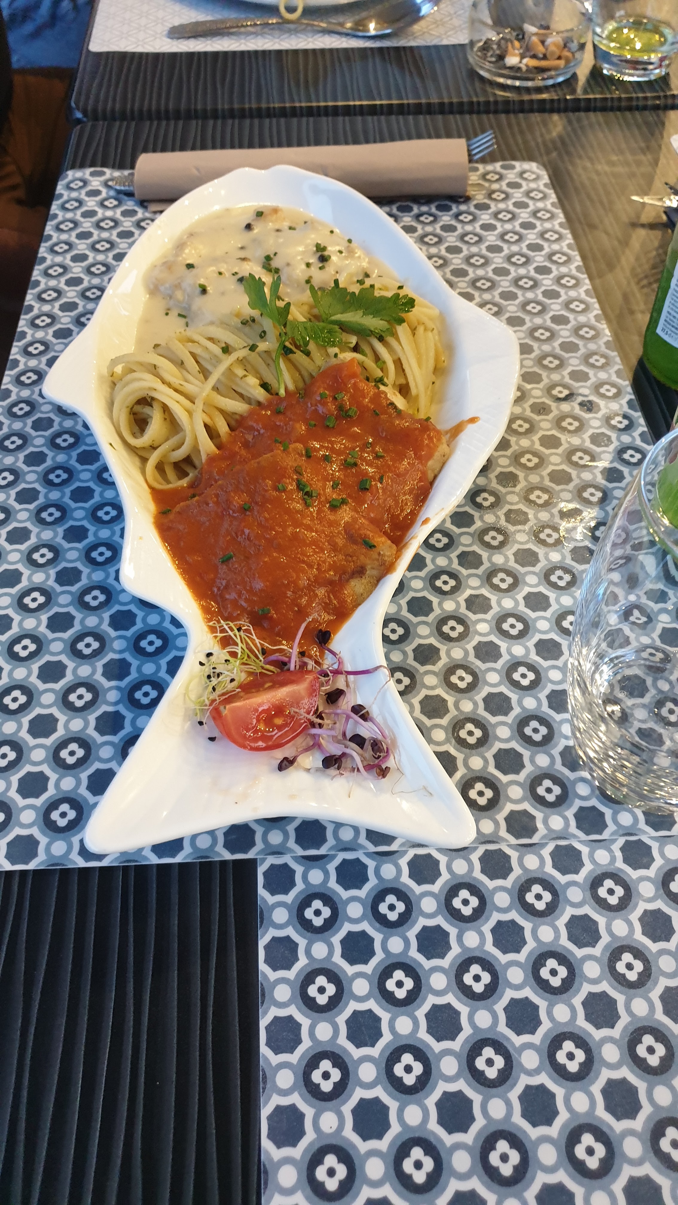 Super restaurant, les plats sont copieux et très bon pour ma part j’ai pris les raviolis au saumon à la bisque de langoustine ils étaient terriblement bon , accueil impeccable service impeccable cuisine impeccable personnel impeccable,je recommande, et merci pour le petit digestif offert en fin de repas .