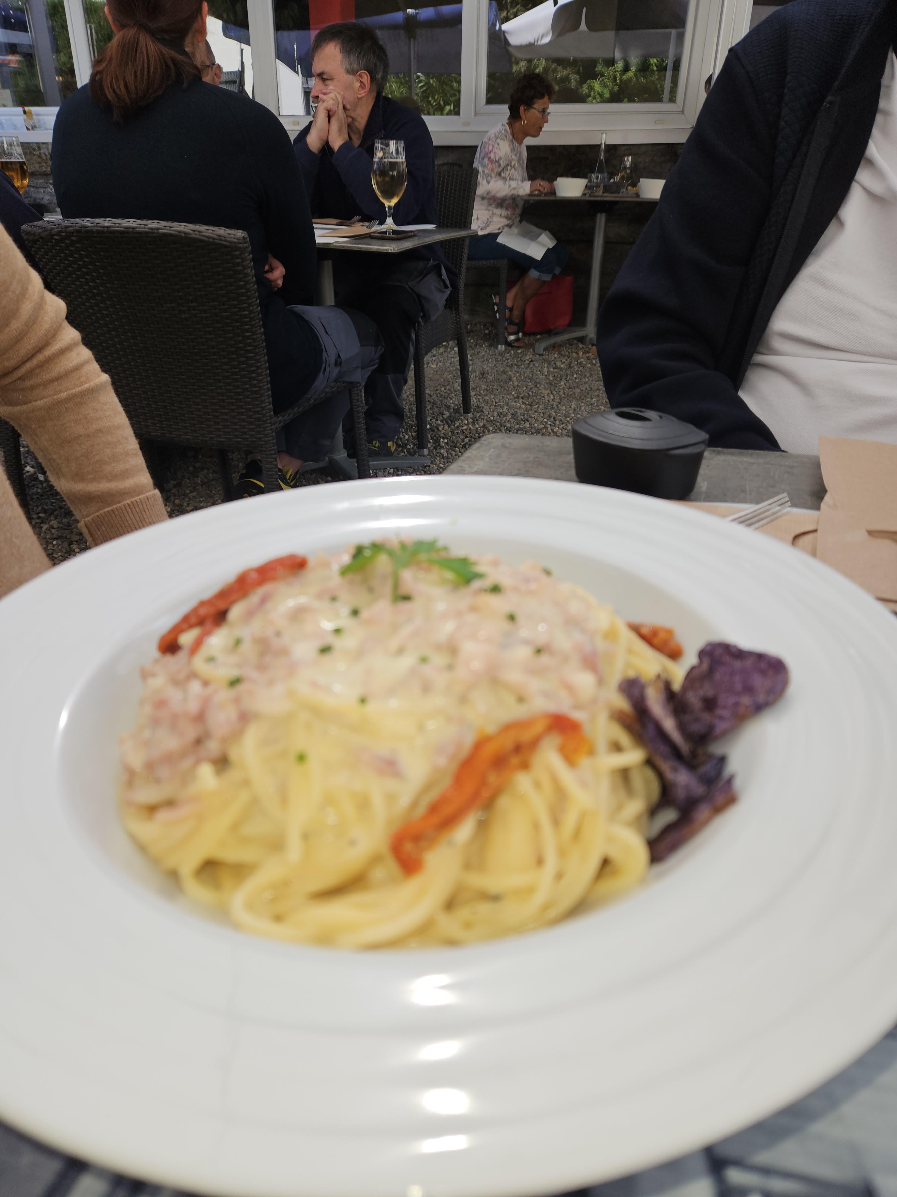 faute de ferme auberge fermée nous cherchions de quoi nous restaurer, Arrivé a 13h 20 sans reservation de plus avec un chien pas de problème pour nous installer et nous servir. Au choix pizzas (excellente) ou cuisine italienne élaborée pour ma part des raviolis aux asperges et a l'ail de montagné avec un sauce crémée un régal. les desserts sont délicieux aussi ce qui ne gate rien.