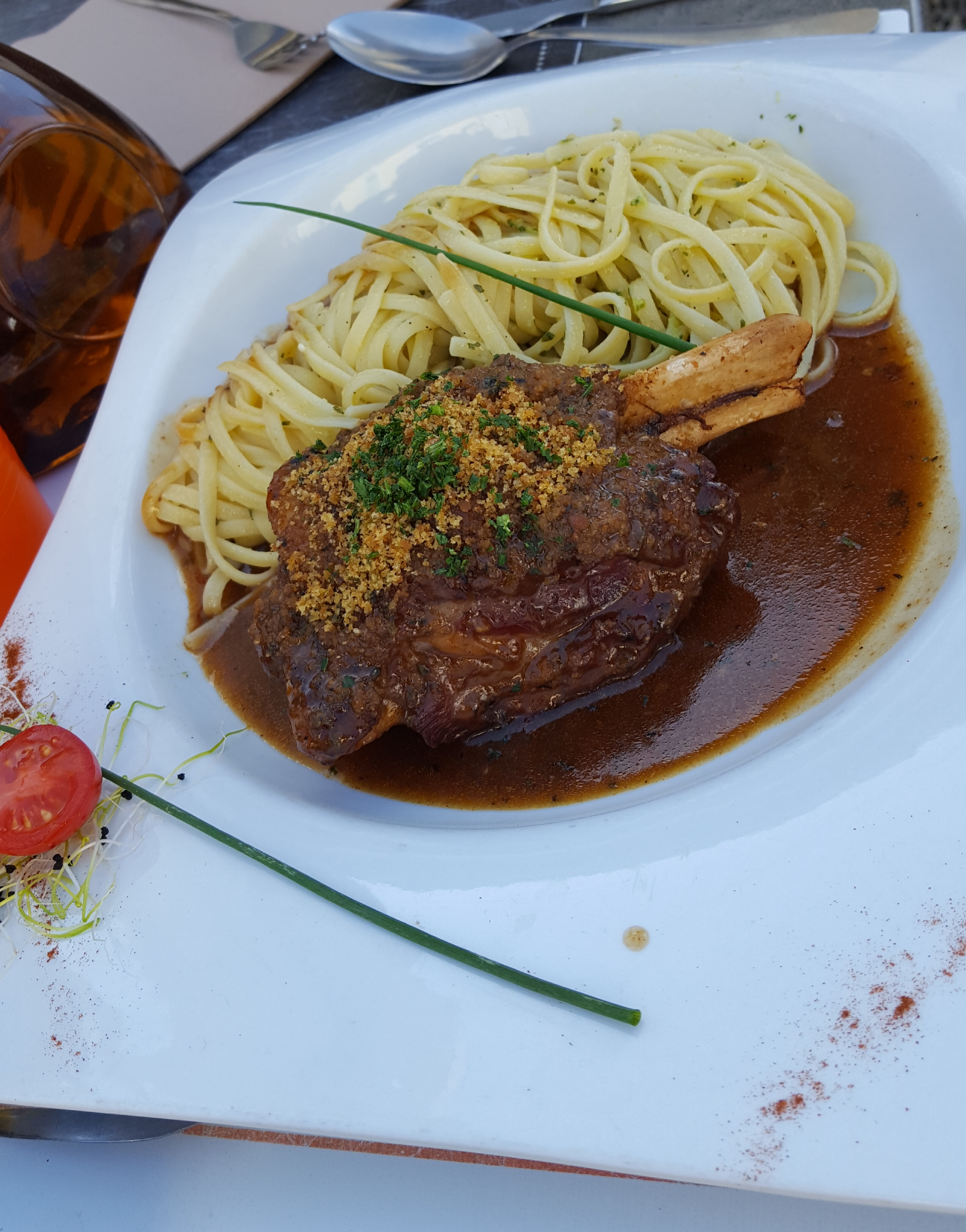 Nous nous sommes régalés. Nous avons pris un jarret par personne . Ils étaient très copieux. La qualité était au rendez vous. Le service est au rendez vous. Vous pouvez foncer les yeux fermés
