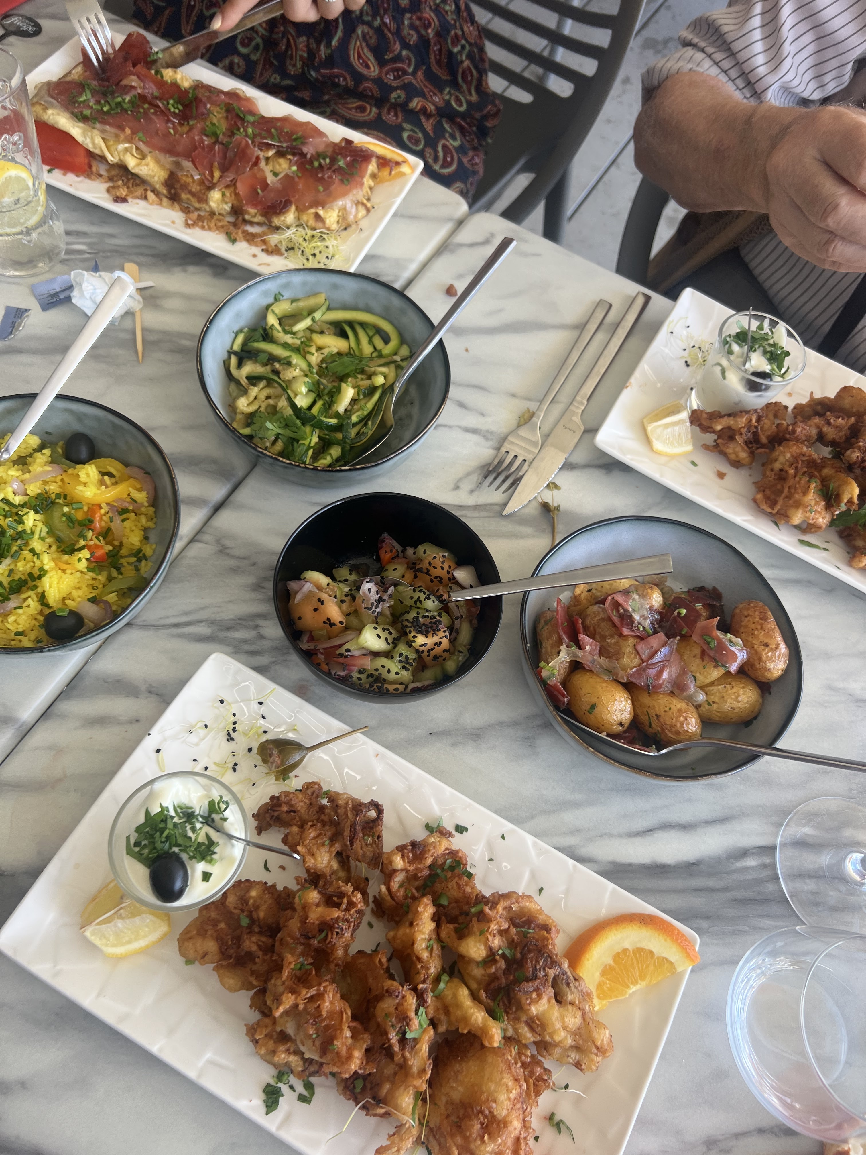Nous avons connu ce restaurant en y allant mangé une glace et elle été tellement excellente que nous avons voulu tenter le repas et ce fut un agréable moment, les tapas en entrée très bon, le poisson excellent et frais et plusieurs accompagnement surprise tout aussi délicieux. La sangria maison au top 👌 Je recommande vivement