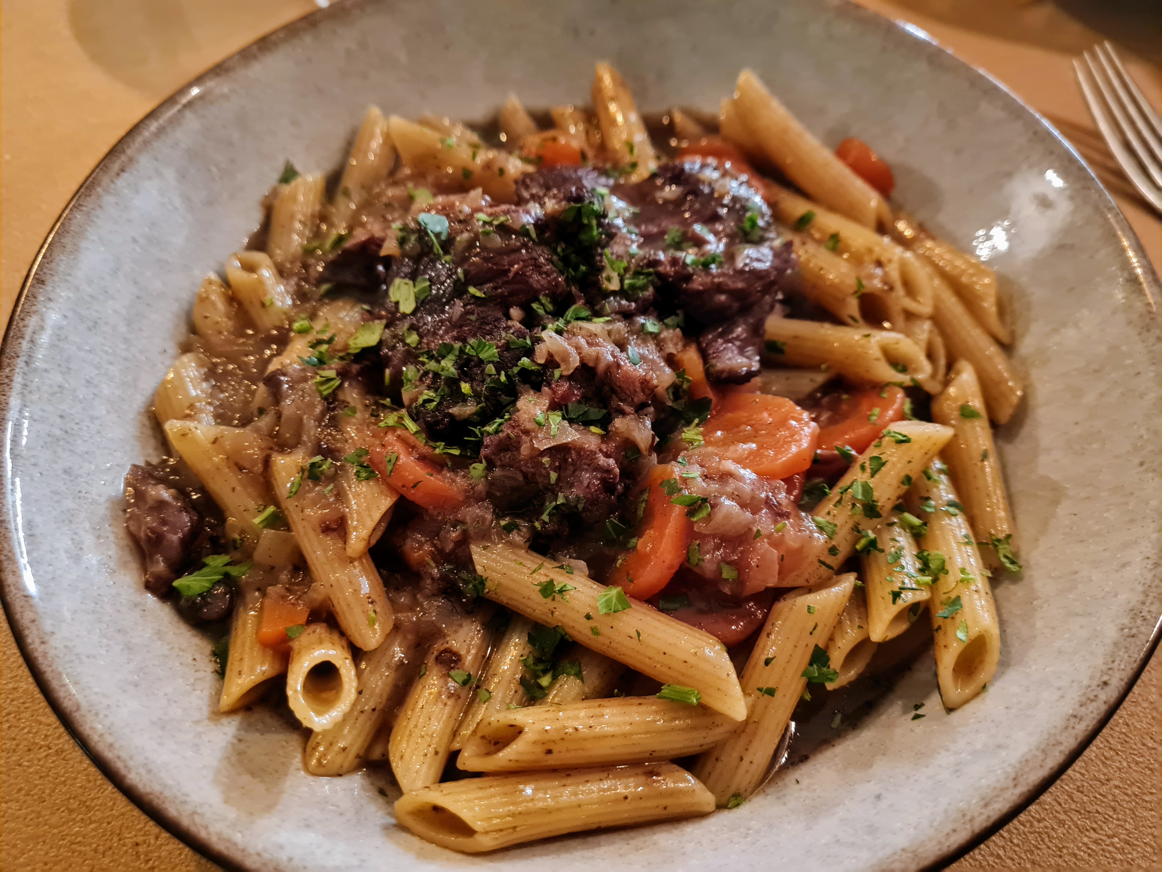 J'ai choisi le menu entrée + plat + dessert. Très très bon. Après l'entrée je me suis dit que j'avais eu les yeux plus gros que le ventre, mais le plat était parfait, suffisant en quantité pour ne pas être écœuré, presque un goût de trop peu, c'est malheureusement le cas quand c'est trop bon. Ma viande était cuite comme demandée, tendre et à point. L'accompagnement une très bonne surprise. Je recommande une petite visite dans ce resto !