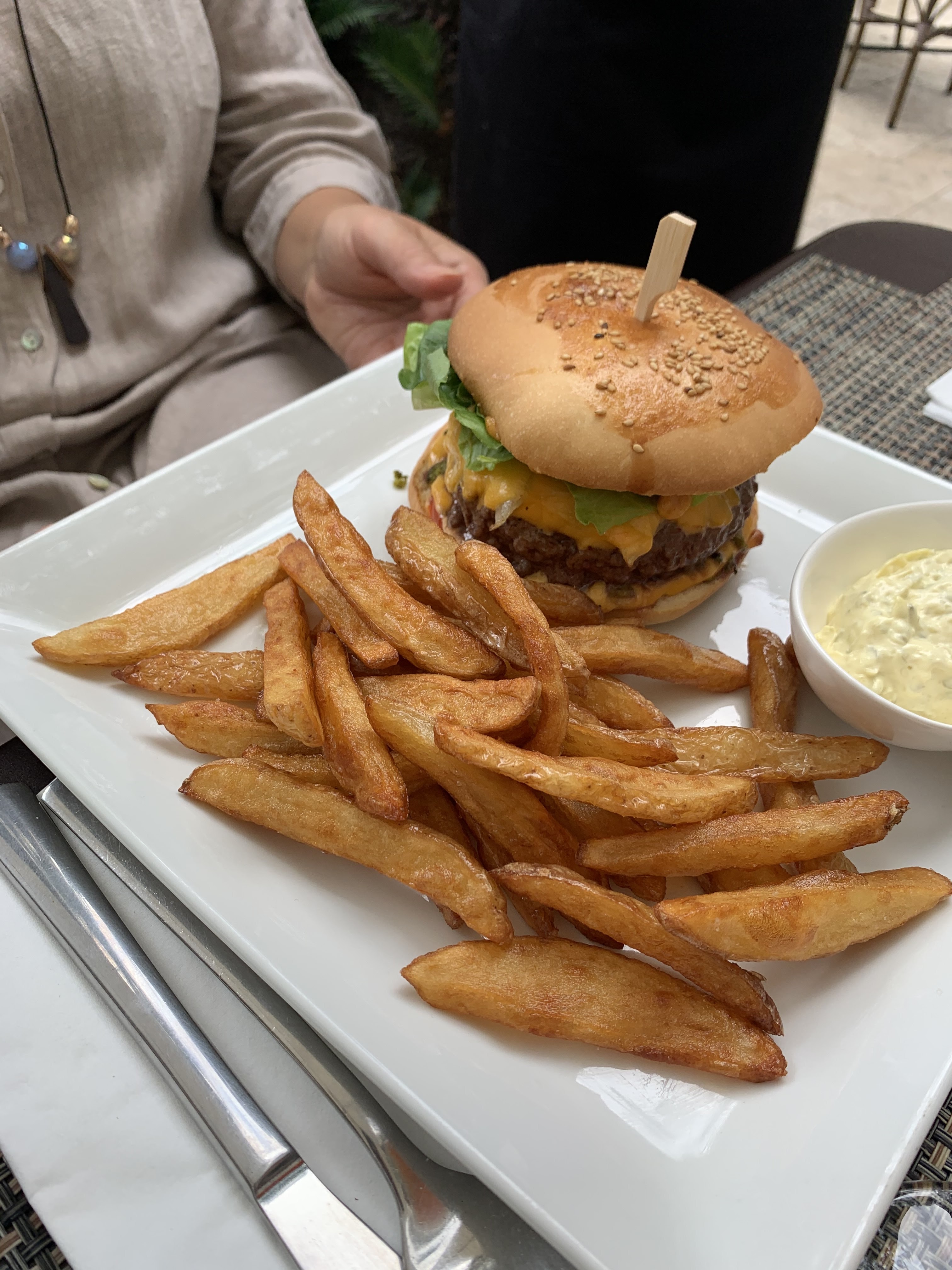 Mon mari et moi avons déjeuné merveilleusement sur la terrasse. La nourriture et le service étaient excellents et le personnel très gentil !