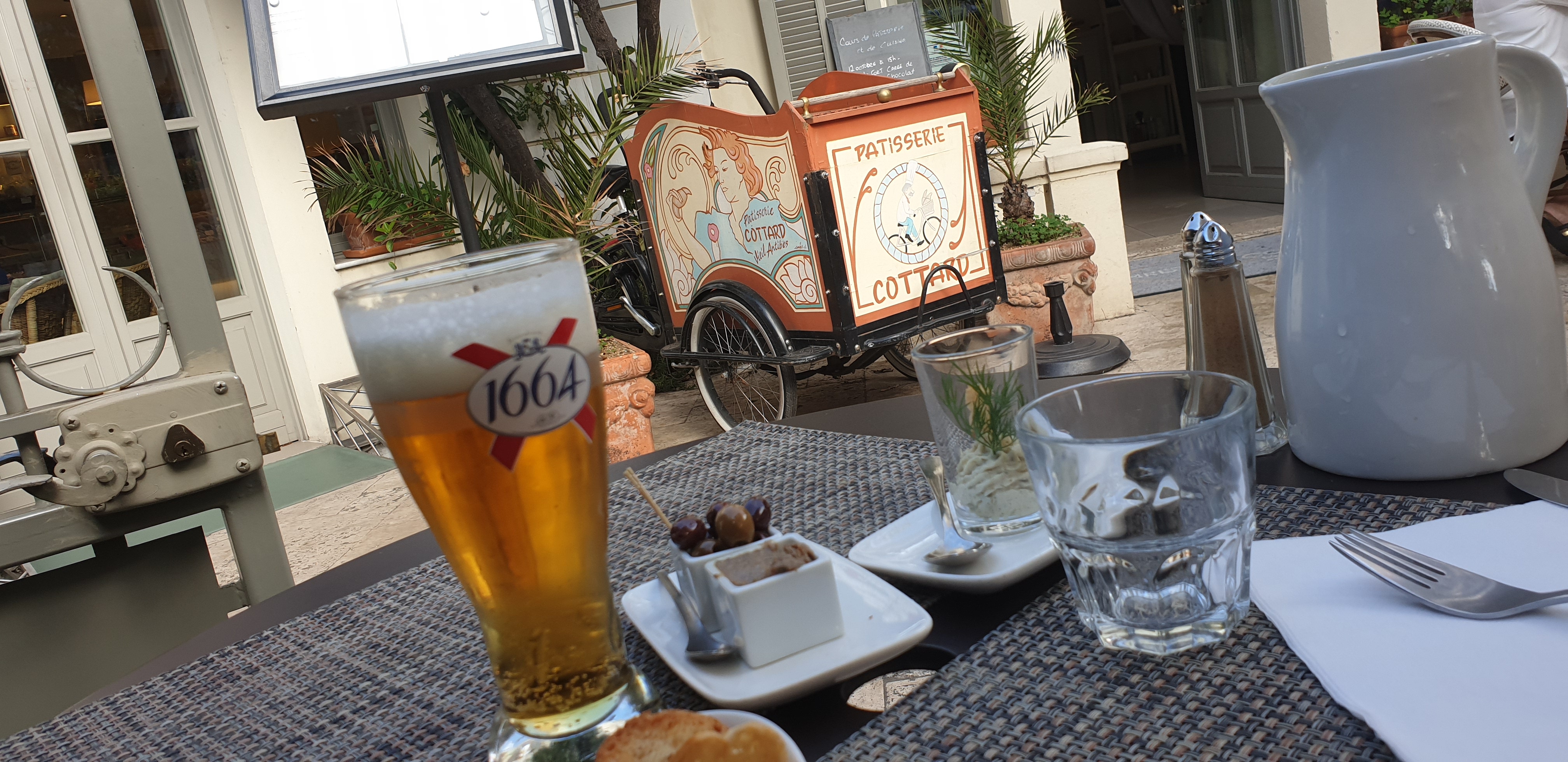 Testé hier midi, sur une jolie terrasse ombragée au cœur d’Antibes. Endroit très joli, j’ai testé entrée (burrata artichauts truffés) très fin et très bon, plat (souris d’agneau purée de patate douce) qui fondait dans la bouche, dessert (Paris Brest) une merveille ! Pour les desserts le choix se fait dans la vitrine de la pâtisserie 😋 Le service était au top et les plats vraiment très bons. J’ai vu qu’il y avait également une seconde terrasse à l’étage que l’on peut privatiser. Un nouveau resto à découvrir pour le plaisir des papilles.