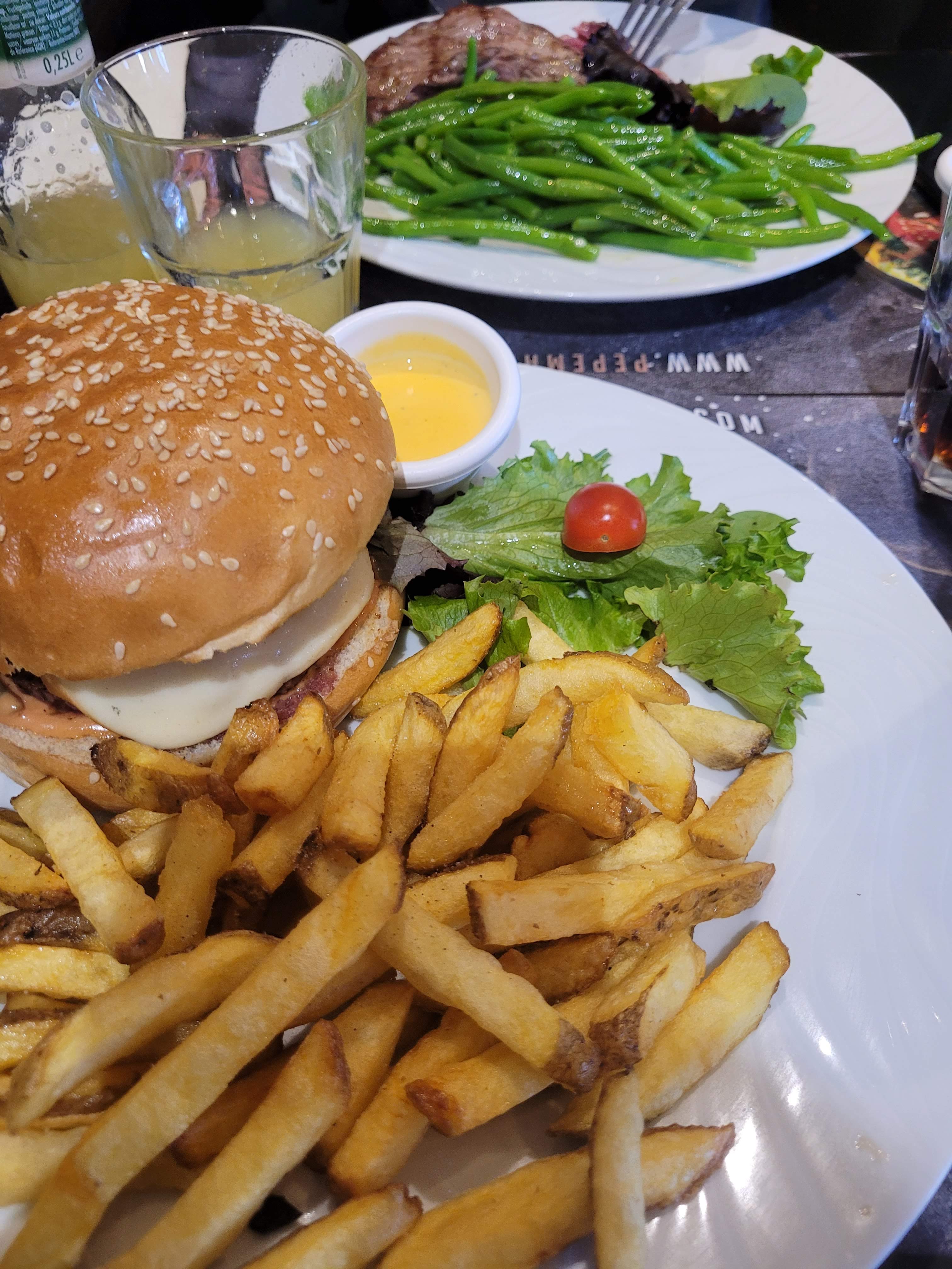 Repas très bon sauf frites un peu dur ou trop cuite dommage