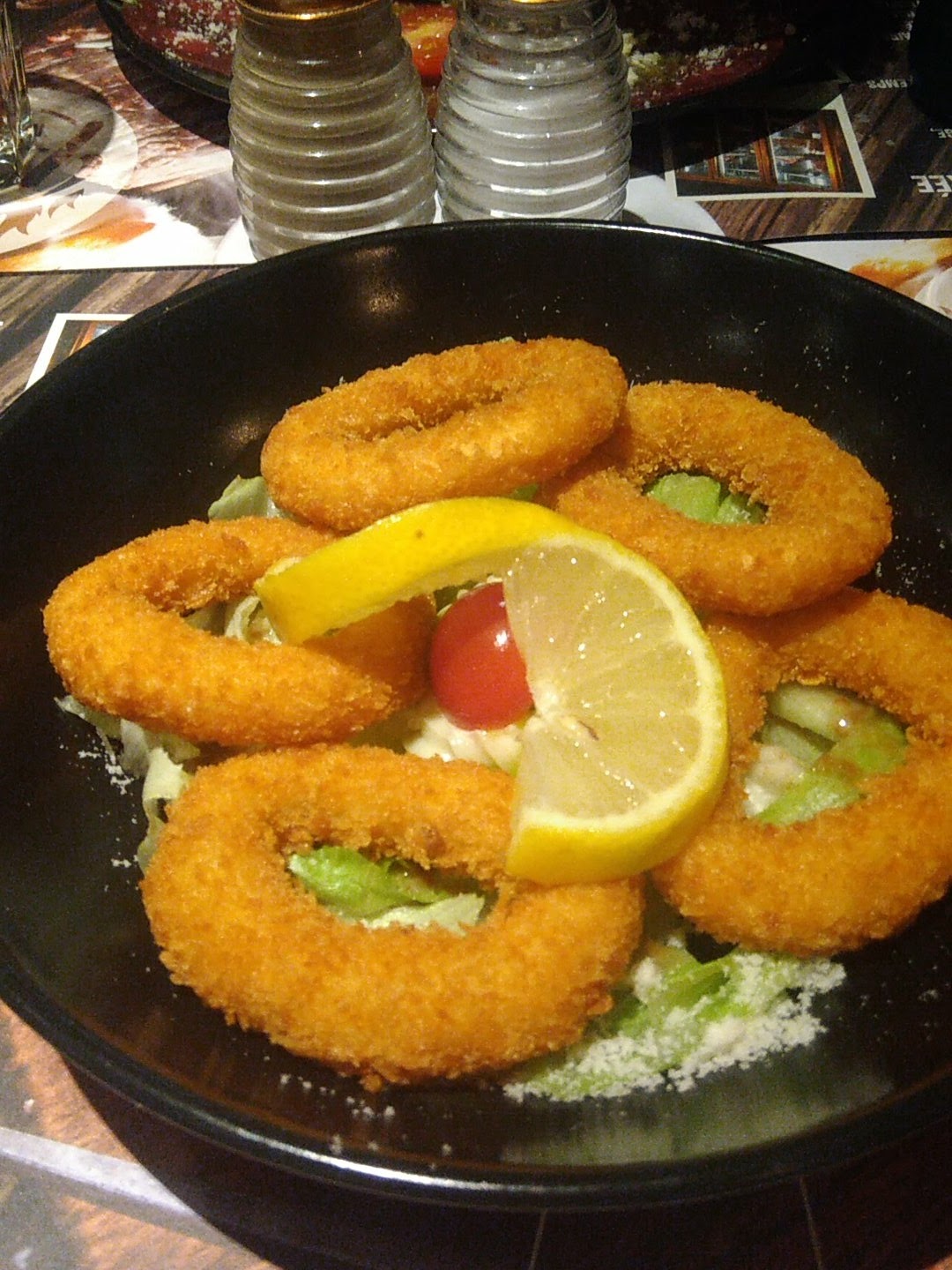 1-Trop de serveurs tue le service. Attendre plus d'une minute pour qu'une personne vienne vous proposer une table 2-Dire aux clients que les tables du fond ne sont pas bien : odeur, alors que le client veut aller dans le fond 3-Les plats proposés : -Calamars : ne pas le prendre, c'est 4 pauvres calamars qui se battent en duel sur un lit de salade peu original. La sauce est trop présence -Le burger : trop gros, trop huileux : pas bon du tout. quand on demande à point on l'a presque bleue Passez votre chemin et aller voir d'autres restaurants dans le centre commercial