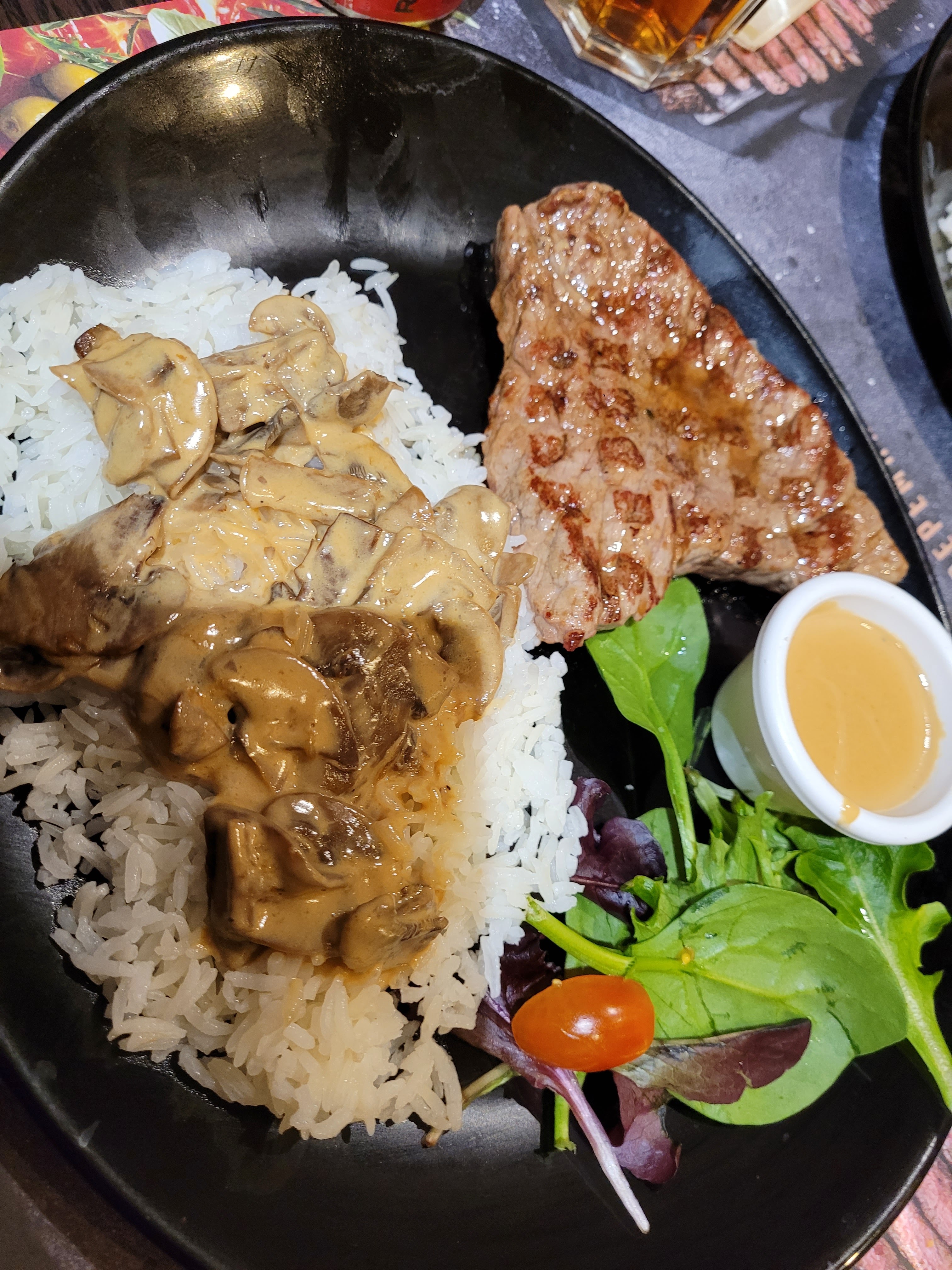 Super resto, l'équipe est au petit soin, de l'entrée au dessert tout était super bon, la viande est super bien cuite et de qualité. J'ai souvent un problème au niveau de la cuisson de ma viande car tout les resto nous demande quelle cuisson pour la viande et peu importe que se soit bleu, saignante, à point, bien cuit, c'est jamais comme je la veux. Et pour une fois, ma viande était parfaitement cuite à mon goût. Je vous recommande ce resto, entre amis ou en famille ou en amoureux.