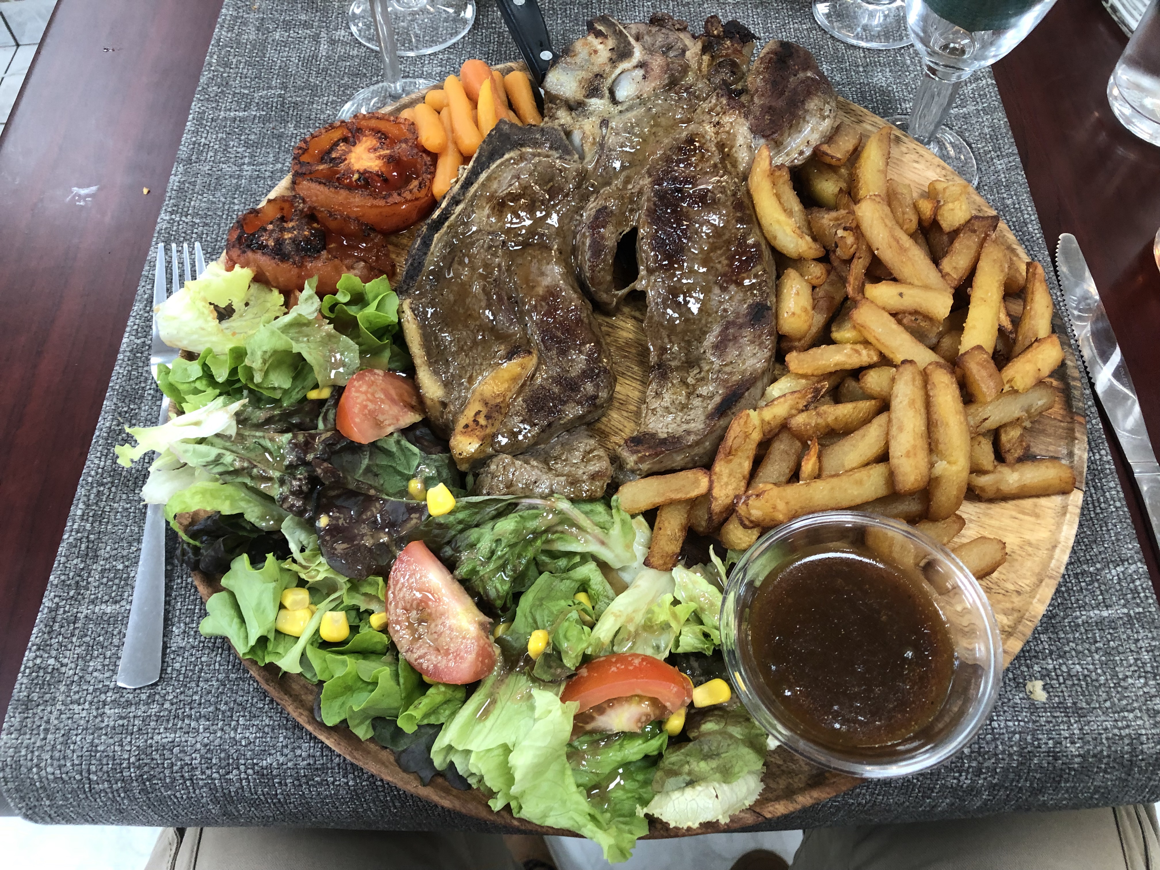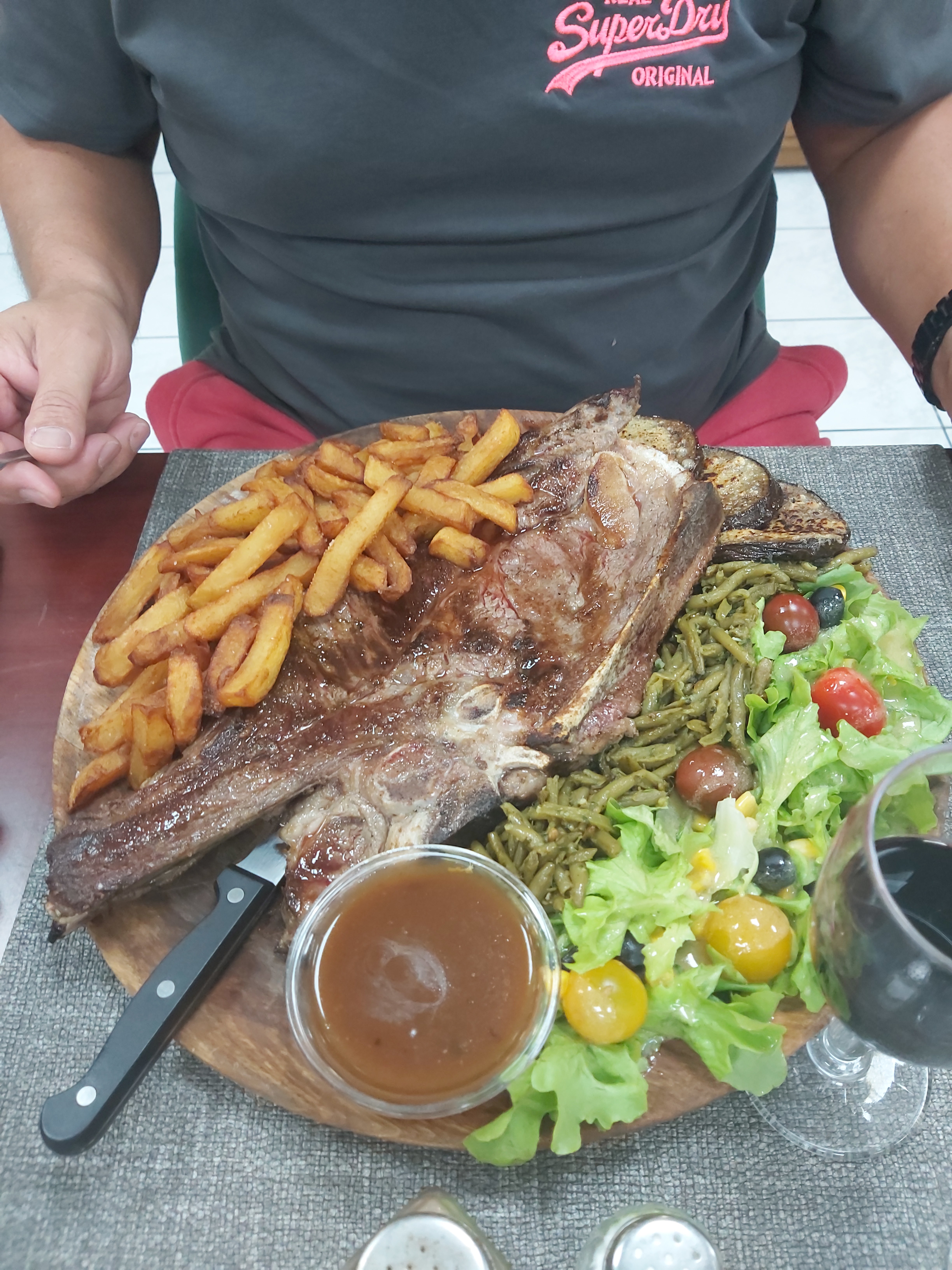 Personnel très sympathique et le repas était très copieux et très bon ! Côte de bœuf XXL très tendre avec de bonnes frites maison, un couscous copieux et excellent et un confit de canard bien cuit avec de bonnes pommes de terre sarladaise. Le tout pour un prix très raisonnable ! Je recommande vivement !!