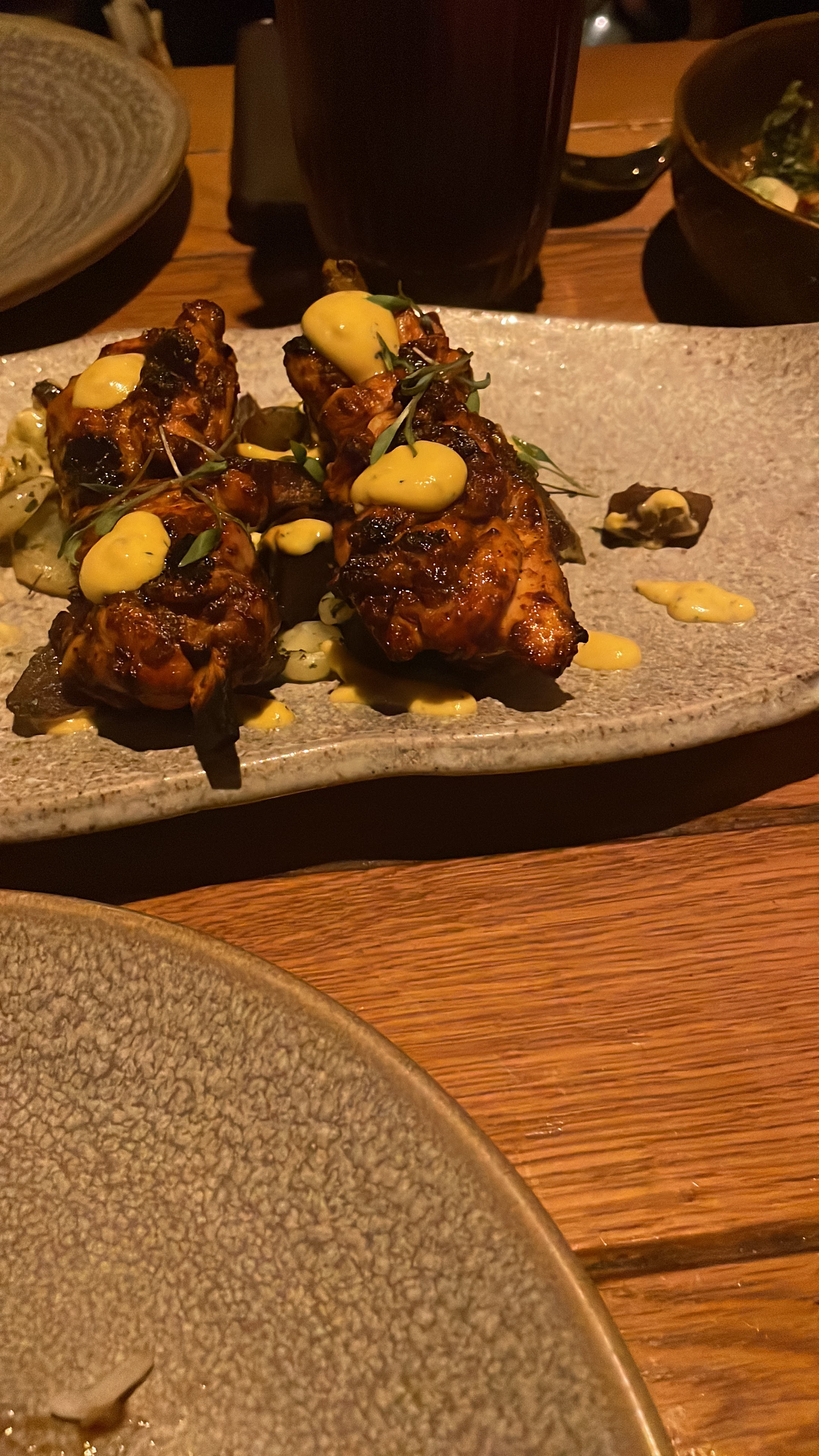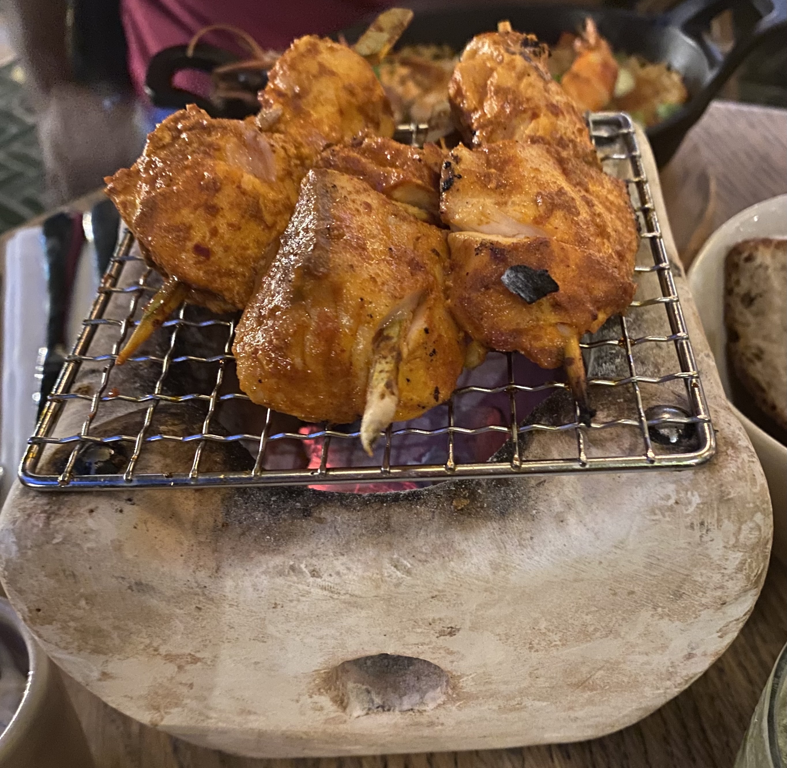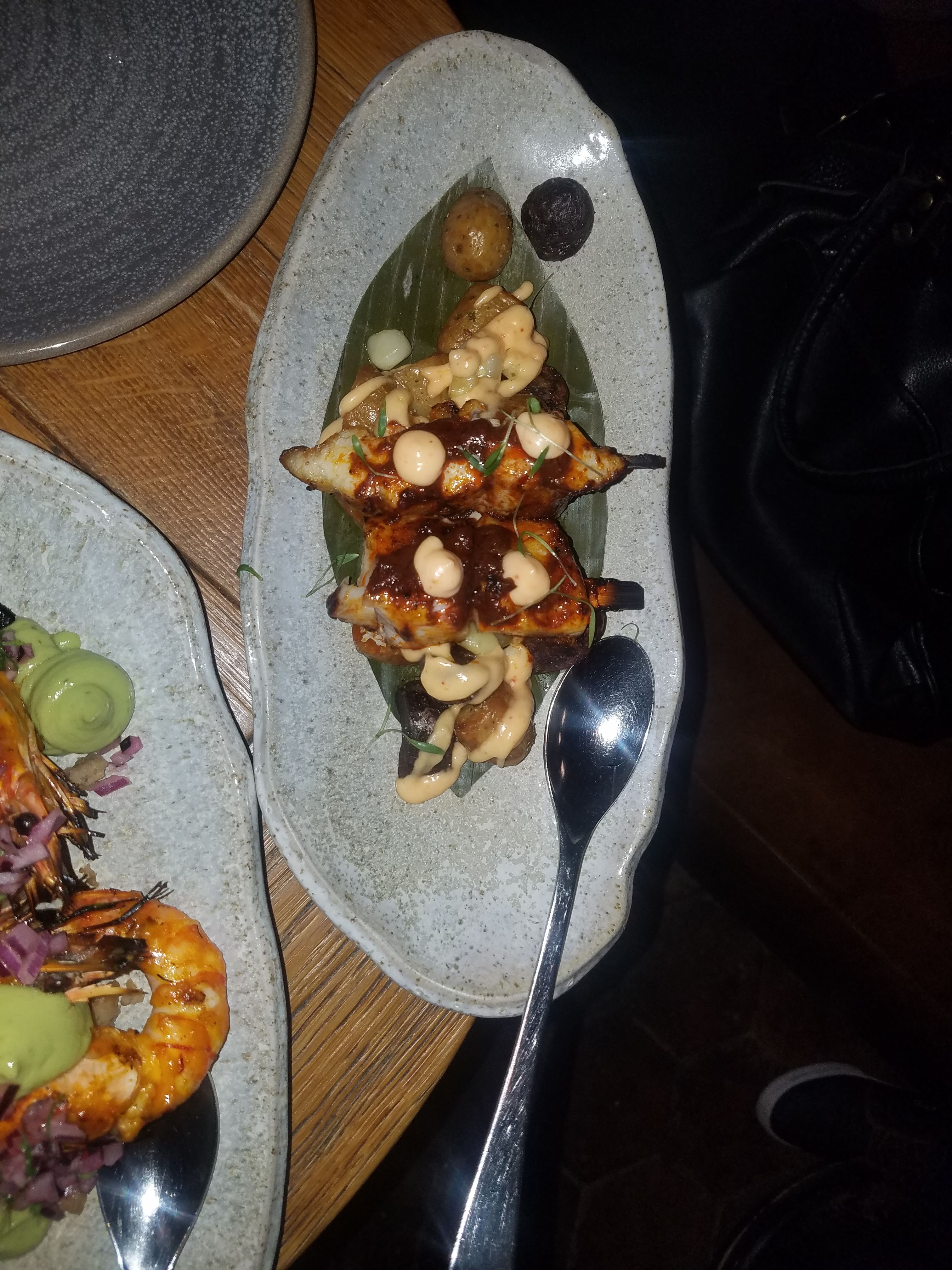 Restaurant vraiment atypique servant des spéciales sud américaine ! Poulet braisé servi sur un mini barbecue en pierre, très original ! Les gambas étaient marinées de façon merveilleuses 🤤 Le cadre est à la fois très classe et convivial !