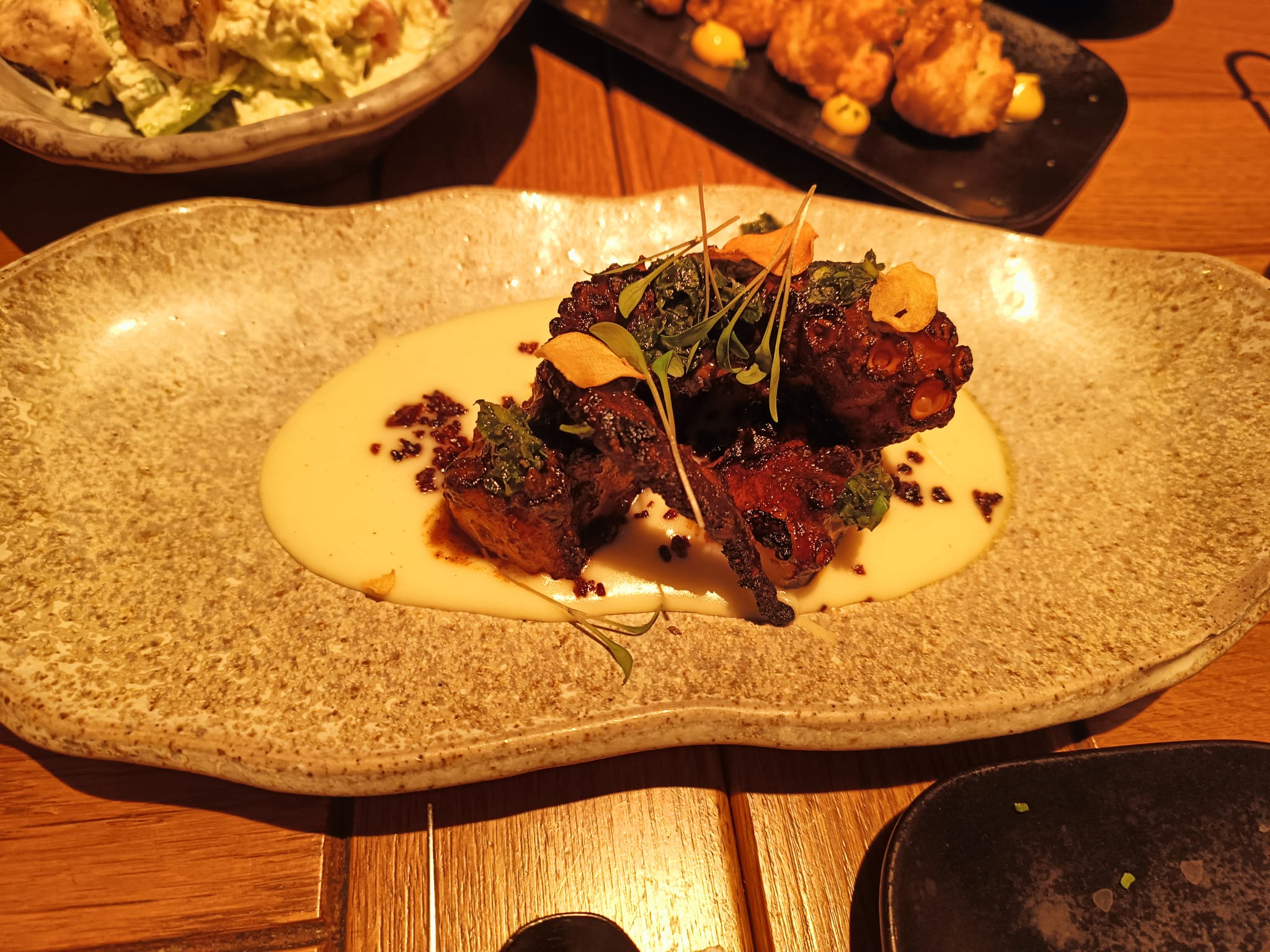 J’avais réservé une table pour moi et mes amis . Le serveur nous a bien acceuilli et conseillé tout le long de la soirée . Je ne pensais pas que les plats et cocktails seraient aussi délicieux que ça. J’étais très agréablement surprise . Très bonne idée également de partager les plats avec tout le monde . Plats de tailles modérées et délicieux
