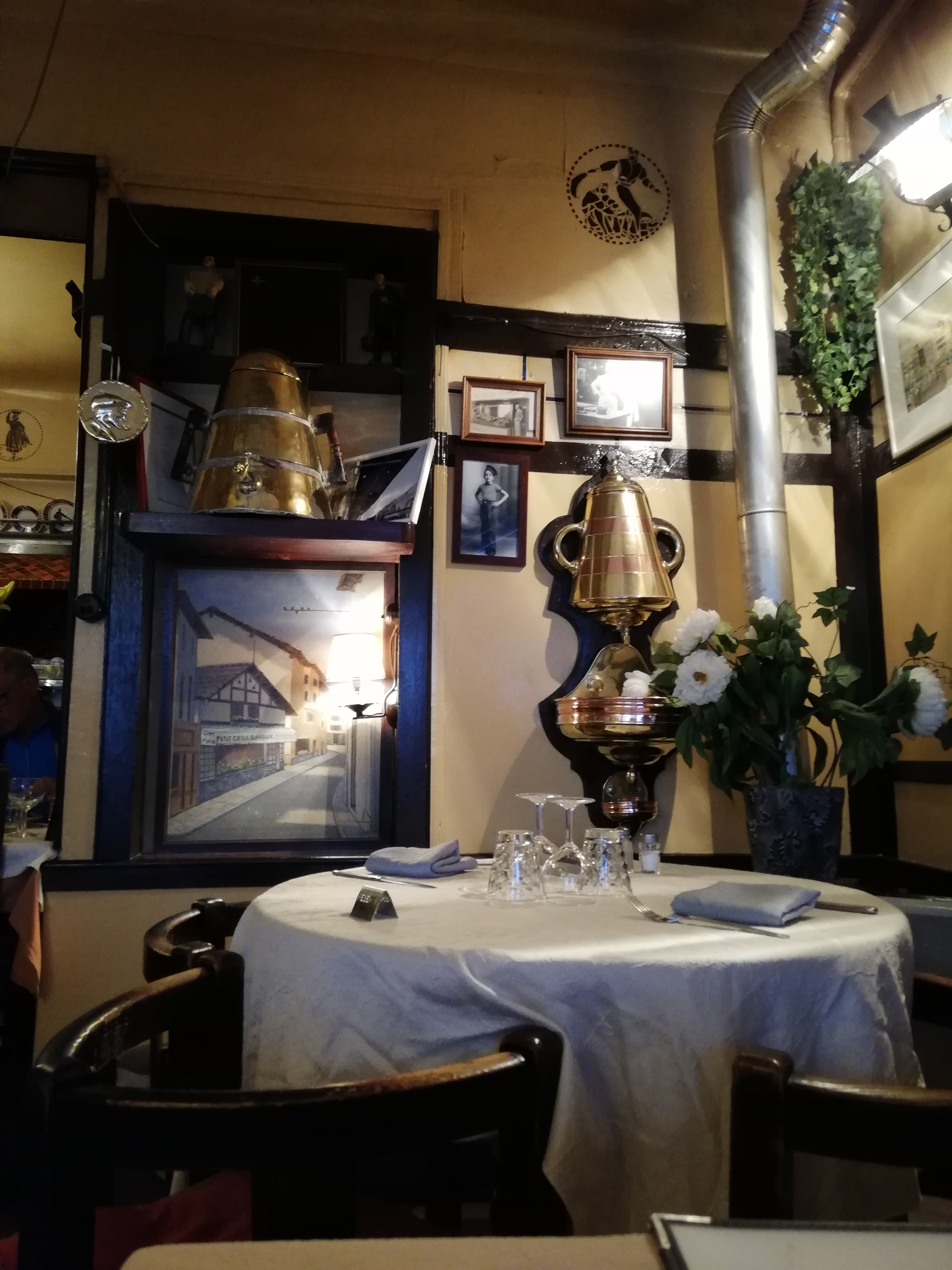 Lieu typique, qui donne une ambiance sympathique. Néanmoins déçus par la proposition de plats et leur présentation. Nous attendions de la cuisine basque mais avec un peu plus de recherche et de présentation pour justifier le prix de ces plats bons mais pas exceptionnels. Très belle carte de vins.