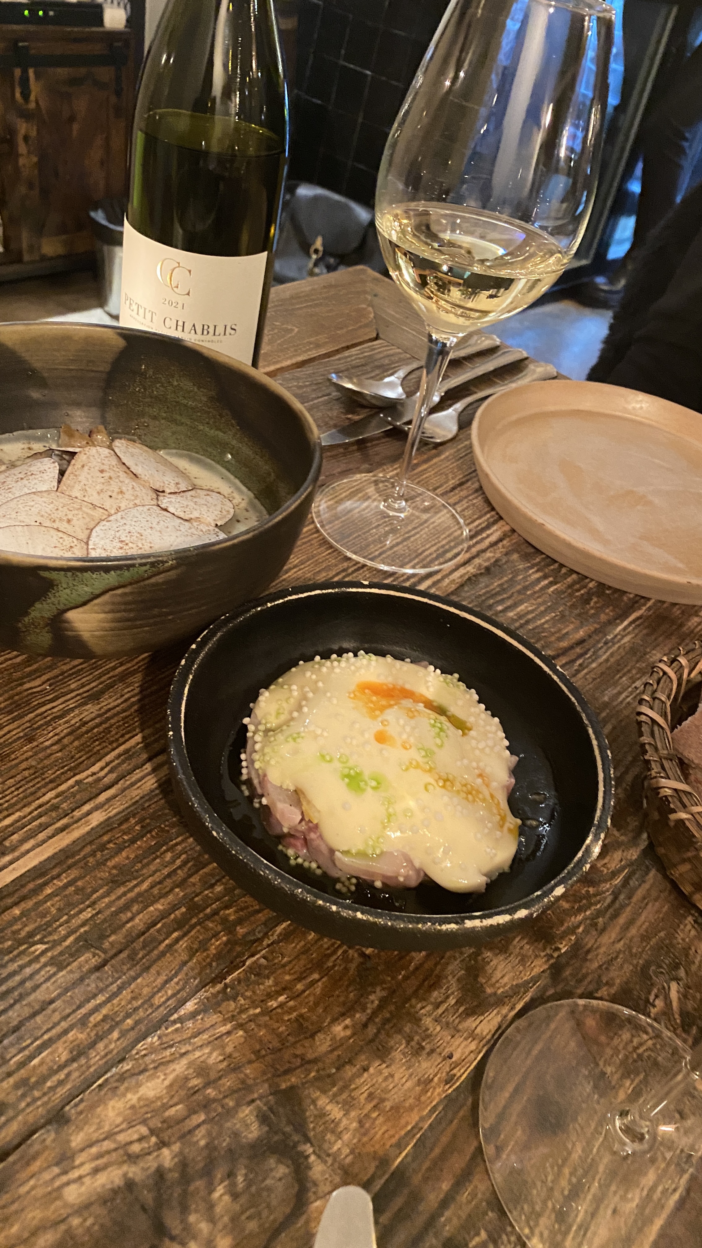 Quelle merveille !!! Merci infiniment à Félix pour son accueil et sa gentillesse C était parfait !! et à Jean Baptiste pour sa cuisine incroyable, très agréablement surpris par l association du cabillaud ortie pois chiche, une explosion de saveur !! Je m en souviendrais longtemps, la bonite et la tarte au navet était incroyable. Une des plus jolies découvertes gustatives. A très vite