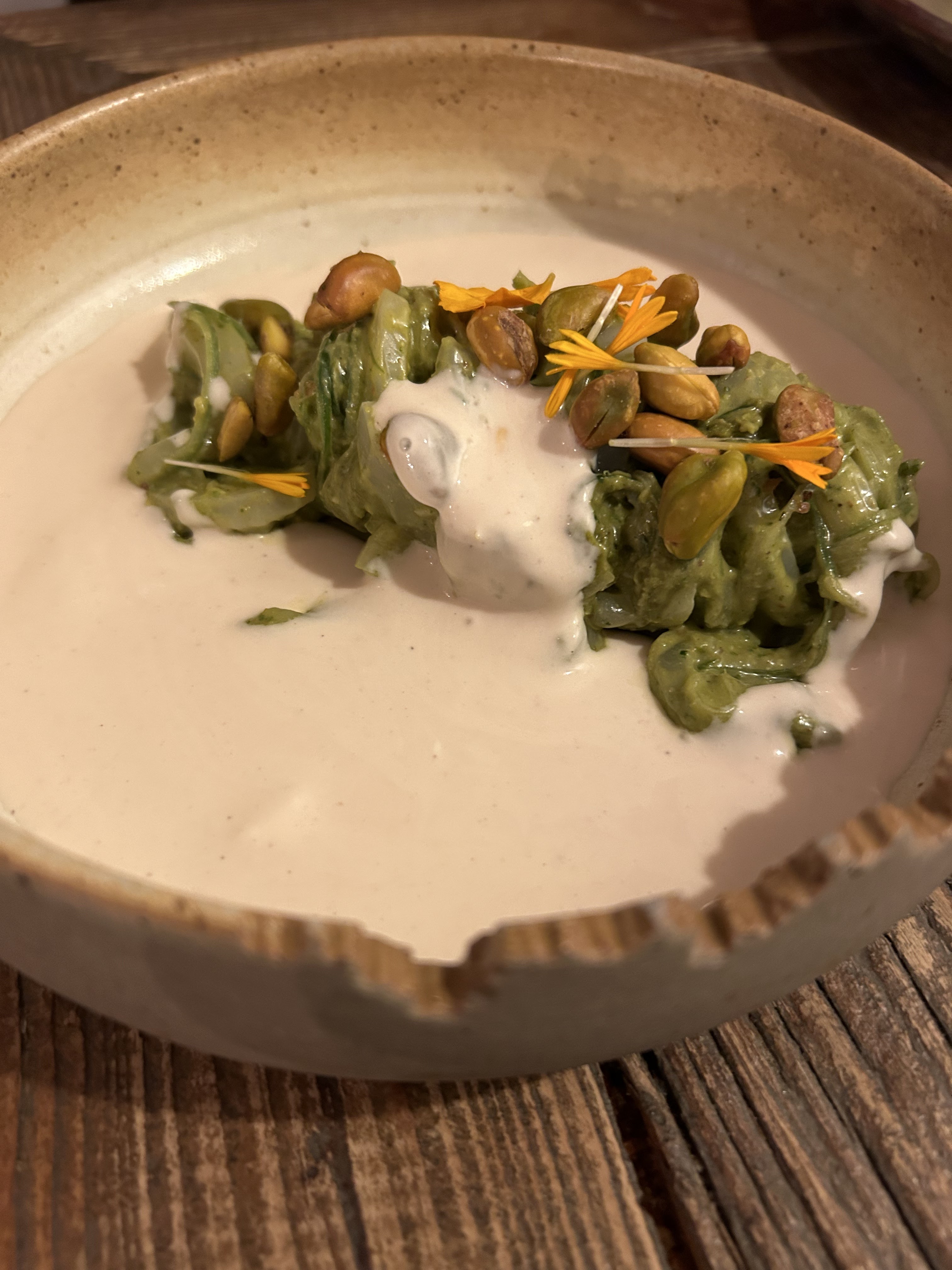 3ème fois dans ce restaurant, et la 3ème était ma préférée. Le plat en photo a été une belle découverte, j'ai adoré le travail fait sur l'halloumi, le faire fumé était très malin idem sur le légume : patate douce en plusieurs textures dont pickles (plus rare pour la patate douce). C'est un plat que je vais garder en mémoire ! j'ai d'ailleurs acheté de l'halloumi derrière pour le travailler (à ma manière) Au top !