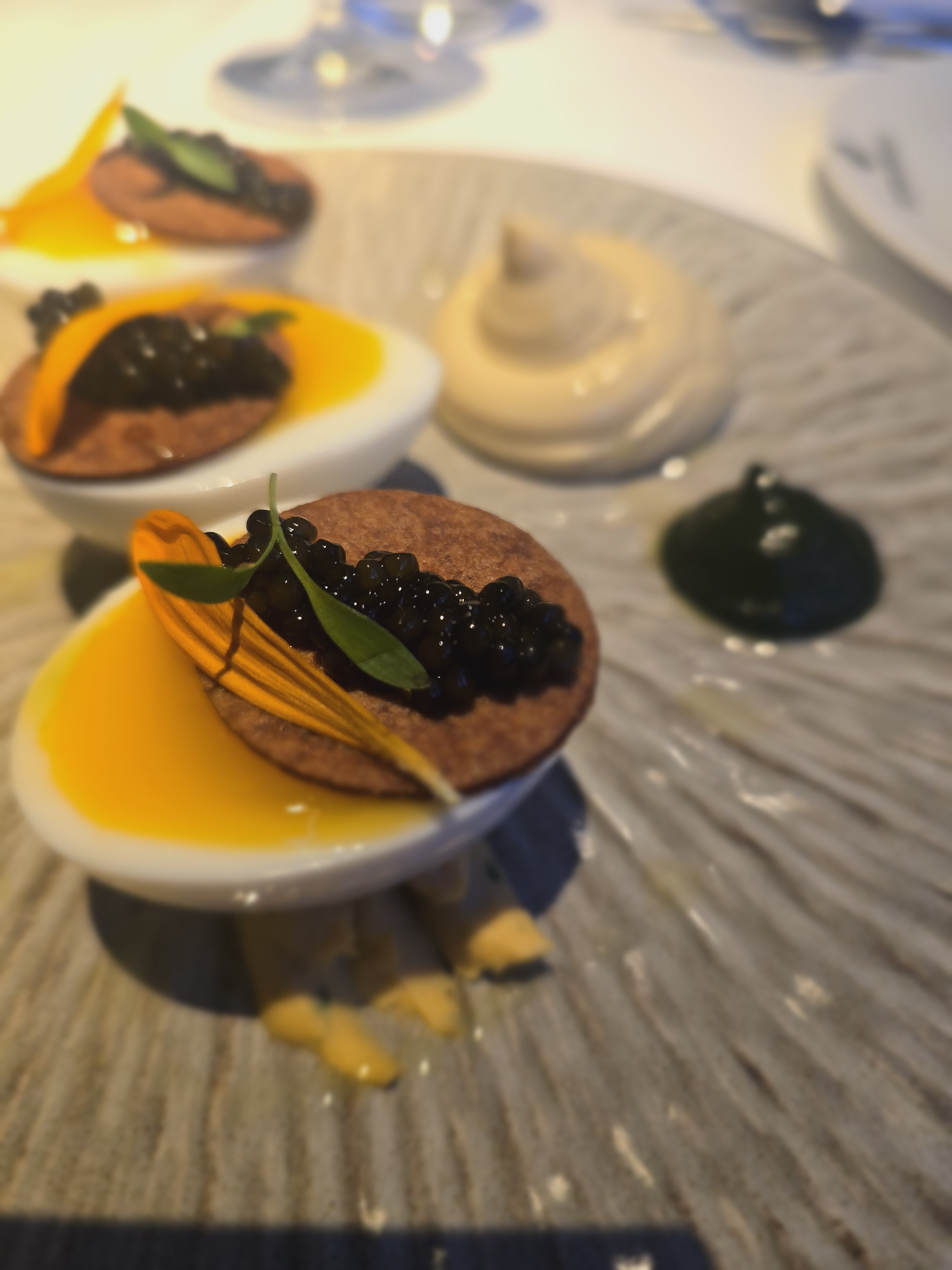 Le parfait équilibre entre modernisme et tradition. Le Merus de Crabe Impérial, servi façon lobster roll est excellent. Les Œufs de saumon sauvage se marient à merveille avec de la buratta, des fleurs et des feuilles. Et surtout, le célébrissime Œuf Caviar (œuf de poule, fleurette au céleri et caviar Alverta) que je mangerais bien tous les dimanches matins pour le brunch ! Et surtout, ne pas négliger les différents desserts !