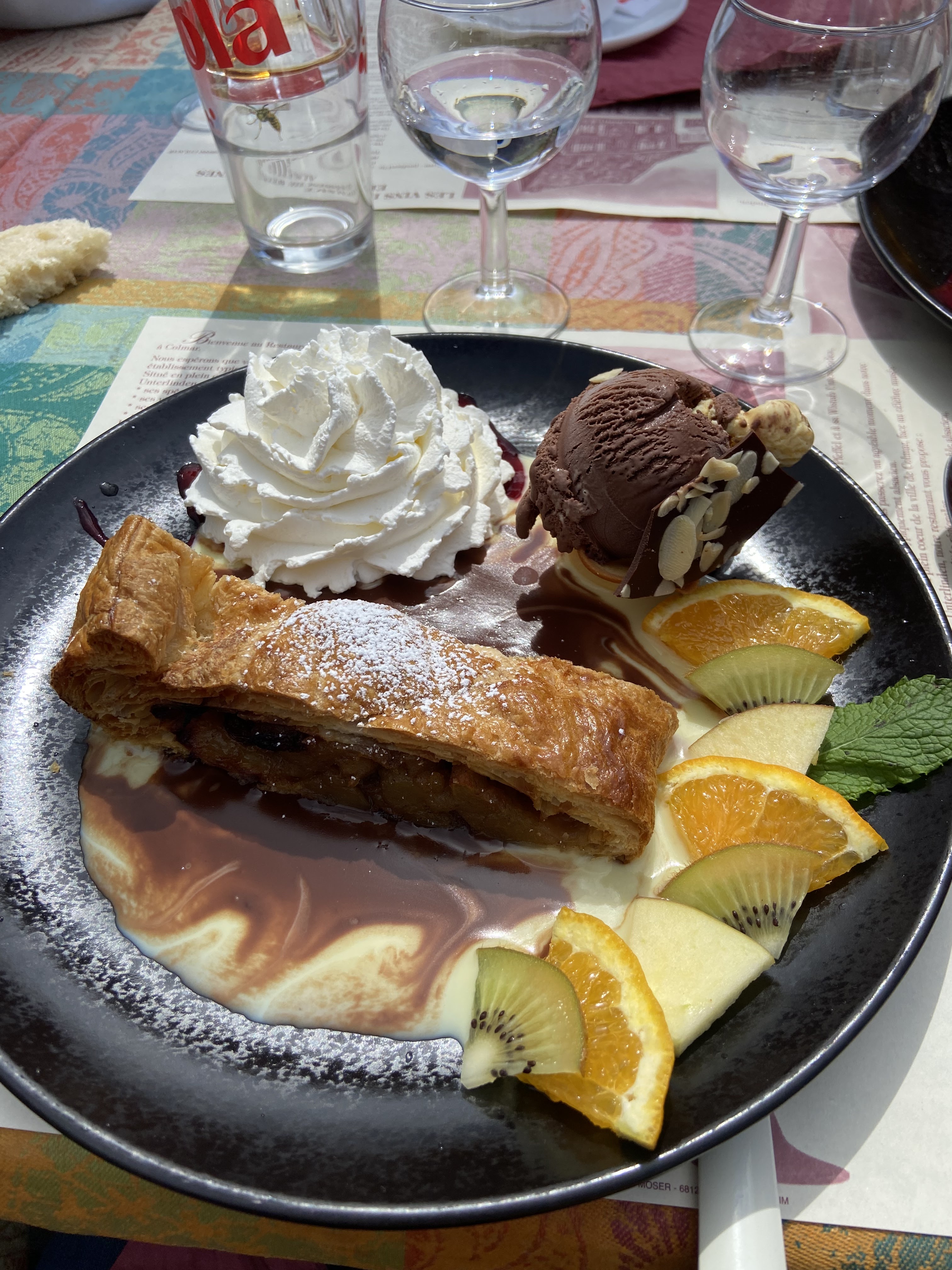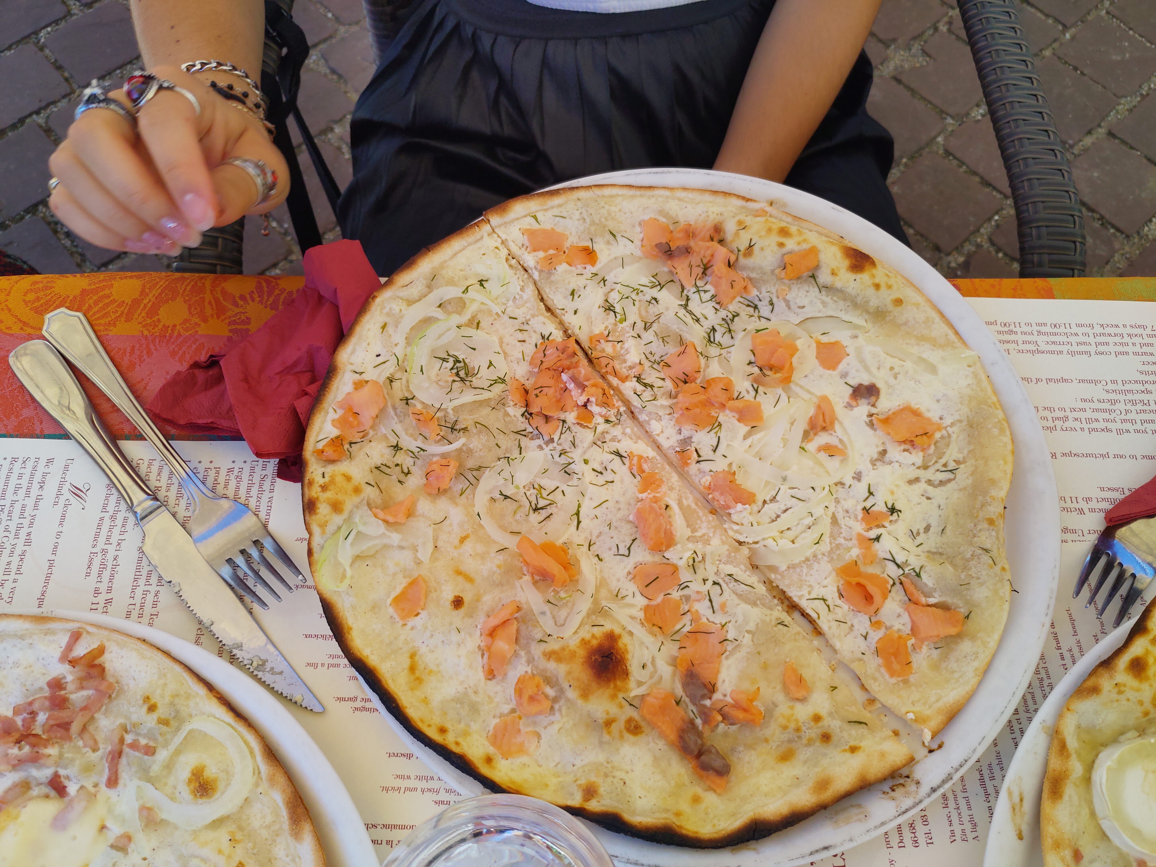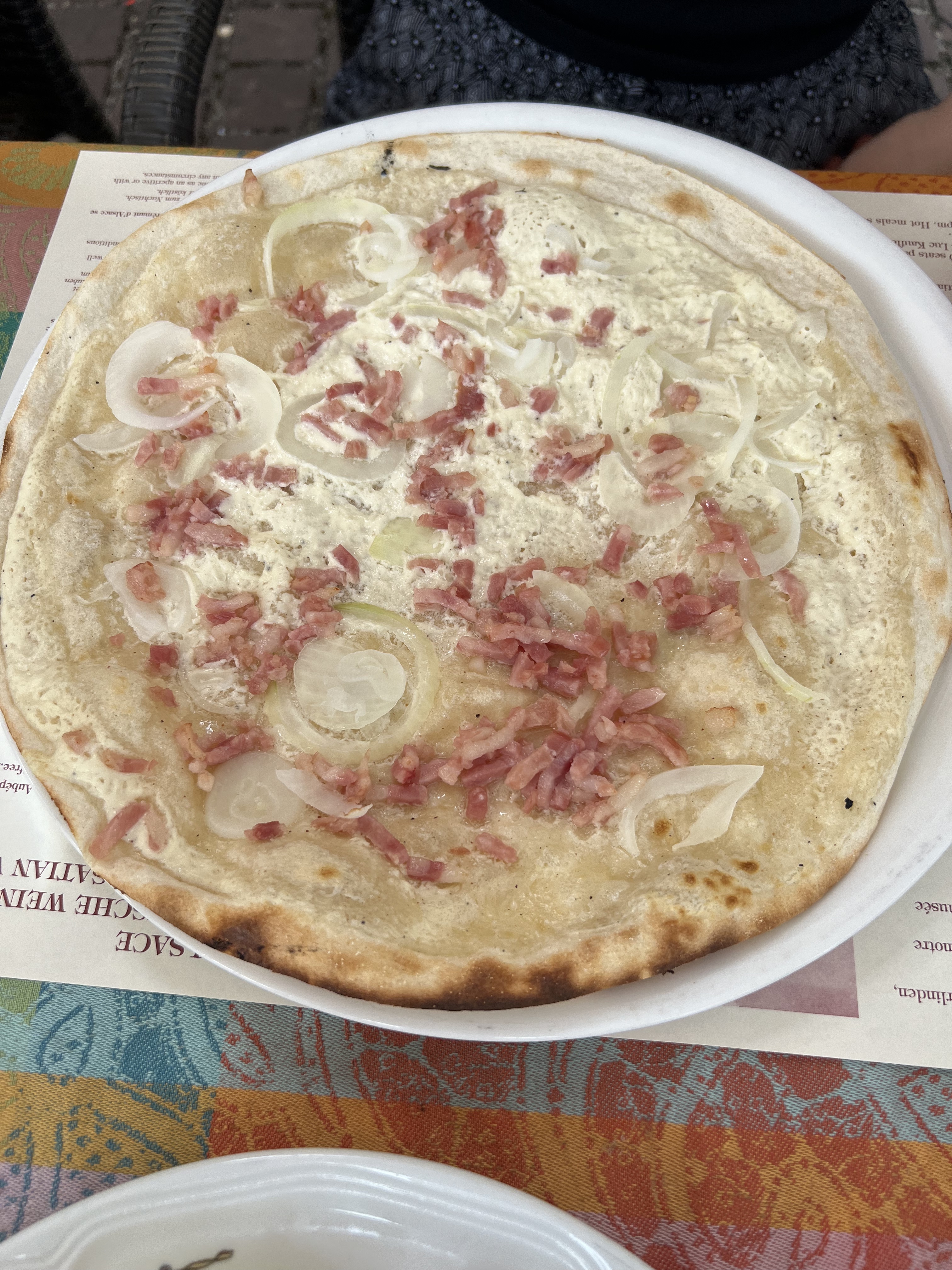 Idéal pour déguster une bonne flammekuche en terrasse :) prix corrects, serveurs sympathiques, et j'ai été servie rapidement. Que demander de plus !