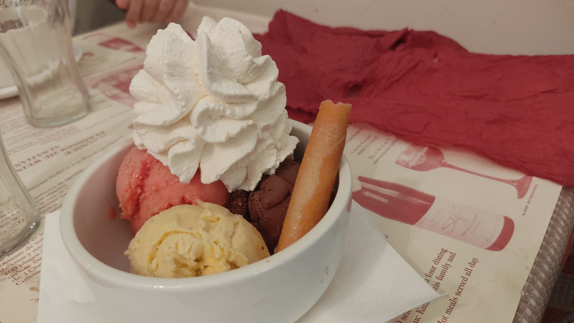 Nous n'y avons pris que le dessert (exxxxxcellente glace au kirsch🤤) et avons rarement eu à faire à un personnel aussi adorable ! Très avenants, et réactifs pour apporter de l'aide à une dame en difficulté. Tous les serveurs ont apporté son dessert à une dame dont c'était l'anniversaire. J'aime la chaleur humaine qui règne dans ce lieu, qui a du changer positivement ces dernières années !